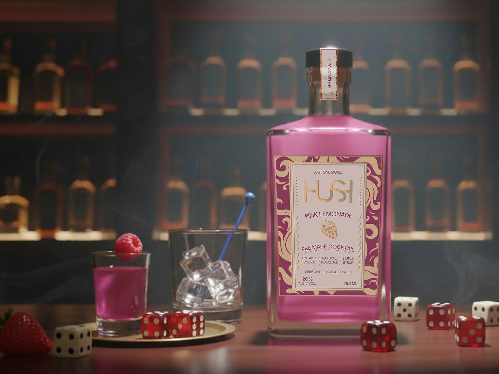 To visualize the brand’s world, the product is set in mysterious, elegant bar-style environments. These scenes, featuring sophisticated elements like dice and fruit, capture the brand’s unique balance of premium indulgence and intimate,”speakeasy” appeal.
