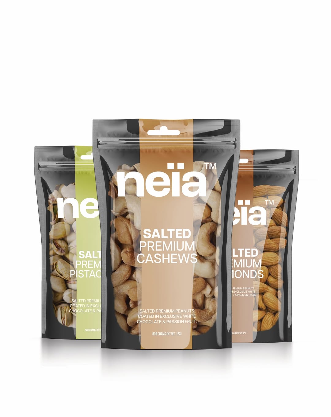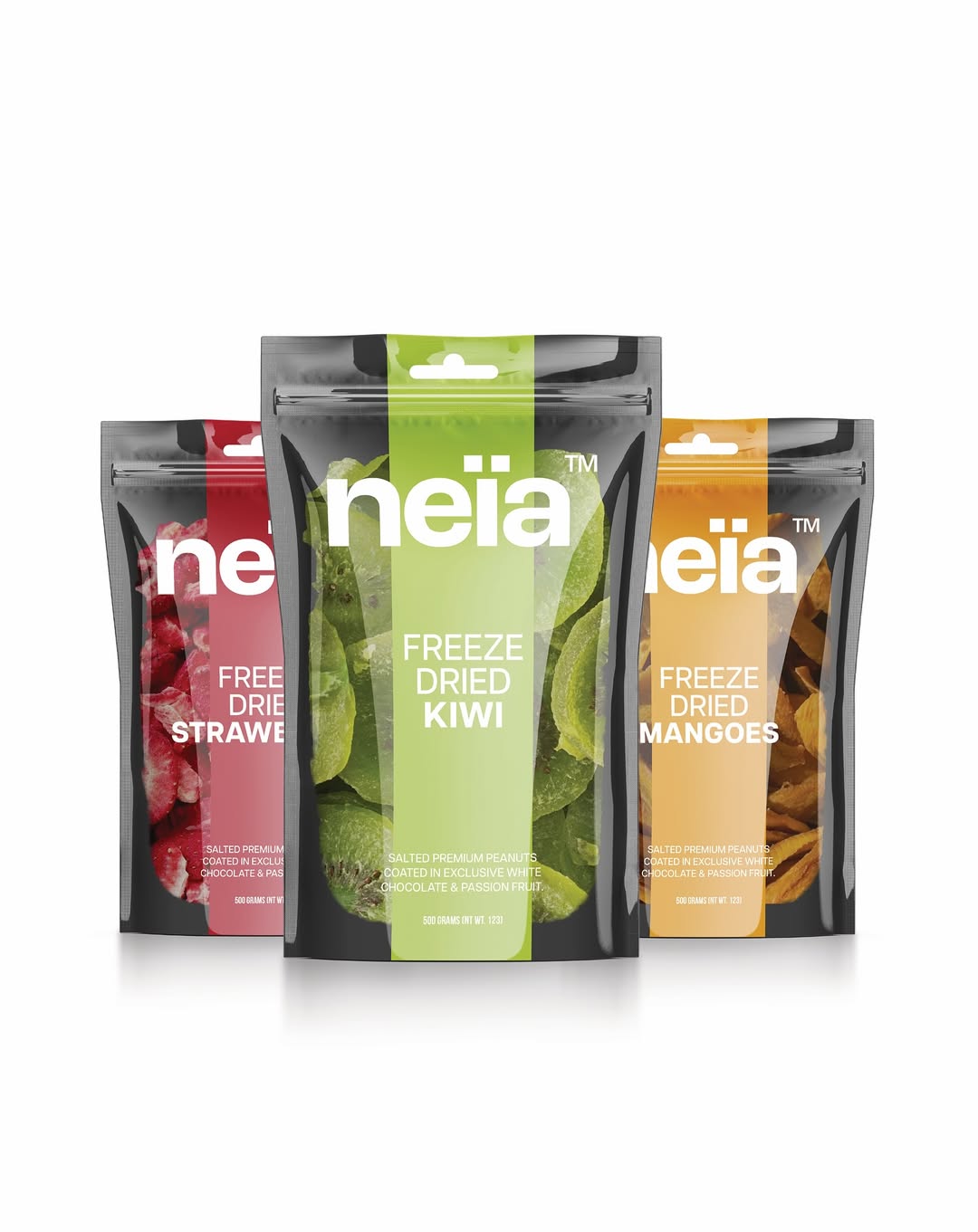 The design language draws from contrast and simplicity: a deep, matte black base paired with vibrant color accents inspired by the ingredients themselves. This balance between minimalism and energy creates a visual system that is both striking and approachable, embodying Neia’s blend of wellness and indulgence.