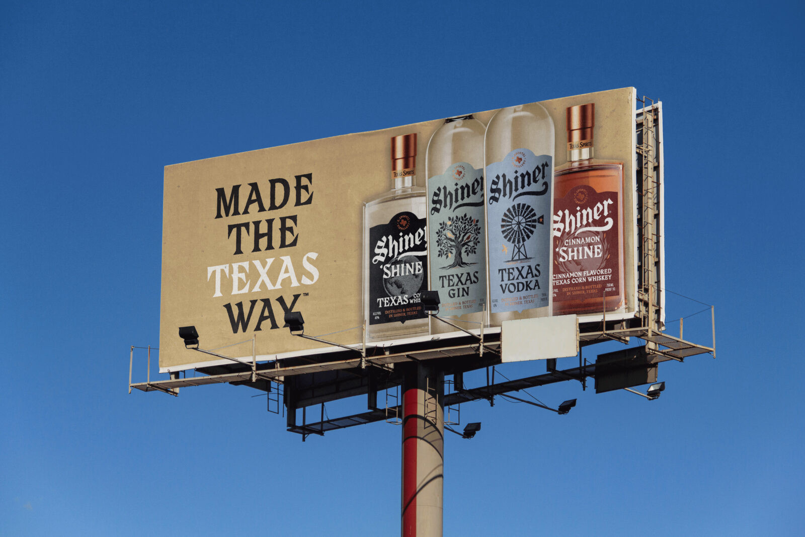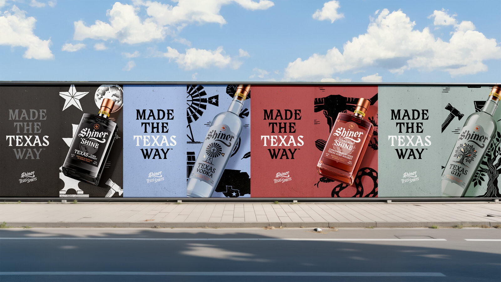 So our task was twofold: rebrand Shiner Spirits with a clear purpose and a distinctive design language. Not as a spin-off, but a fully formed expression with the presence to stand tall alongside the beer.
