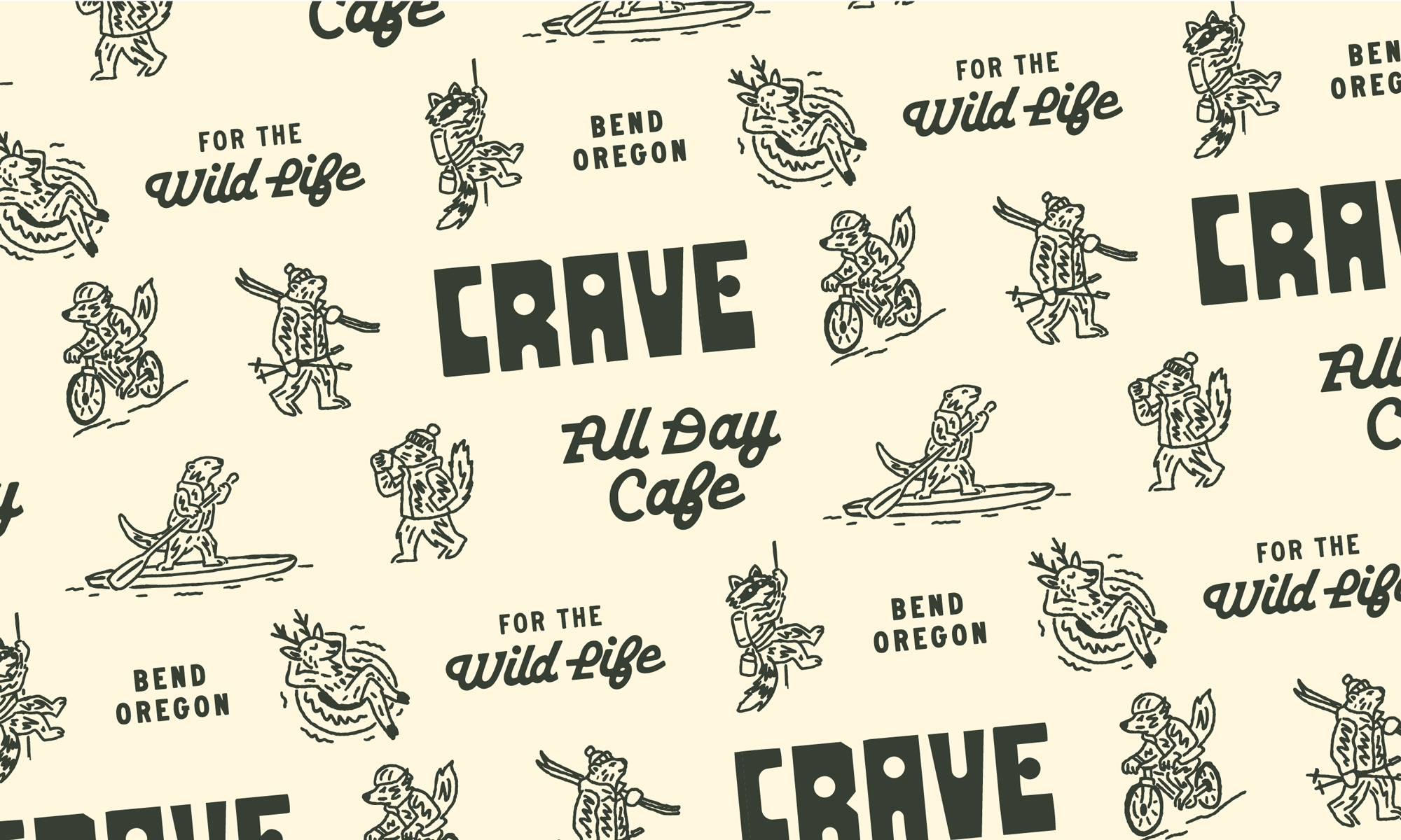 Crave is a brand concept for an all-day café inspired by the adventurous rhythm and outdoor culture of Bend, Oregon. Created as an exploration in how far a hospitality identity could be pushed, the project imagines a fully realized brand world that moves seamlessly from coffee-fueled mornings to post-adventure lunches, casual afternoon hangs, and cocktails after sunset. Rather than designing a logo in isolation, the goal was to build a complete experience—one that feels rooted in place, rich with personality, and flexible enough to thrive across every customer touchpoint.