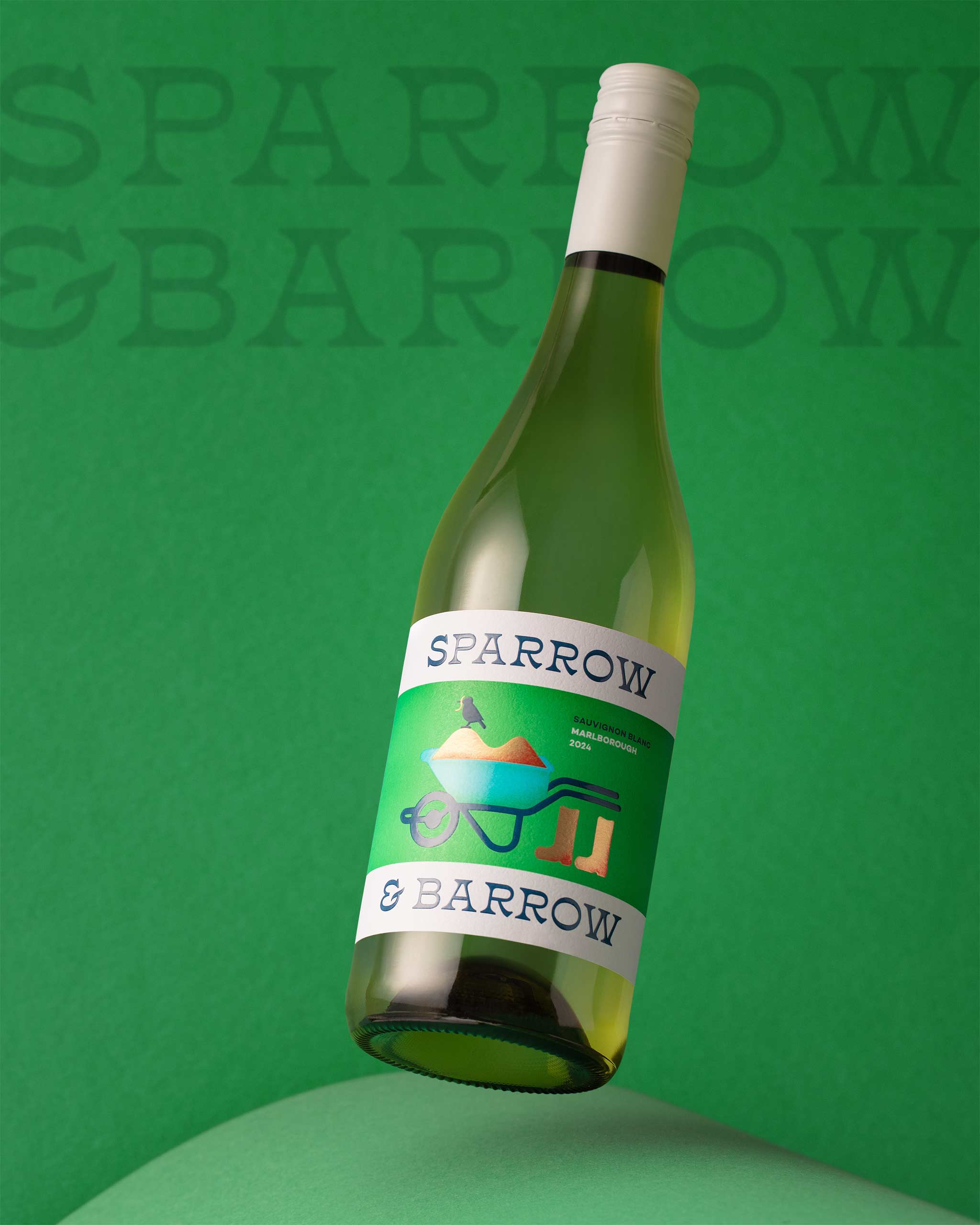 A.G. Oatley Wines approached us to create a distinctive new brand and packaging for a premium wine range from New Zealand’s renowned Marlborough region. The brief called for a brand that felt authentic to place, grounded in nature, and reflective of the quiet intelligence found in agricultural life. With subtle and thoughtful nods to the New Zealand landscape, Sparrow & Barrow was developed to capture the character, rhythm and resourcefulness of life on the land. The brand draws inspiration from the small, often overlooked moments that define farming culture the daily interactions between animals, tools, weather and people that together shape the environment and influence the final product. Native New Zealand birds are known for being cheeky, curious and remarkably smart, constantly learning from their surroundings and adapting to take advantage of the agricultural process. They observe, respond and evolve with instinctive precision. This behaviour became a central metaphor for the brand. Where there’s a barrow, there’s a sparrow — a simple rural truth that speaks to awareness, opportunity and shared space. That same mindset of learning from our environment, respecting the land, and responding intelligently to what it offers is the kind of thinking that has guided every decision behind this Marlborough wine, from vineyard to bottle, making it just that little bit better. It is a story of observation, humility and craft, expressed through considered design and packaging that feels honest, confident and quietly expressive.