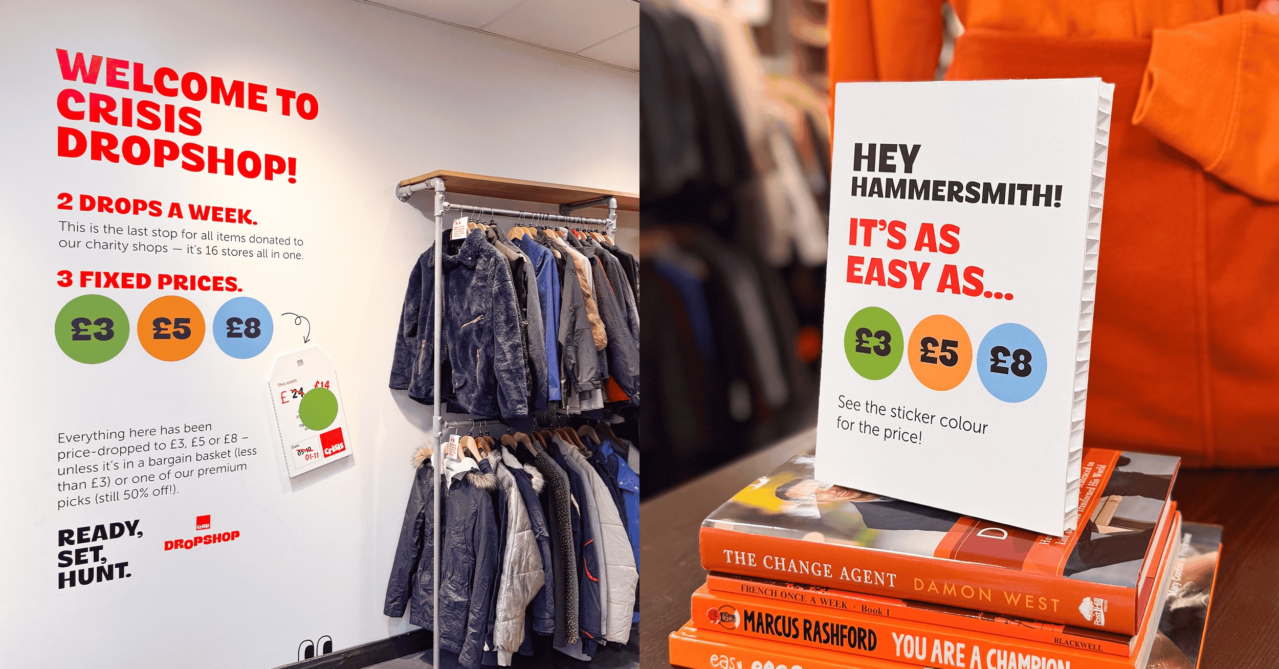 “Crisis Dropshop is about unlocking the full potential of every donation. By giving great pieces another chance to be worn and loved, we’re reducing waste, making sustainable fashion more accessible, and raising vital funds to end homelessness. This new concept brings real energy to both Hammersmith and to our network of shops – it’s bold, playful and welcoming. Thanks to the creativity and commitment from Dalziel & Pow, we’re thrilled with the end result.” Kim Collins, Director of Retail, Crisis.