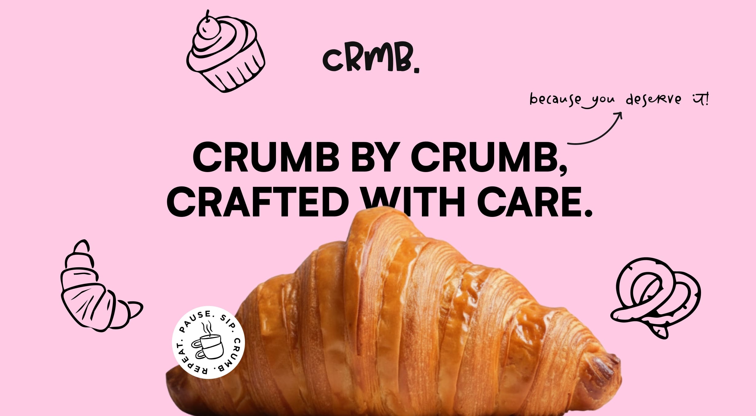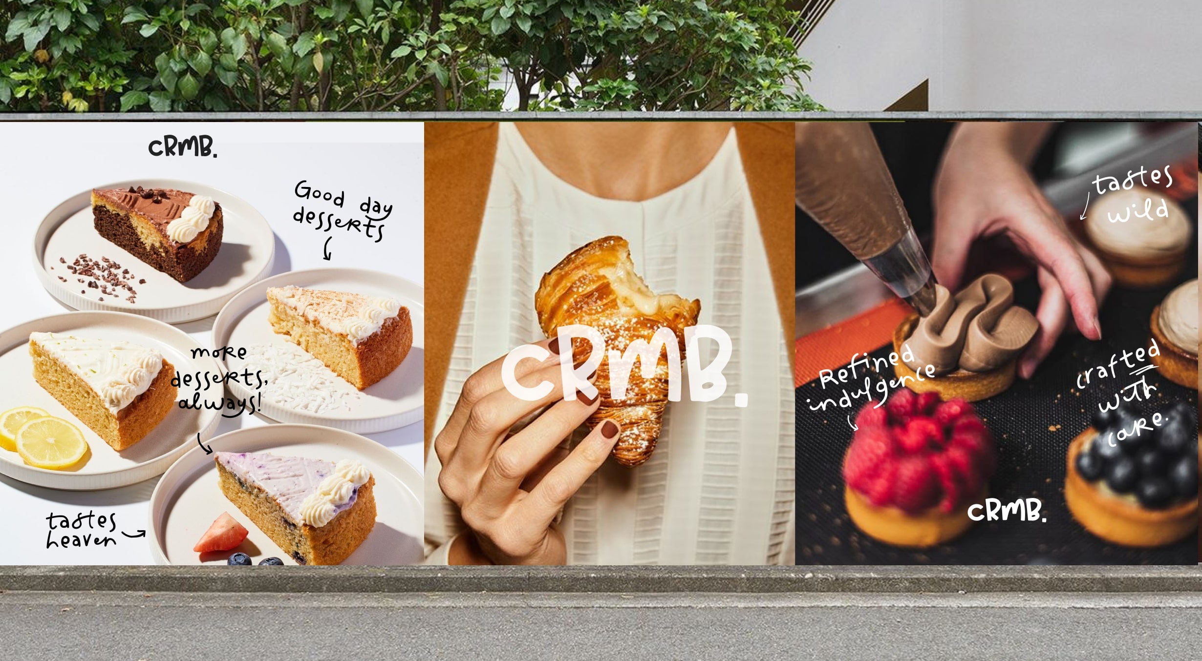 The name CRMB comes from the simple joy of eating something truly delicious like cookies, pastries, croissants, always leaving behind a little “crumb.” By removing the U, the word becomes more modern, fun, and visually striking, adding personality while staying rooted in the brand’s essence. The name reflects the heart of the patisserie experience: small moments of pleasure, tiny details of craft, and the playful imperfections that make food feel real and joyful.