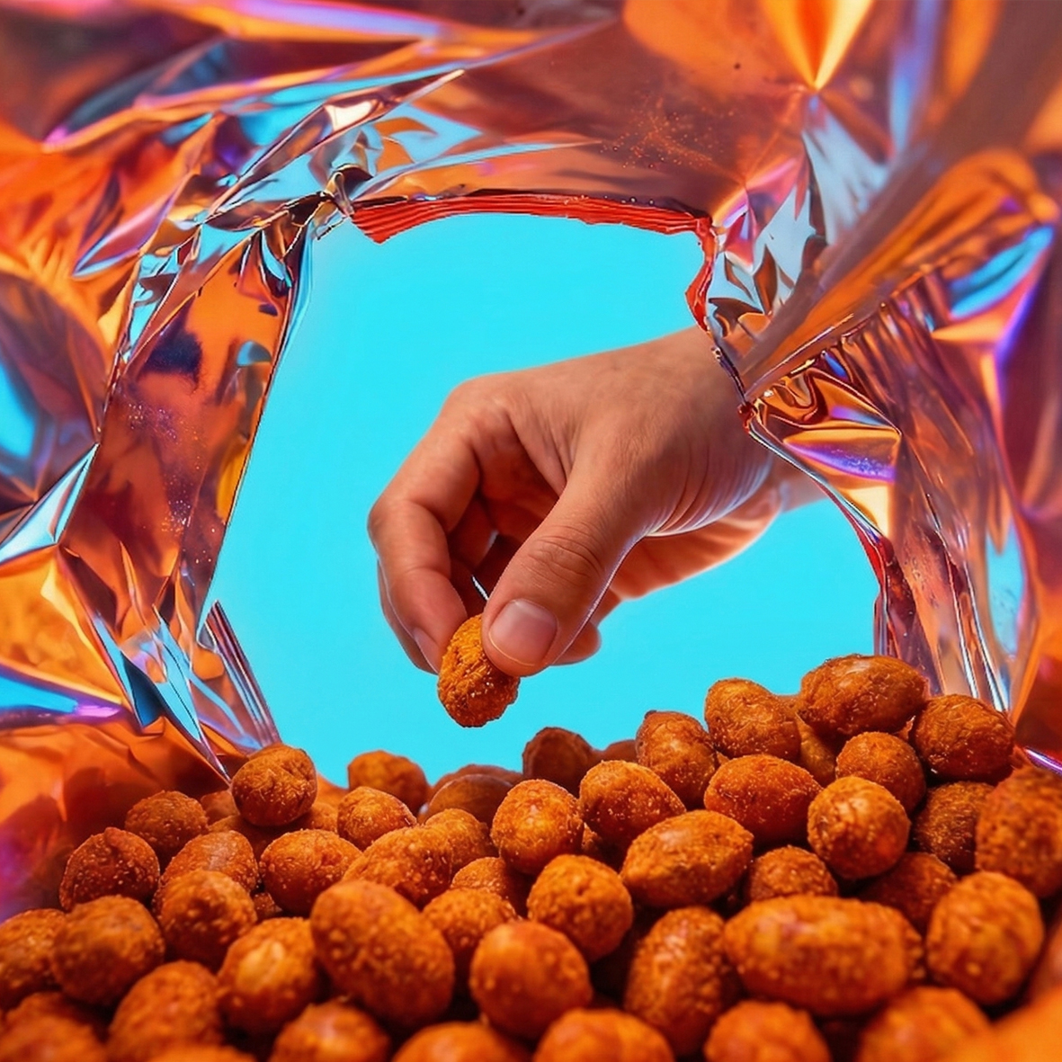 In a category saturated with heavy visuals, aggressive color palettes, and over-designed packaging systems, the snack aisle often becomes visually noisy and indistinct. Differentiation is reduced, and products struggle to stand out beyond short-range shelf impact. Within this context, the Crunchy Nuts packaging system establishes a more disciplined and refined approach to visual communication.