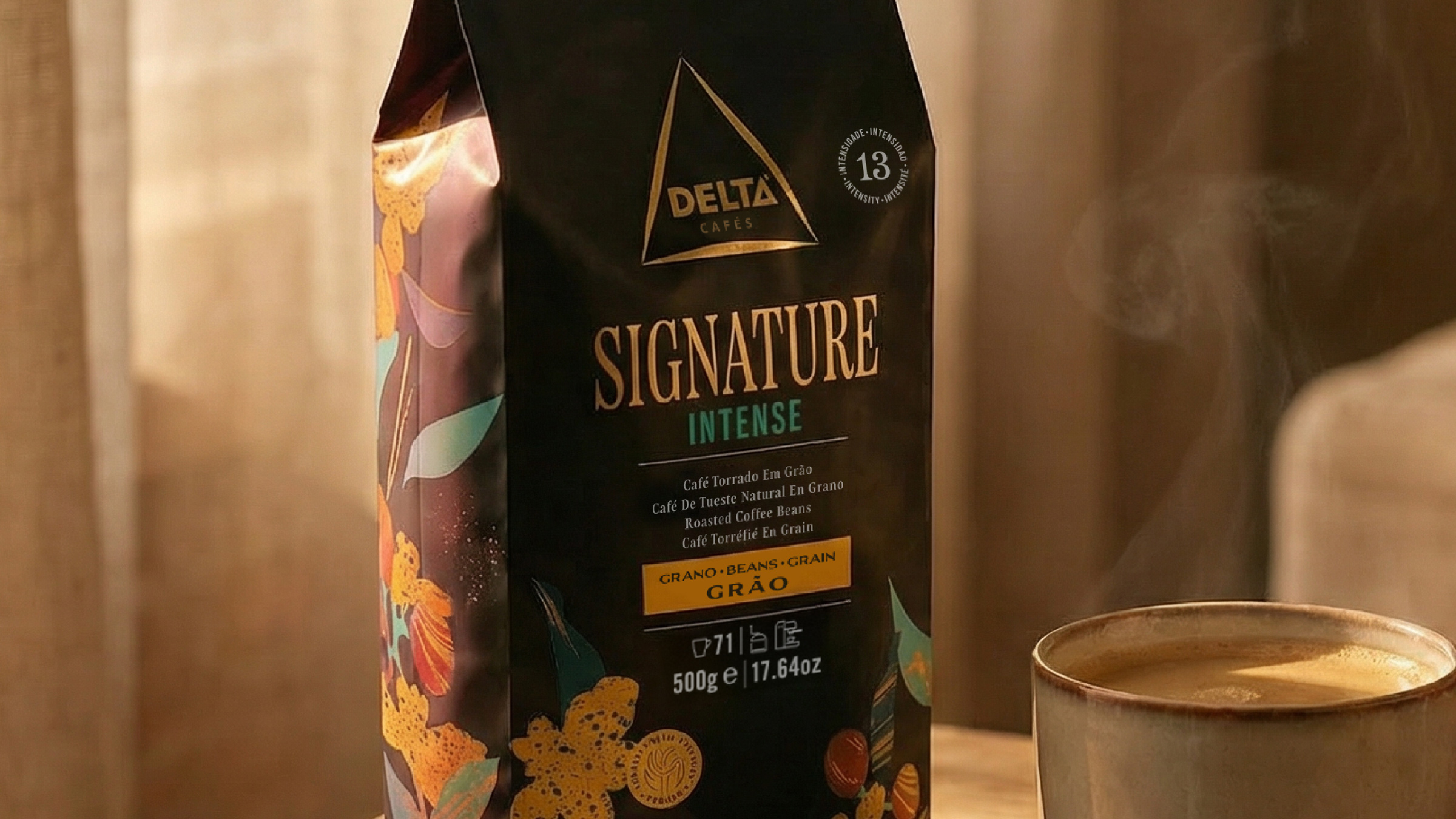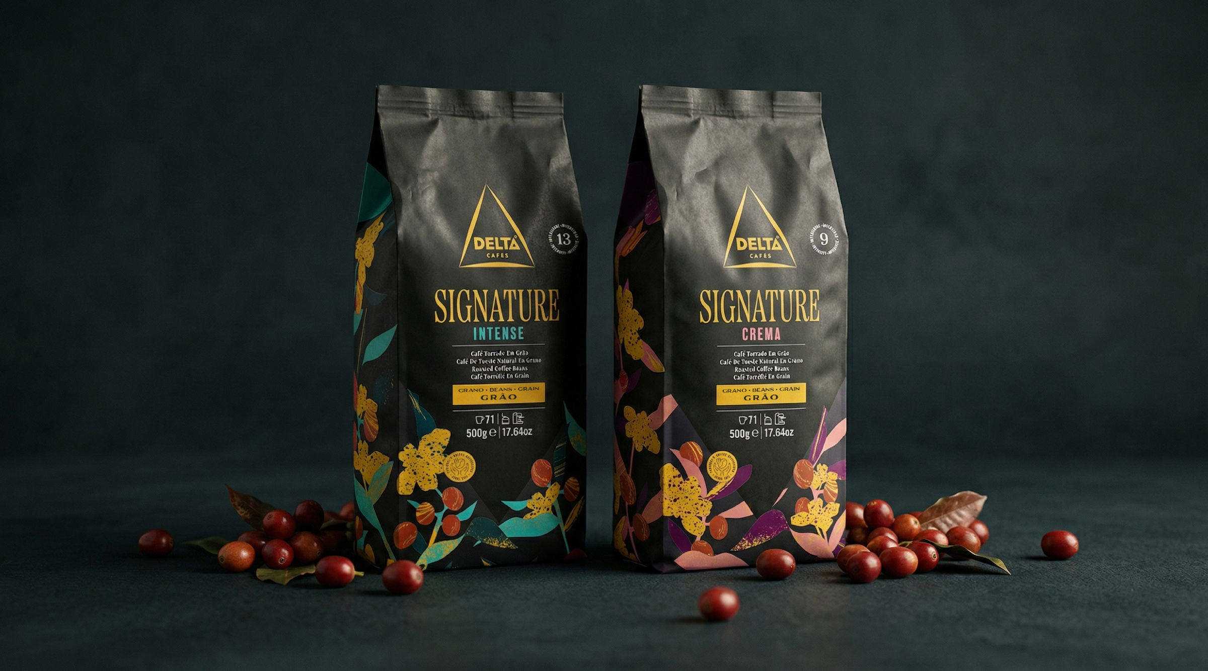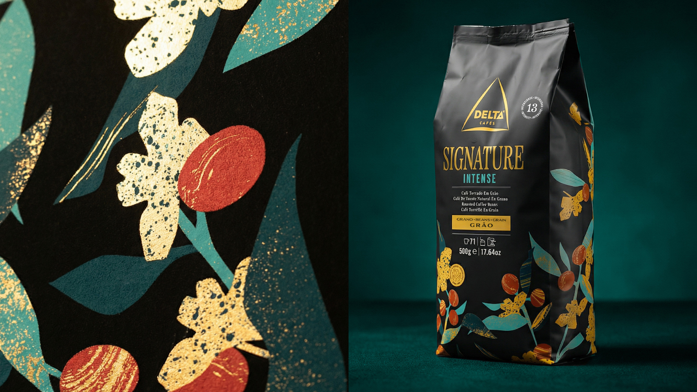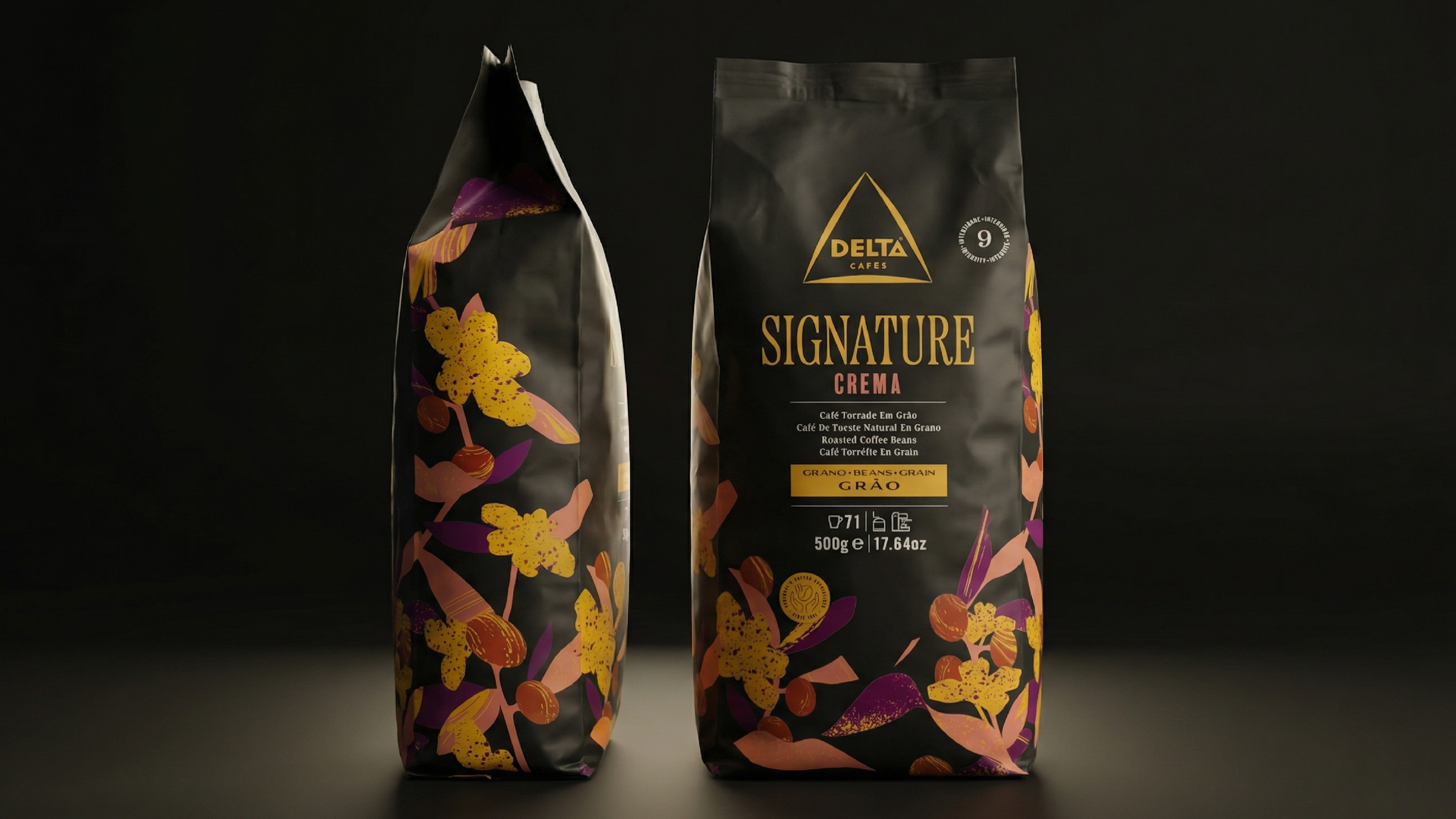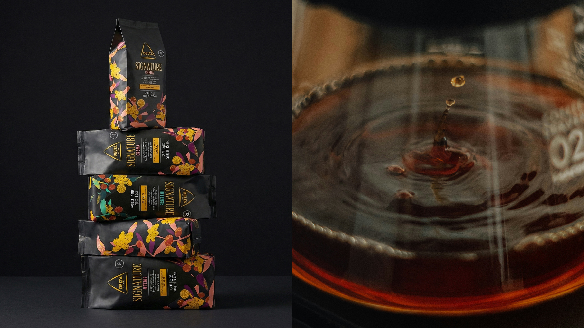 - Keywords: coffee, coffee beans, coffee packaging, delta cafes, signature, premium range, premium packaging