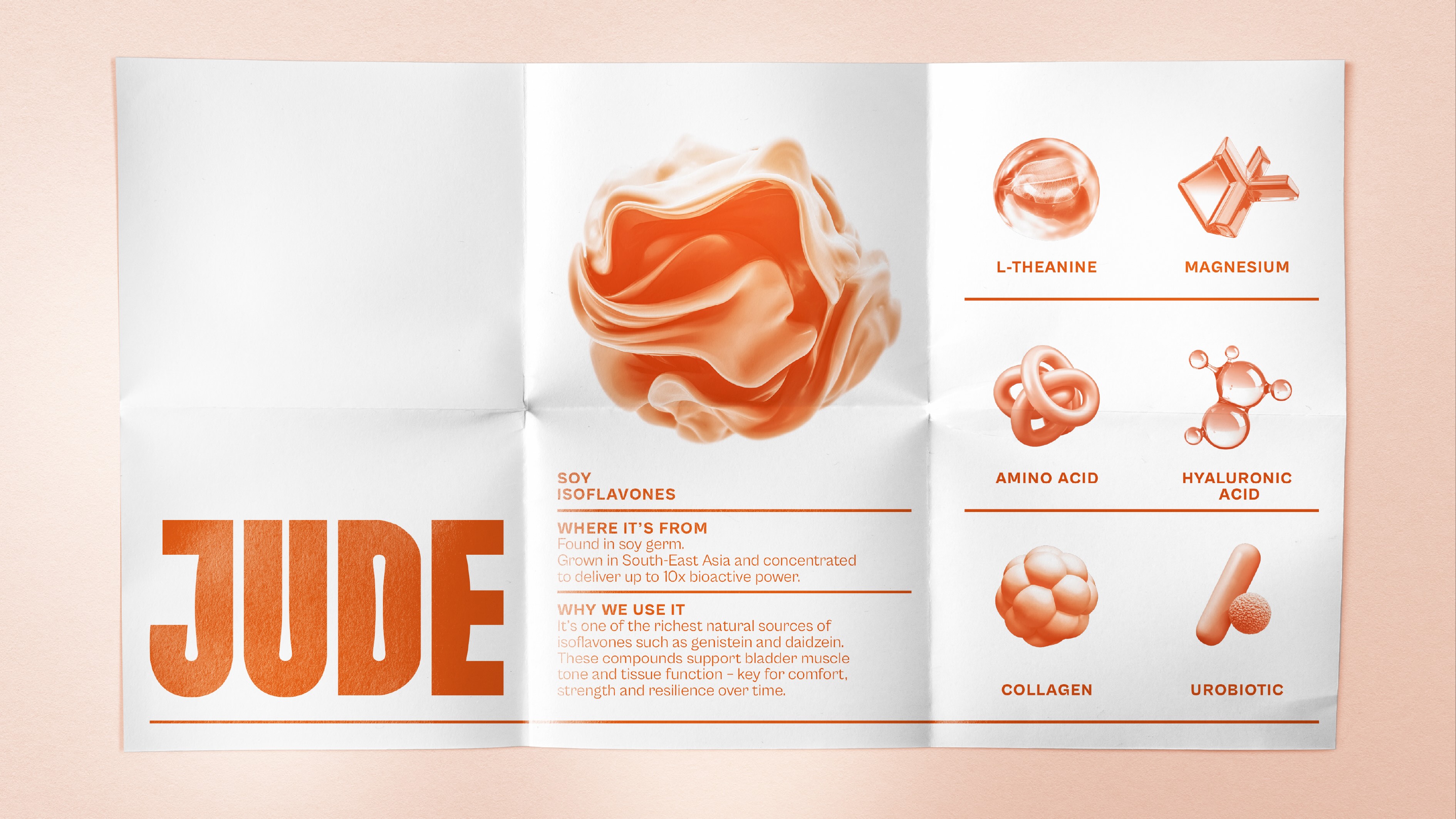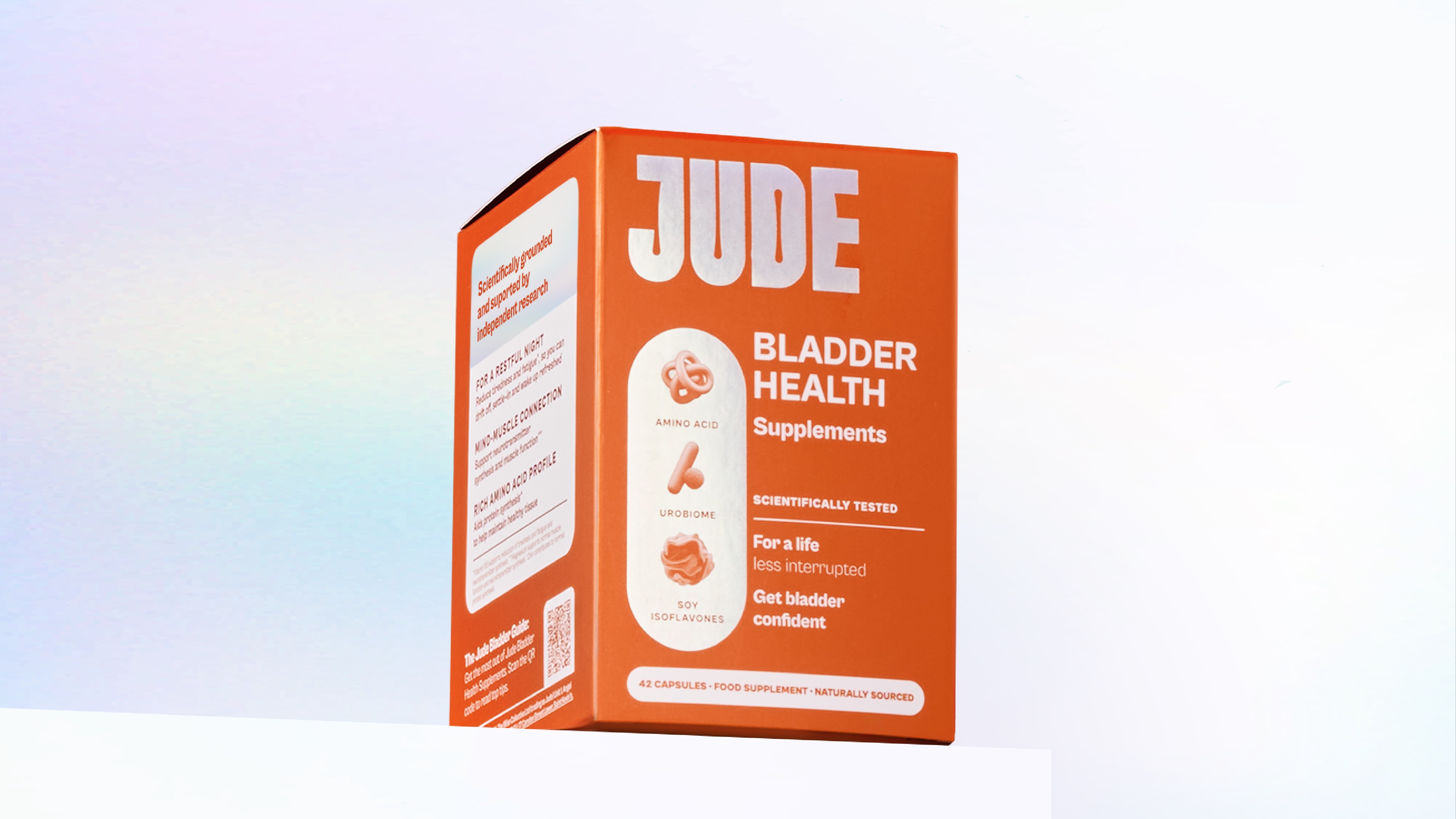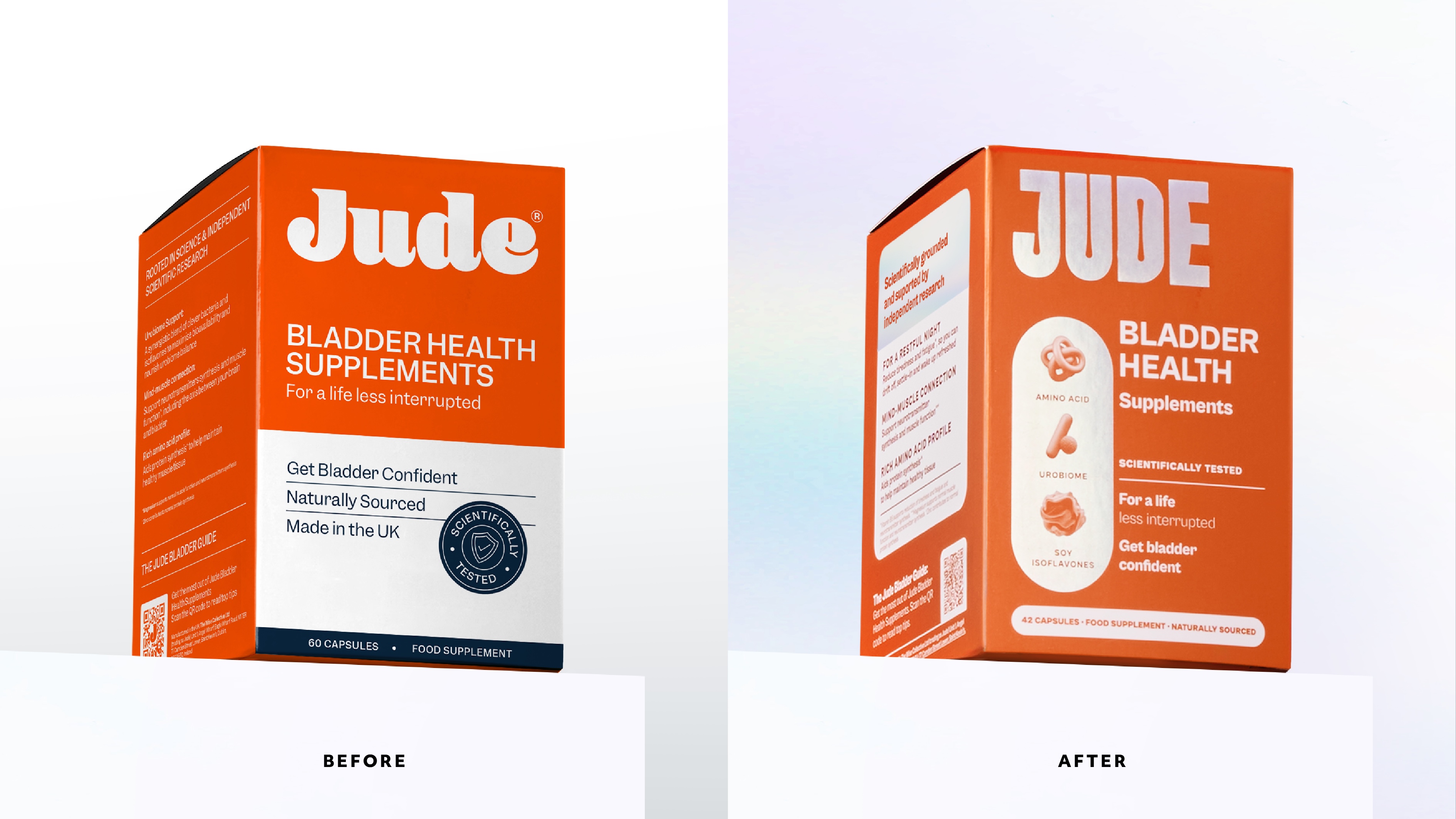 Our strategy was to shift Jude from an incontinence brand into the science led authority in bladder health. The design idea, Science for Living, captures this evolution – positioning Jude as a brand that uses clinical expertise to build resilience and inner strength.
