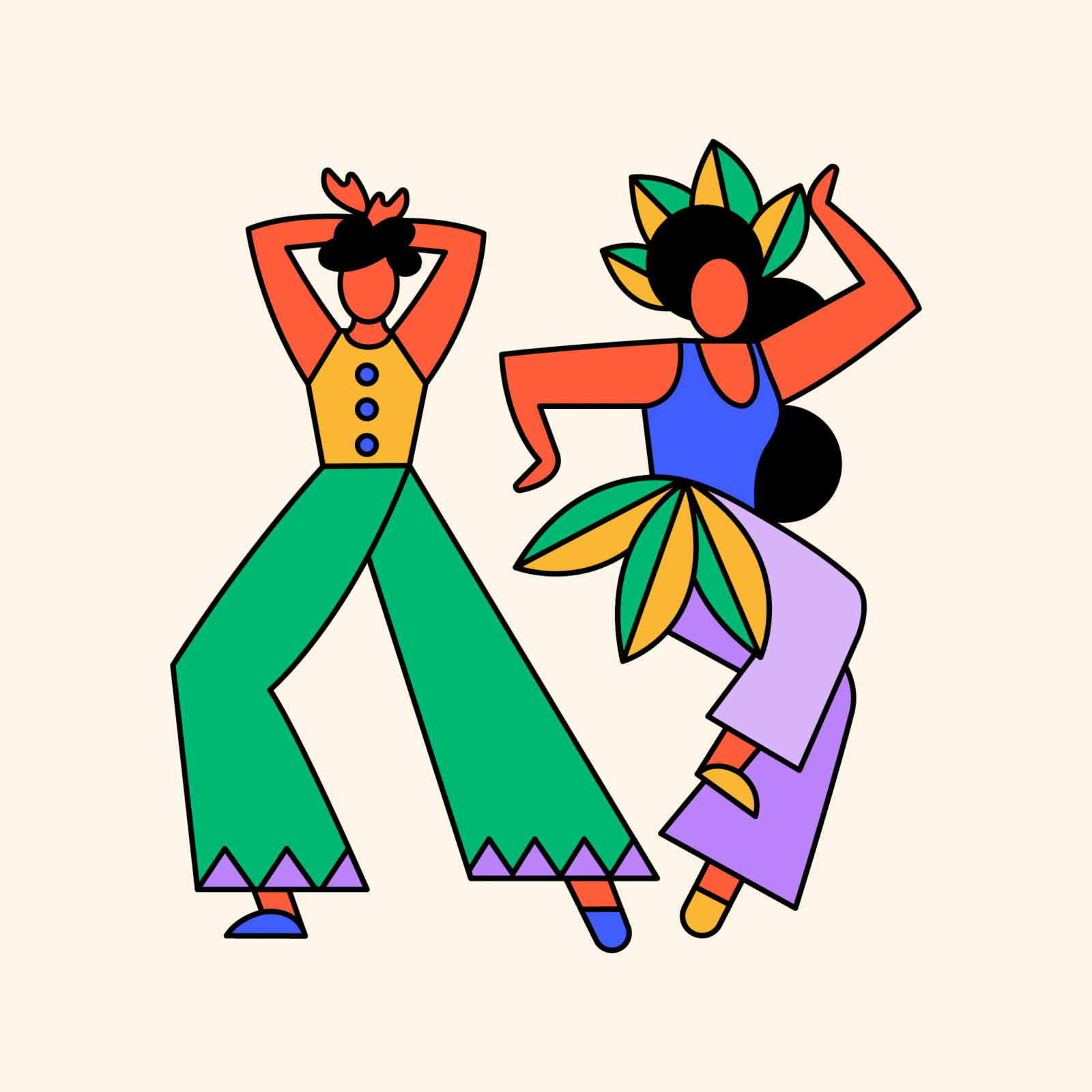 A lively new dancing duo icon capturing rhythm, movement and cultural warmth