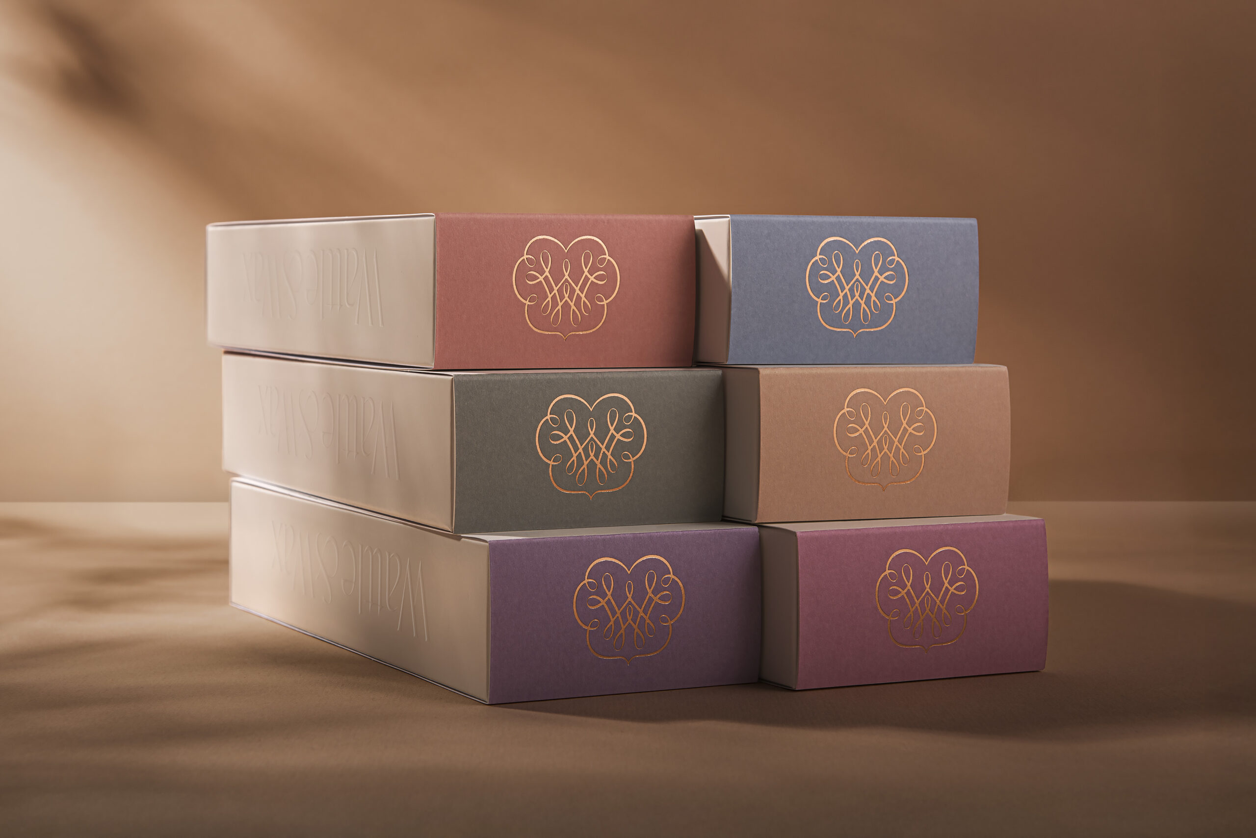 A new logotype, monogram and a suite of secondary brand assets established a refined visual identity. Central to the packaging was a two part structural design solution, a custom embossed base box with interchangeable printed sleeves. This approach providing flexibility for fragrance SKU variants and cost effectiveness in production, while maintaining a consistent look and feel across the range.
