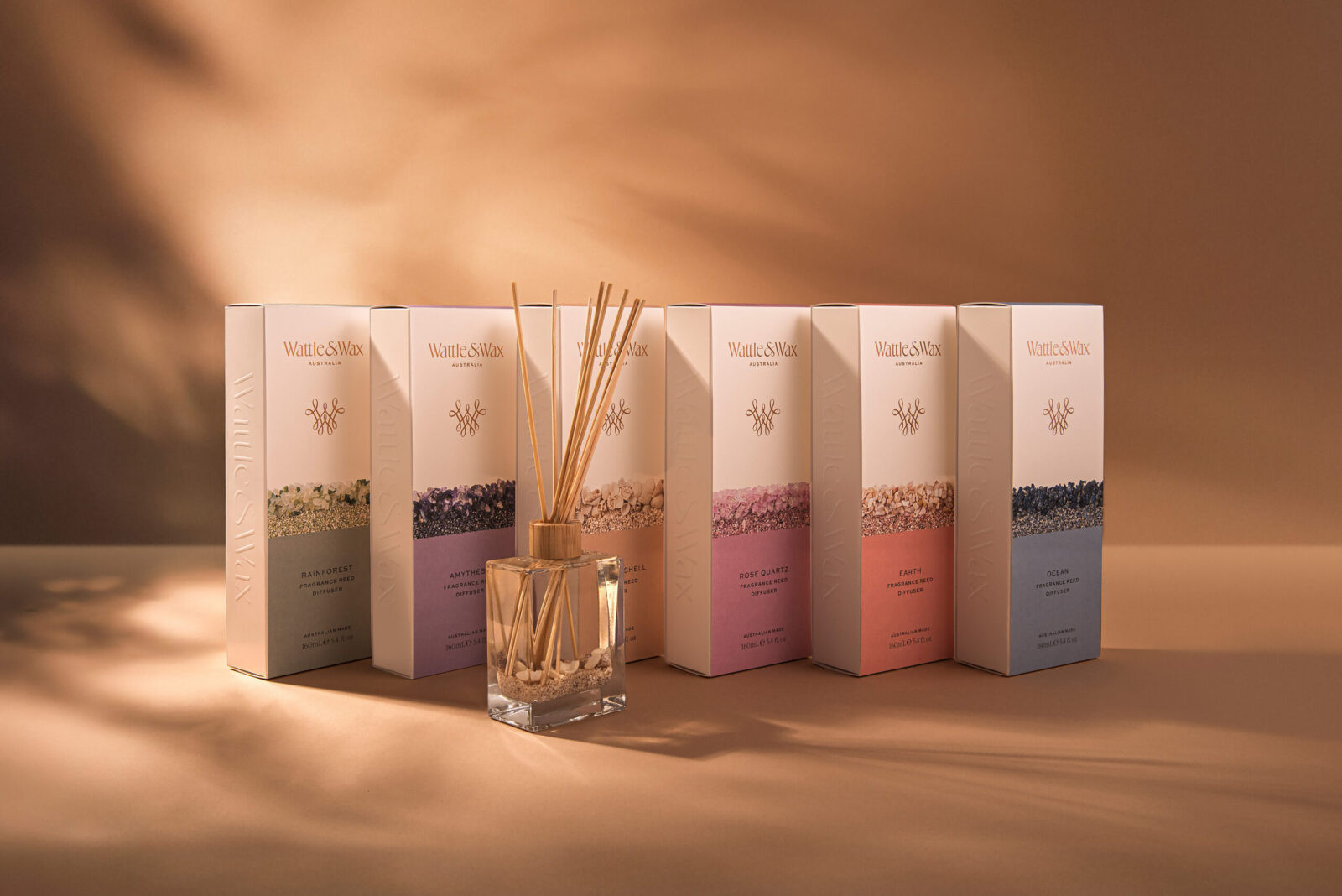 Having newly acquired Wattle & Wax, owner Renelle, was looking for a packaging design for the natural reed diffuser range. The project soon evolved into a full brand refresh, positioning Wattle & Wax as a contemporary and timeless brand that reflects the quality, craftsmanship, purity and sophistication of their product offering.