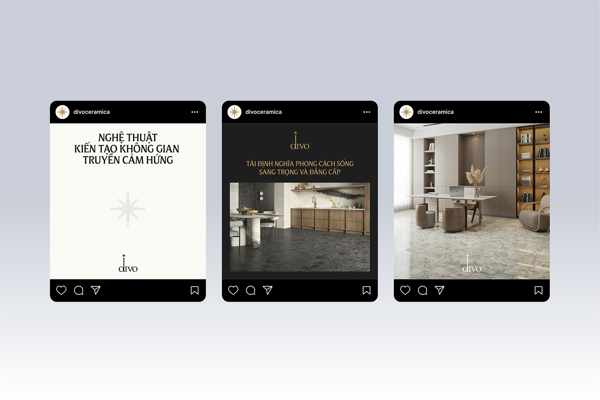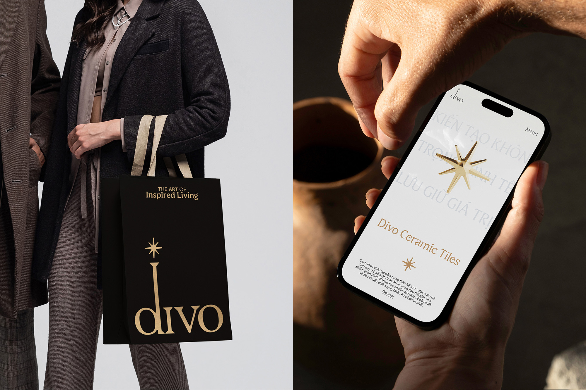 xolve partnered with DIVO to craft a refined and expressive brand identity that brings the essence of Italian craftsmanship to Vietnam’s luxury tile market. Rooted in the founders’ admiration for the artistry of ancient Italian cities and the spirit of “la dolce vita,” the brand’s name, derived from the masculine form of “diva”, reflects both sophistication and strength. Built on the strategic idea “The Art of Inspired Living,” the new identity draws from the North Star as a symbol of aspiration and excellence. The elongated “d” expresses direction and ambition, while the eight-pointed star signifies heritage and achievement, merging classic elegance with modern sophistication.