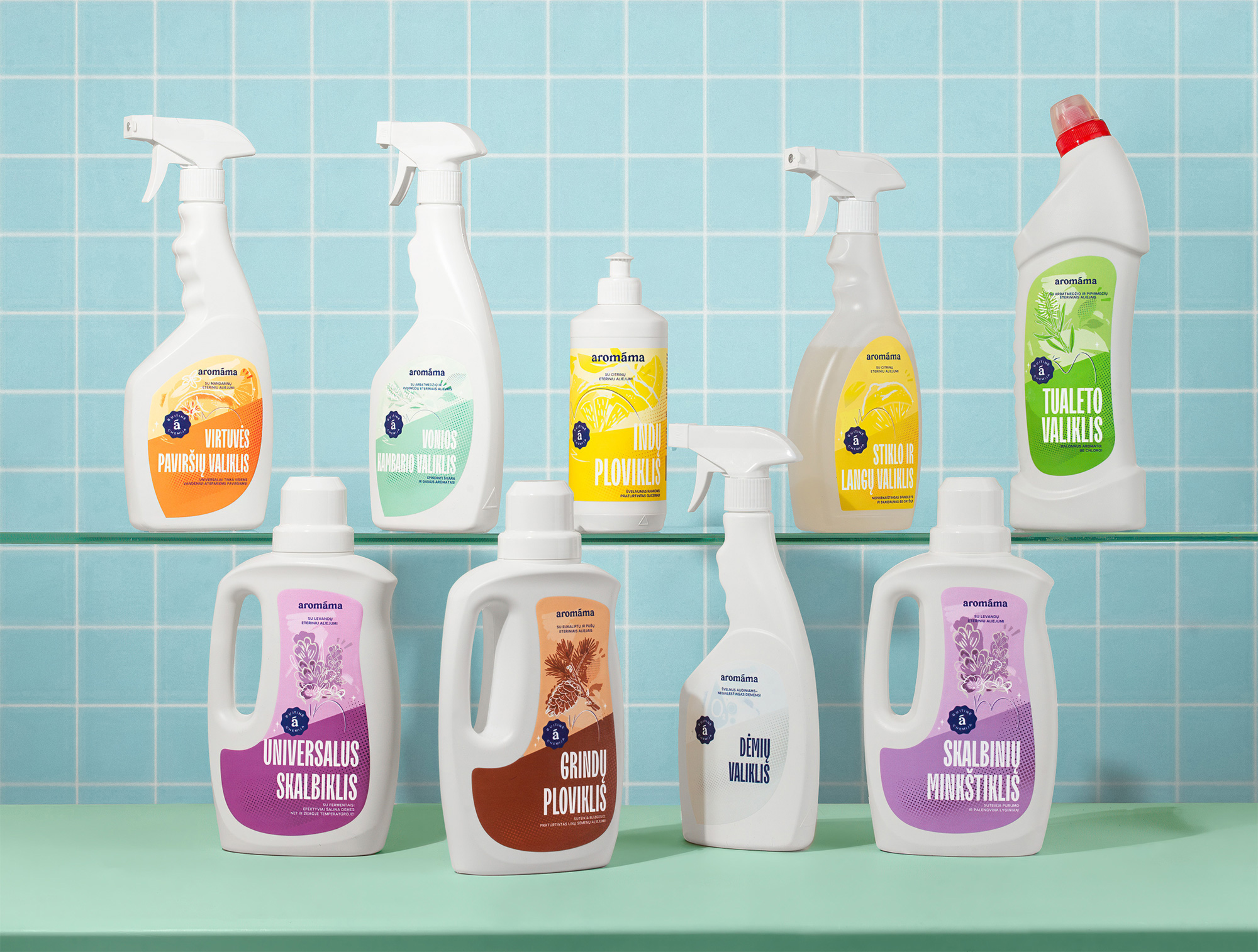 Dominic Rios Sakalauskas Develops Aromama Household Cleaning Line With Color-Coded SKUs and a Cohesive Illustrated World