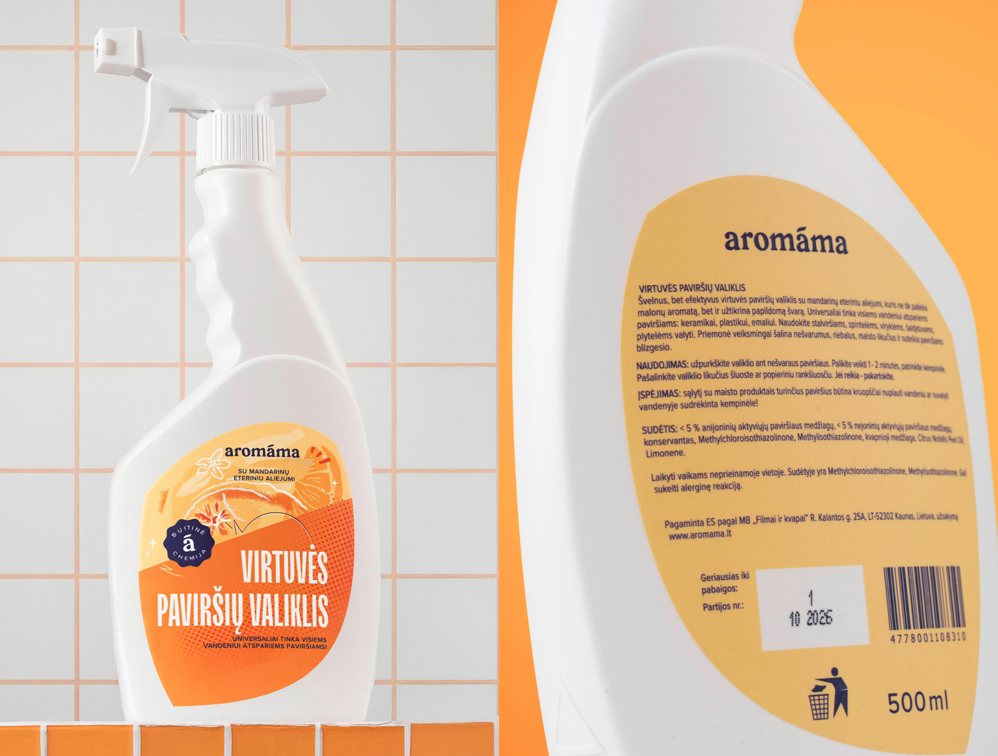 Aromama Household Cleaning Line was designed to bring a premium and modern aesthetic into everyday home care products, while still keeping the brand playful, warm, and full of personality. The goal was to create packaging that feels natural, elevated, and instantly recognizable on shelf, while also breaking away from the typical “clinical” look seen in many household cleaning products.