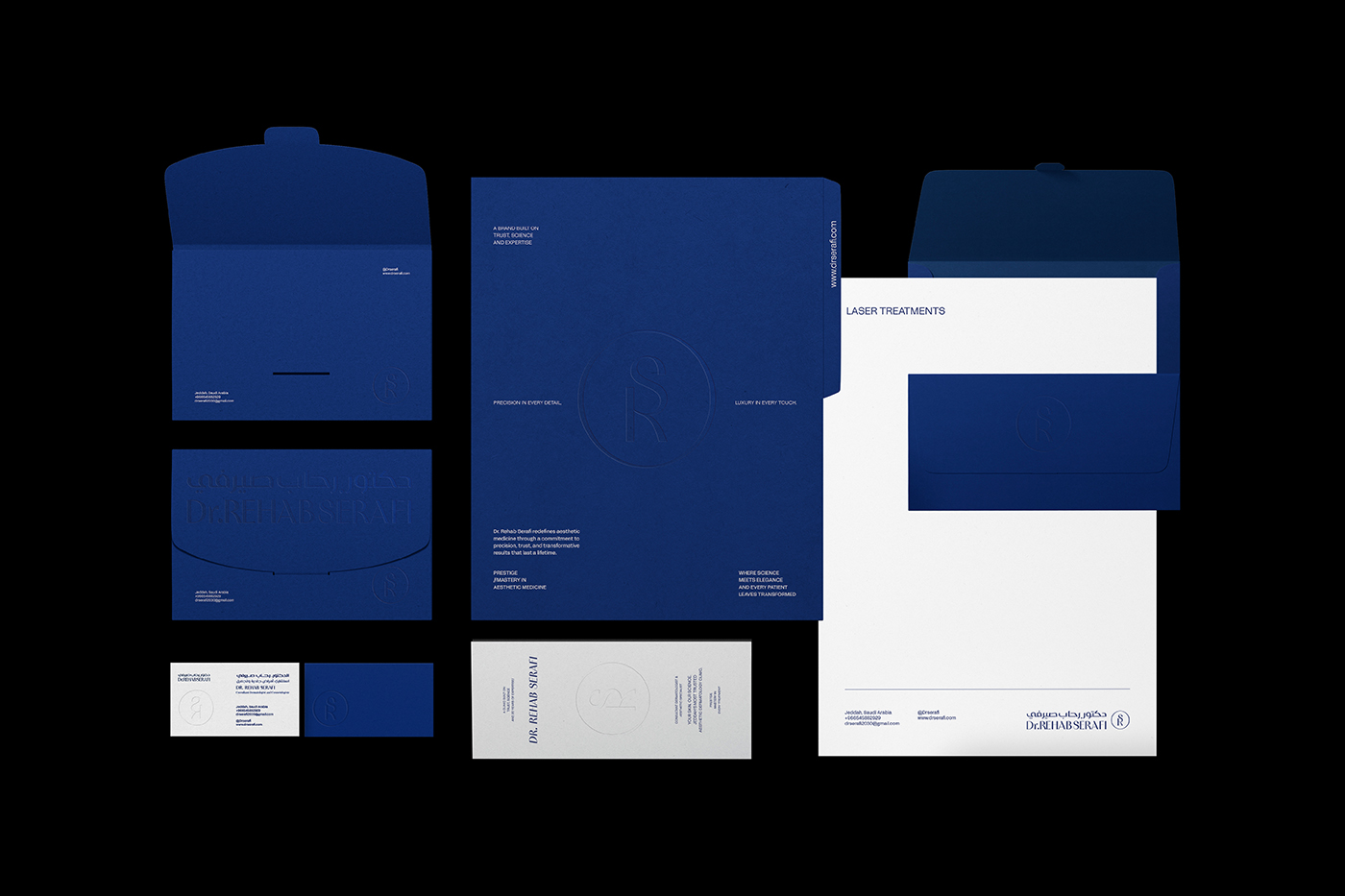 Deliverables included brand strategy, visual identity, brand applications, typography system, and communication assets. Together, these components create a flexible yet cohesive system that adapts across print, digital, and physical clinic space — supporting Dr. Rehab Serafi’s mission to transform confidence from within while delivering world-class dermatological care.
