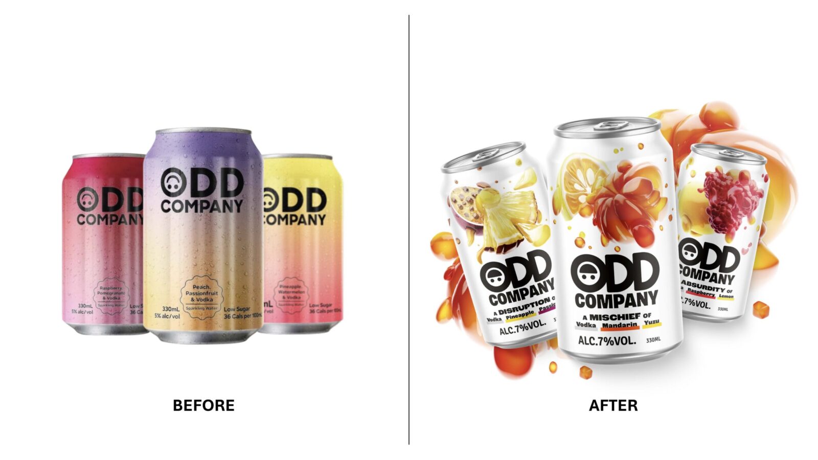 Odd Company a ready-to-drink (RTD) brand from Heineken had launched in New Zealand but was failing to connect with Gen Z consumers. Its gradient can and quirky logo nodded to “odd”, yet the minimal look tended to blend into a sea of sameness, with limited impact and taste appeal, and an identity that didn’t really extend beyond pack. As the category grew, it had started to get lost on shelf, crowded out by new competitors.