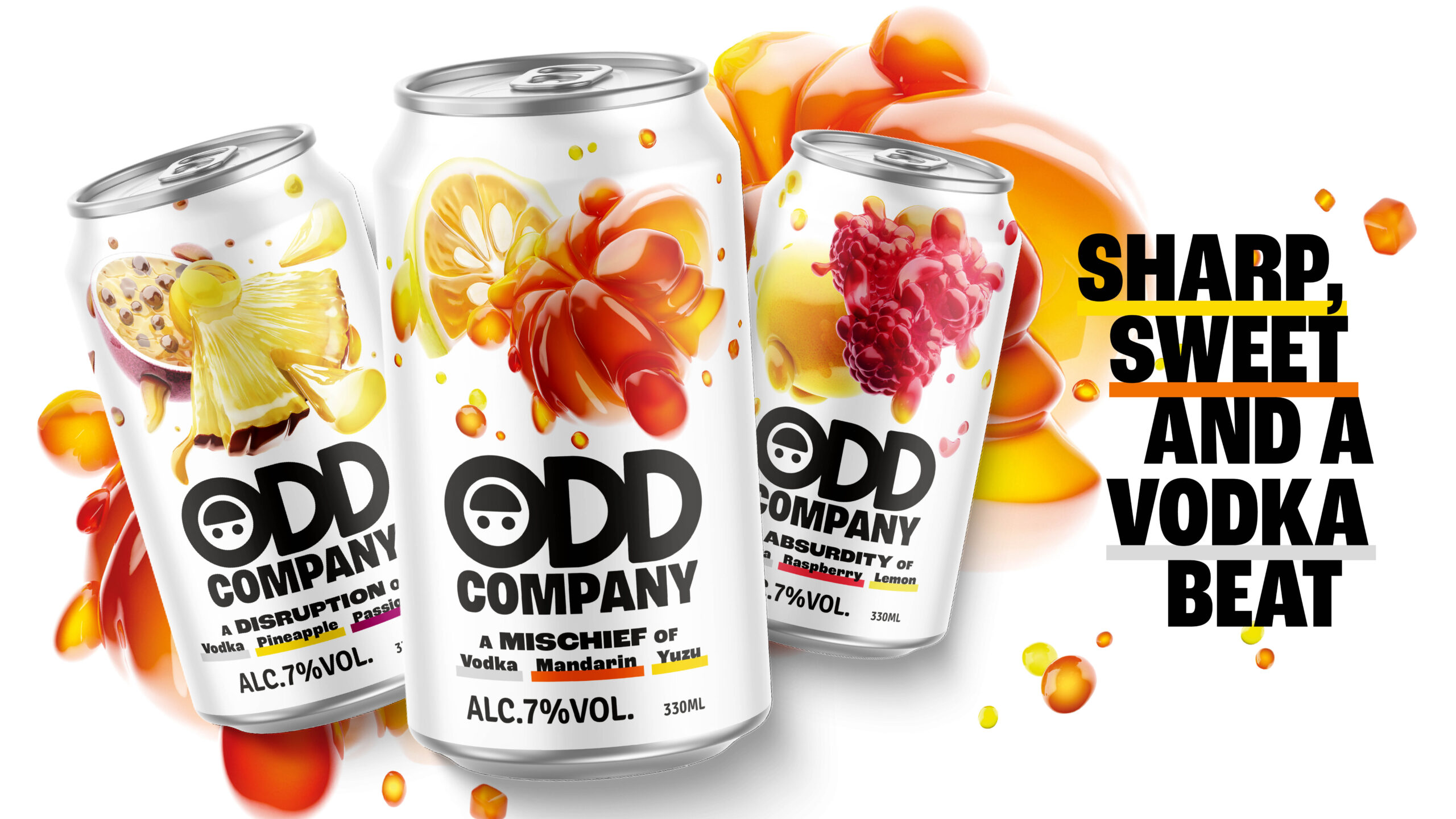 Design-wise, our ambition was clear: to disrupt the norm. To create a brand bursting with flavour, character and oddity, that would shake the RTD shelf up and unleash a new chapter of growth for the brand.