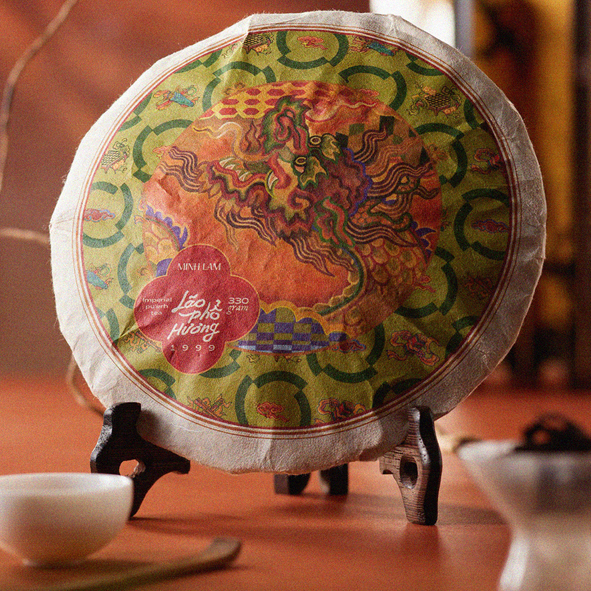 Lão Phổ Hương 1999 (1999 Imperial Pu’erh Tea) Is a ripe (shou) Puerh tea, crafted in 1999 from ancient snow shan tea trees, aged from 200 to 600 years. Exemplifying the finest qualities of aged shou Pu’erh, it boasts a deep amber-red liquor and an aroma redolent of precious woods, forest undergrowth in the dry season, and the rich scent of earth. Its aftertaste is round, sweet, warming, and serene.