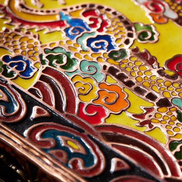 “Cloisonné glows like jade – dragon breathes fire,