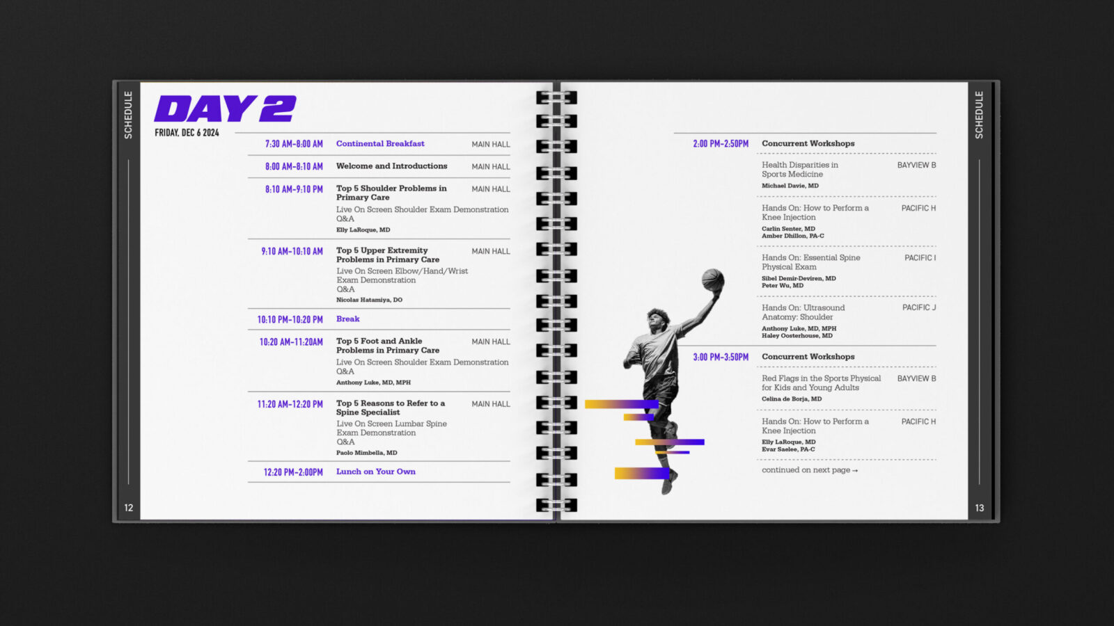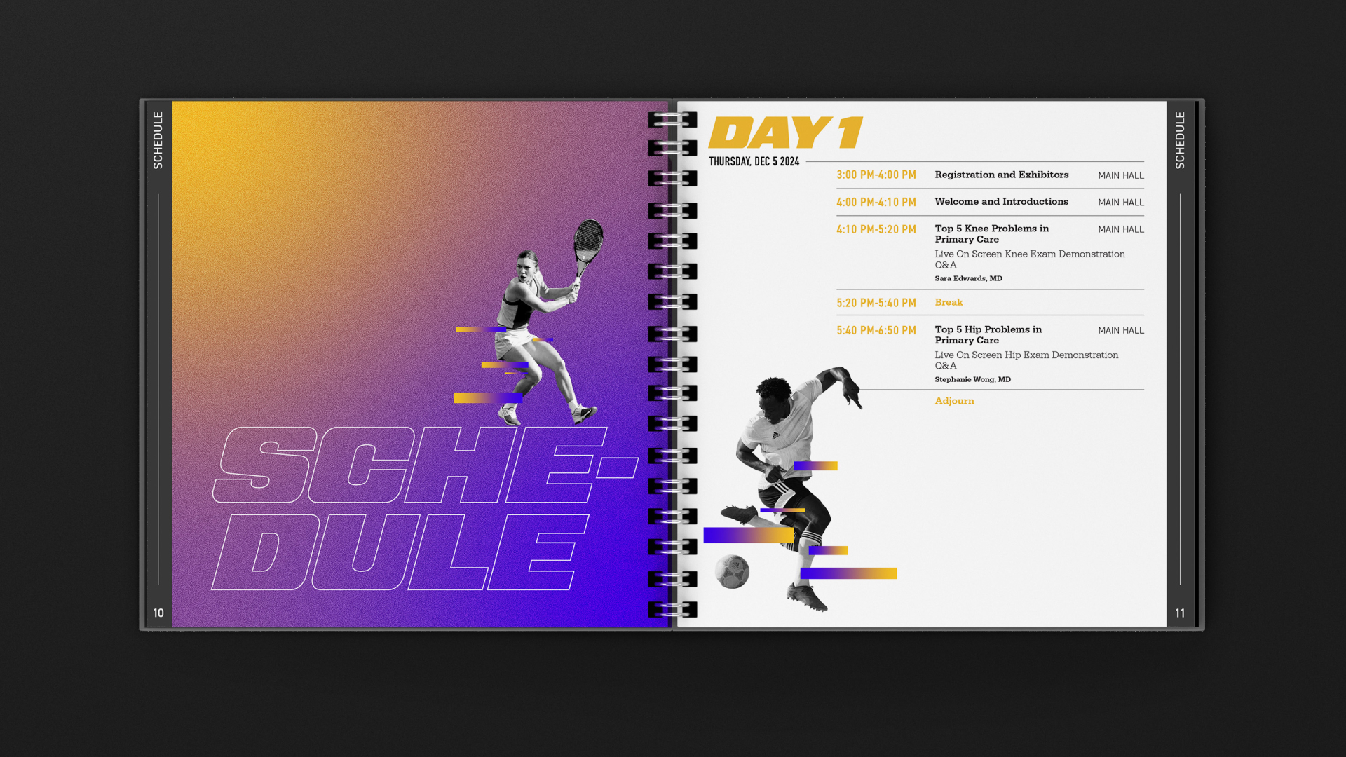 In combination, these elements form an identity that is both high-energy and highly functional. A branded event system capable of carrying the conference’s scientific authority while celebrating the endurance woven into every level of sports medicine practice.