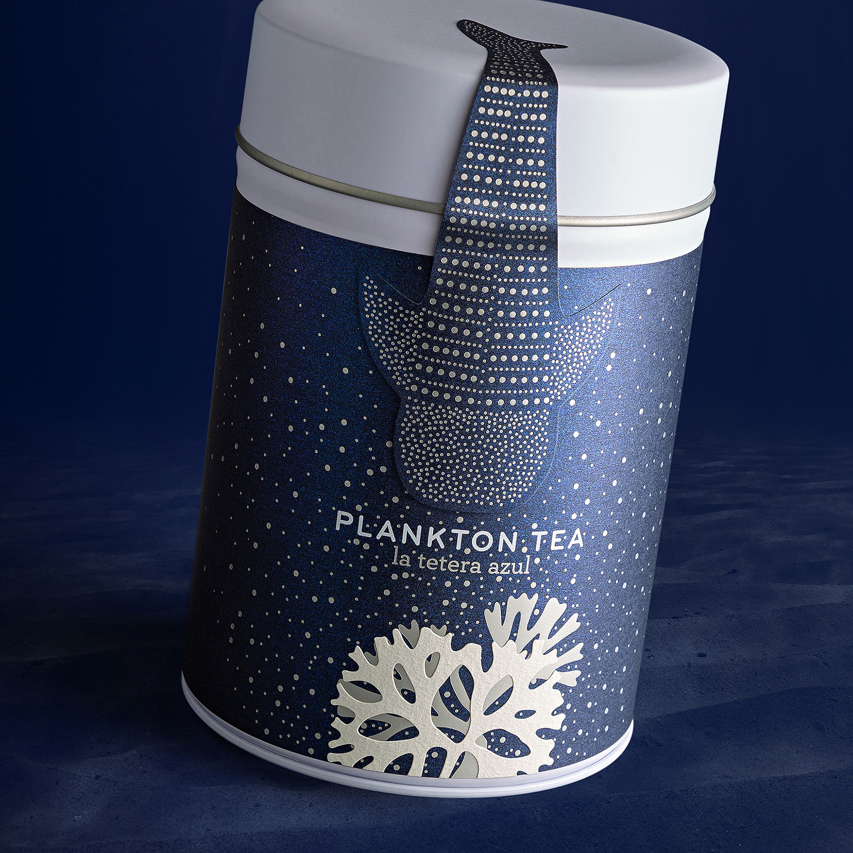This design seeks to fully immerse the observer in plankton’s natural habitat: the mysterious and captivating seabed. It invites the viewer to descend into a hidden ecosystem, a world inhabited by algae, microorganisms, and one of the ocean’s most fascinating creatures—the whale shark, an animal that feeds on plankton and symbolizes balance within this delicate environment. This majestic fish becomes a key visual and functional feature, thoughtfully integrated into the packaging as both a closing lid and a sealing element, reinforcing the connection between content and container.