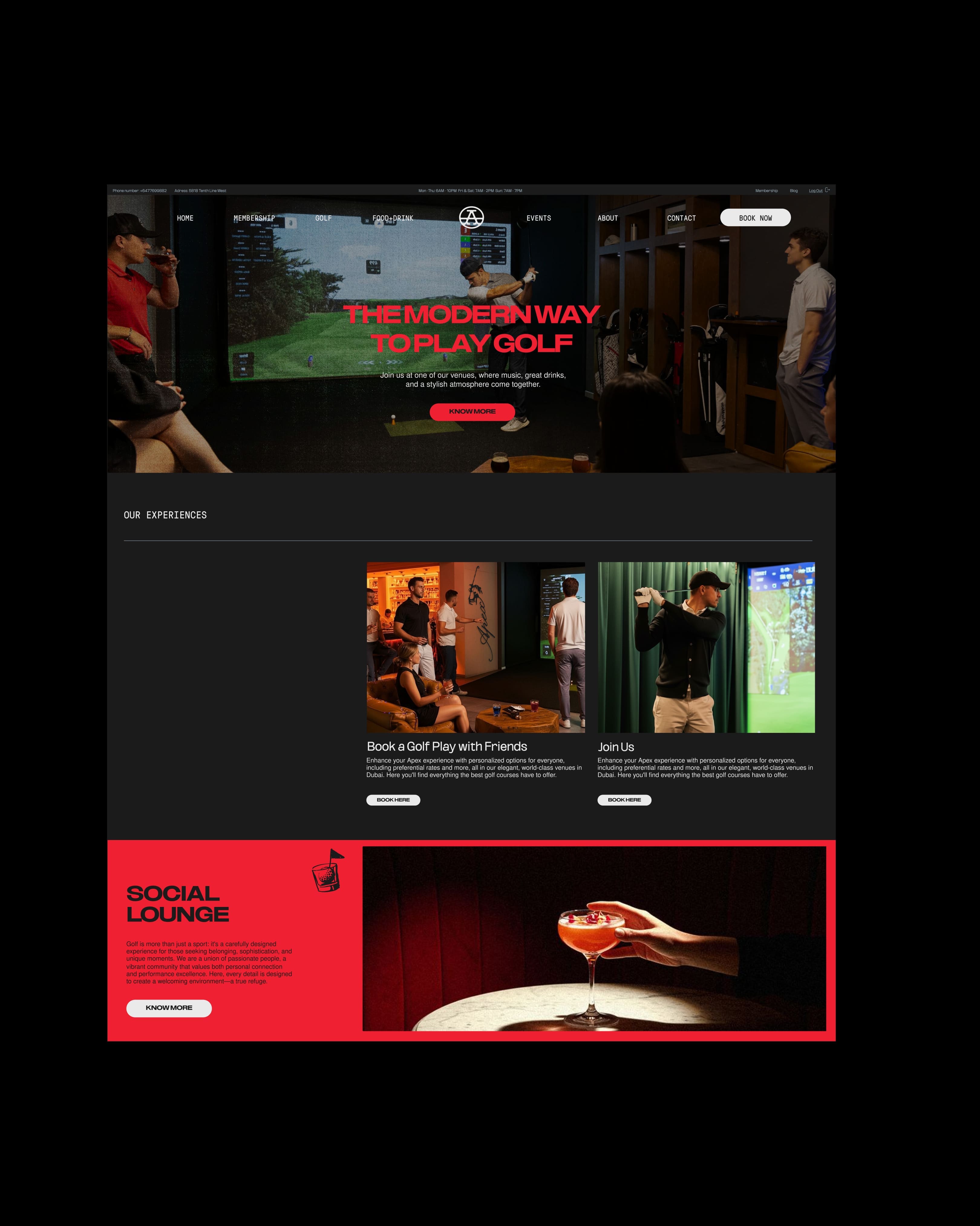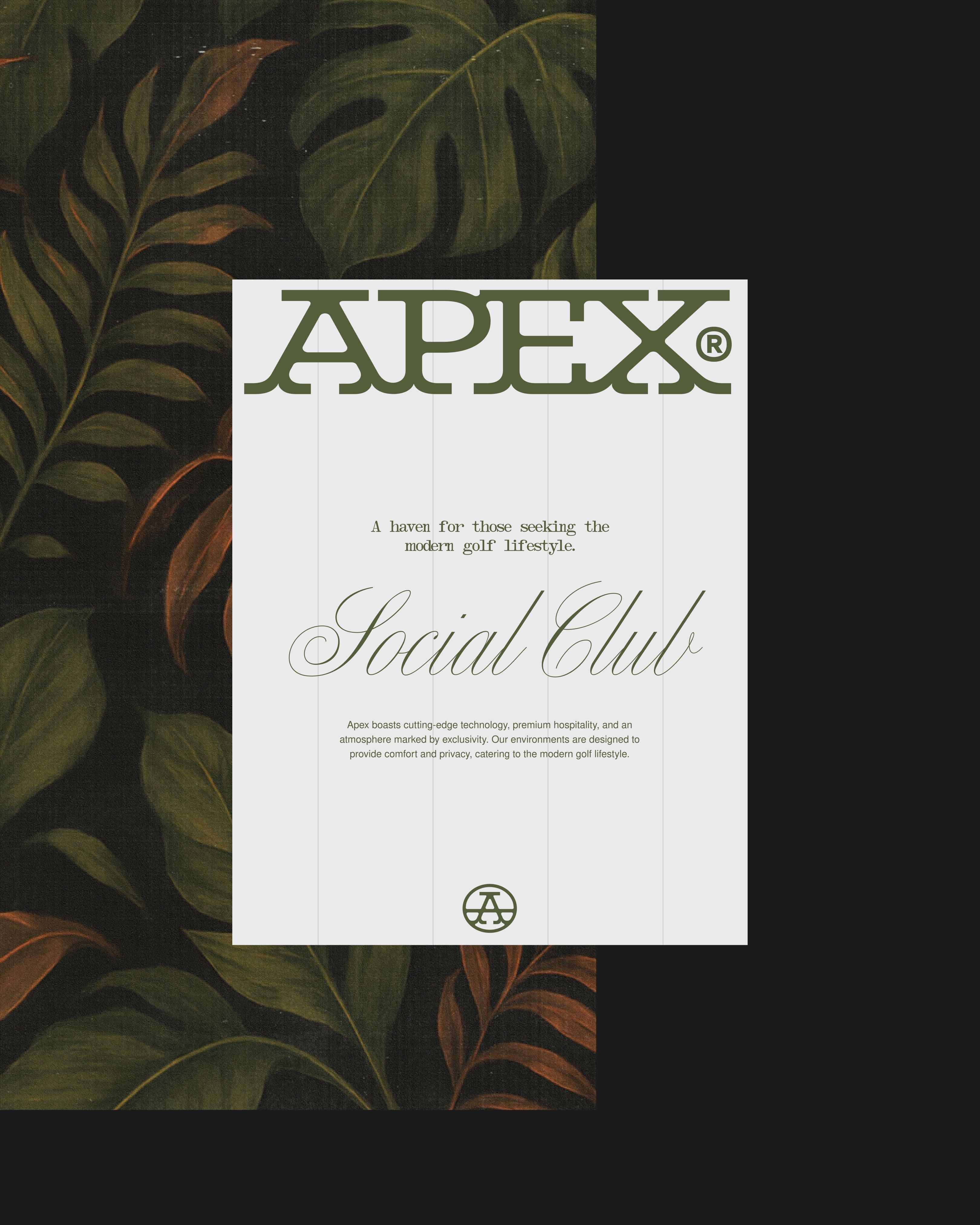 More than a golf studio, Apex Golf is a platform for community, performance, and modern living. The identity built around it reflects that ambition at every level, and lays the visual foundation for a brand positioned to lead not just in the GCC, but globally.