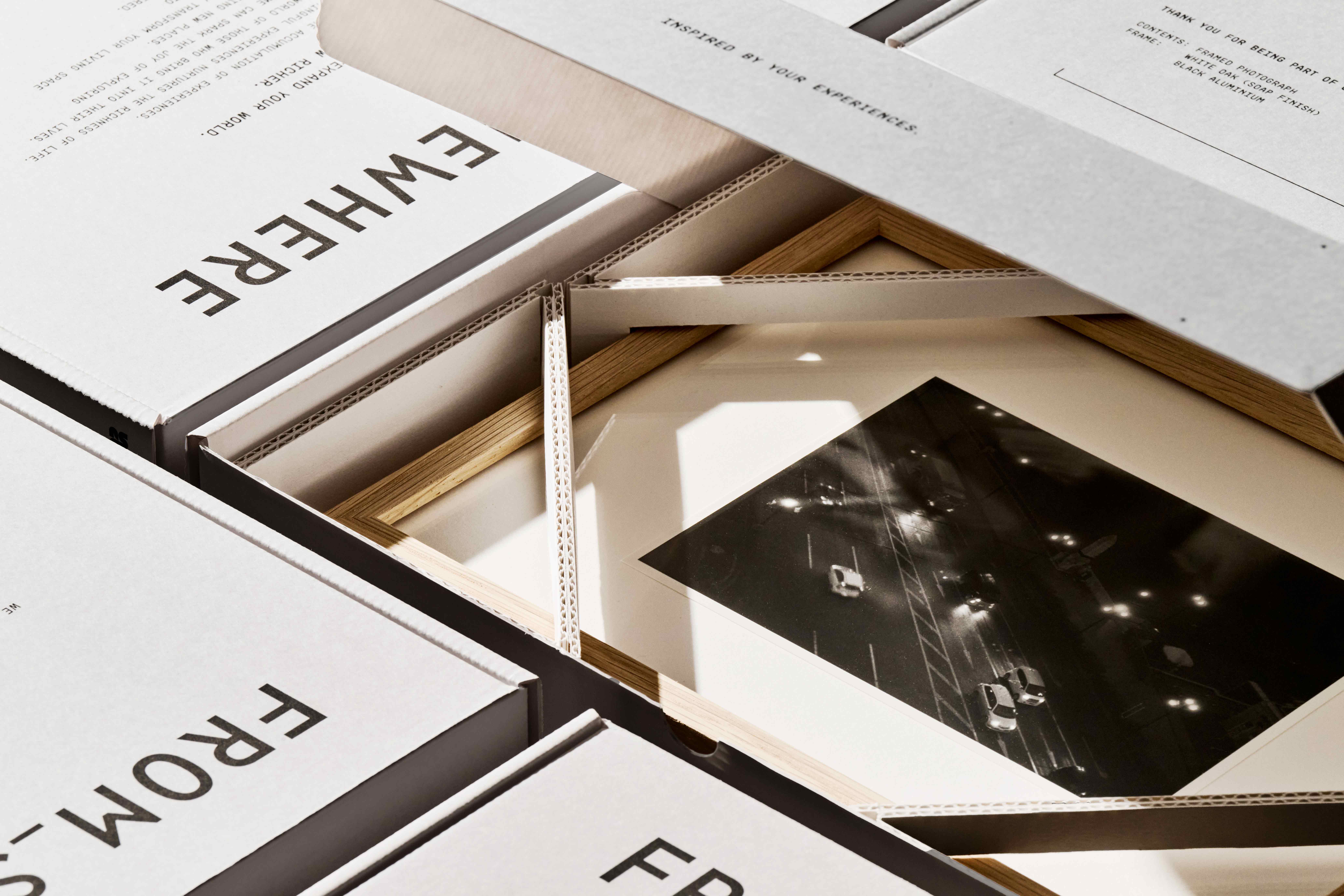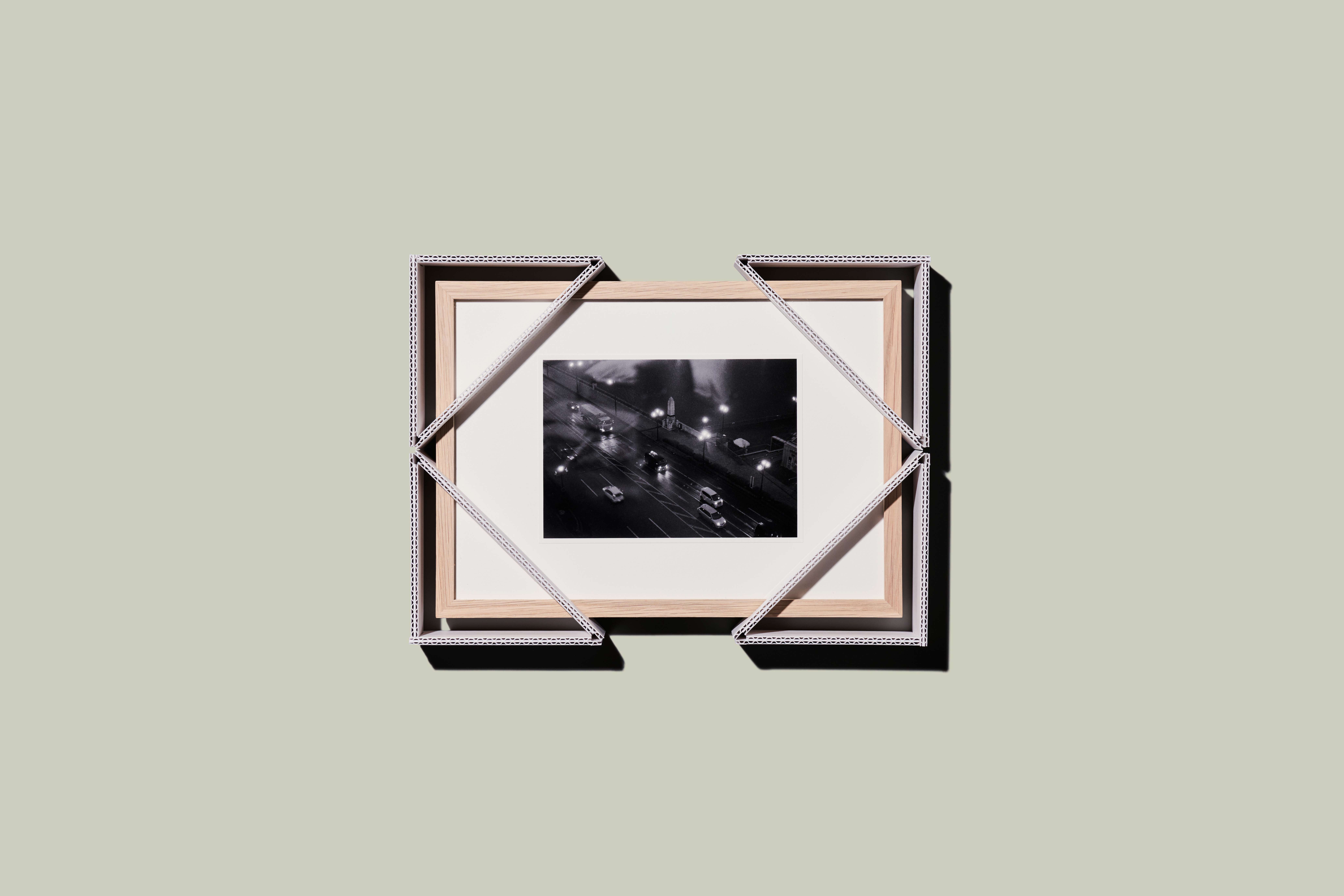 The uniqueness lies in their environmentally conscious design. To avoid excessive packaging, the brand embraces eco-friendly, plastic-free materials, every element crafted from natural alternatives. Even the cushioning is thoughtfully designed without plastic, protecting each framed piece with a structure that is both minimal and efficient.
