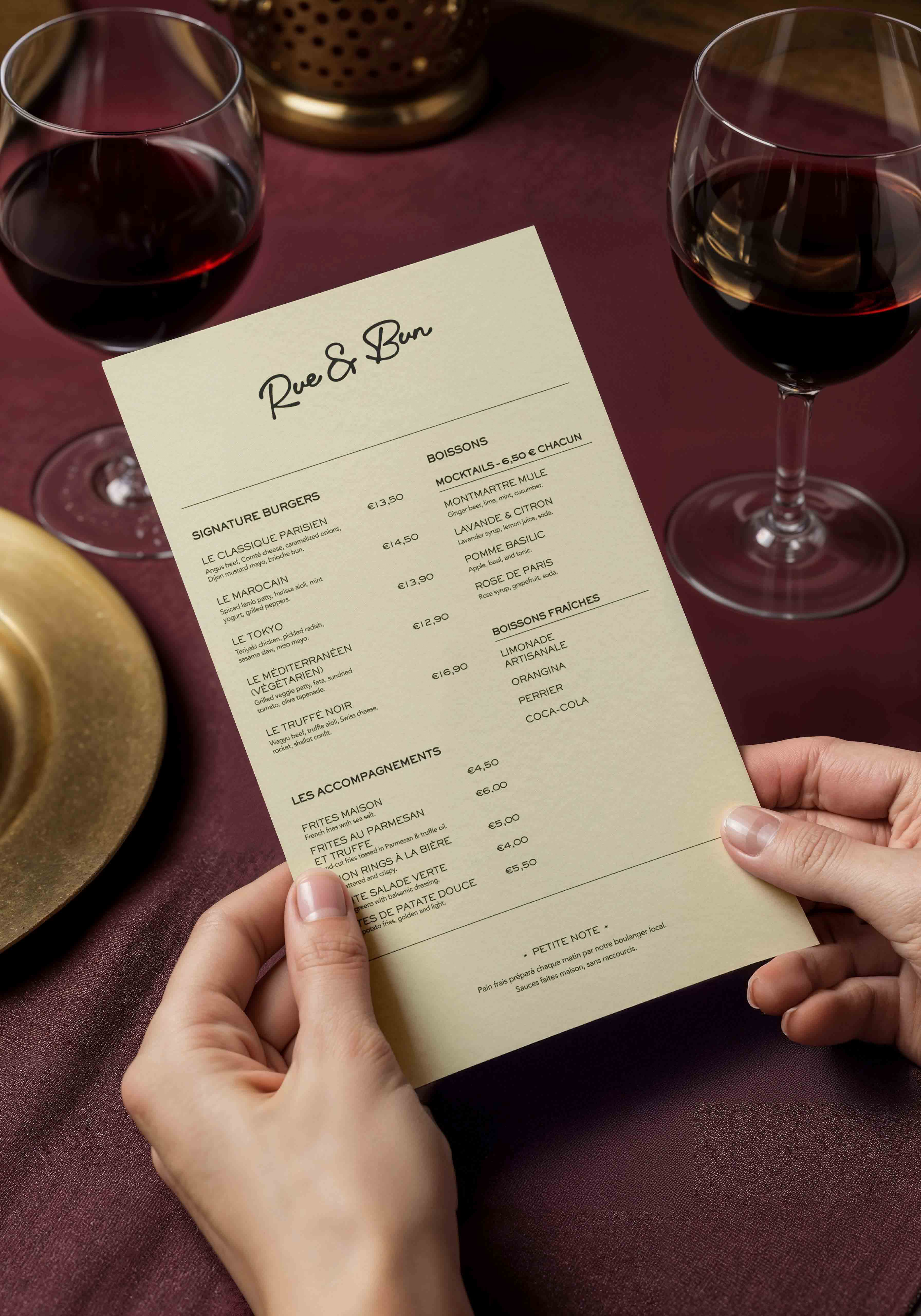 Tucked into the charming slopes of Montmartre, Rue & Bun redefines what a burger joint can be. Instead of leaning into the loud, flashy aesthetics often associated with fast-food culture, this boutique eatery embraces the subtle elegance and calm rhythm of Parisian life. The goal was to craft a space and identity that feels effortlessly local — one that belongs to the neighborhood, to its people, and to the bohemian charm of its cobbled streets.