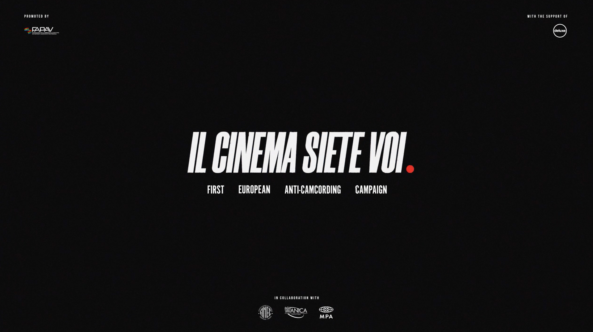 *Il Cinema Siete Voi* is the first European anti-camcording and anti-piracy campaign created specifically for the cinema environment.