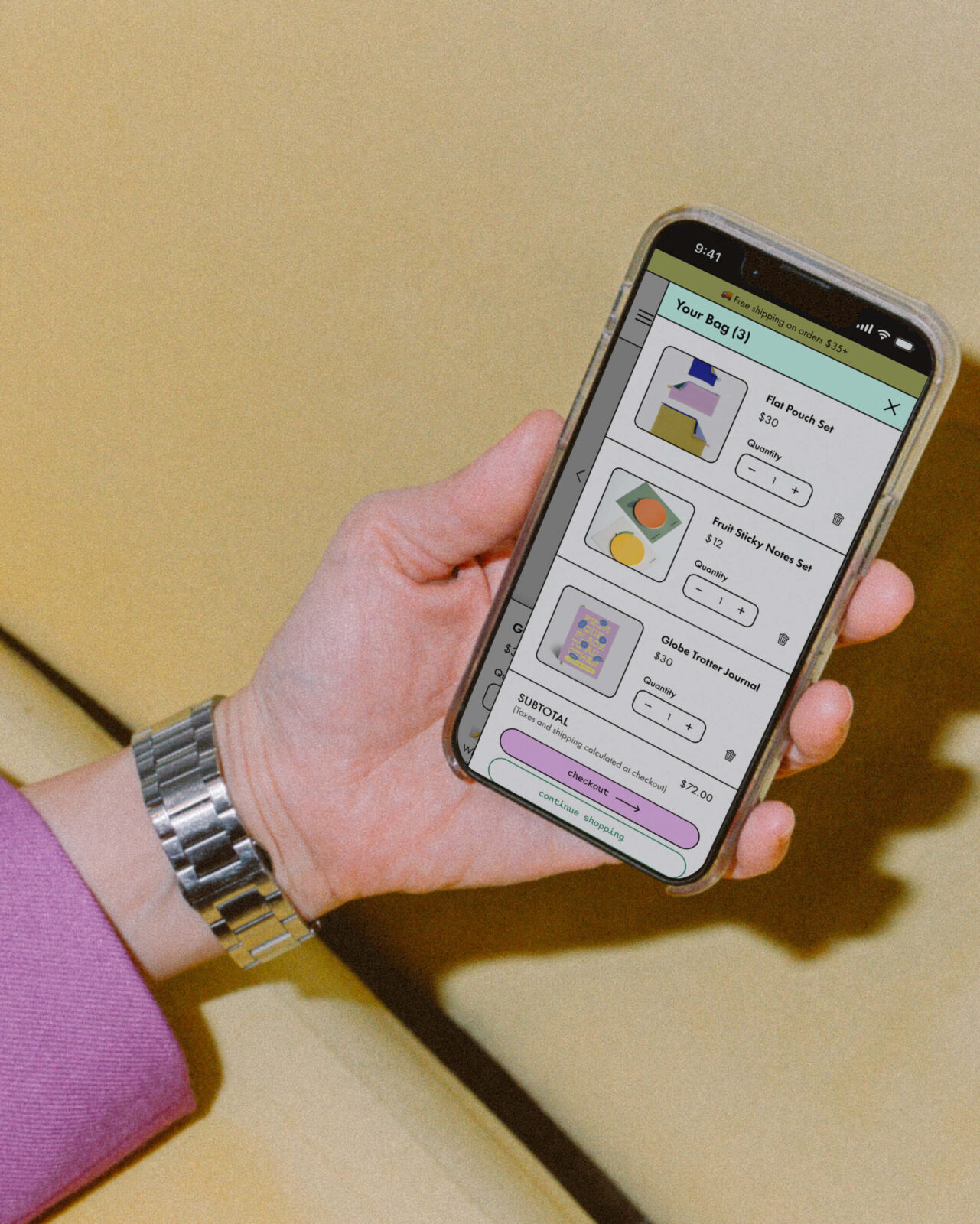 Typography plays a central role in shaping the visual identity. New Kansas, a friendly and approachable serif, brings warmth and readability to headings. Futura PT feels classic yet modern, providing clean legibility for product information. Monoitalic and Eldwin Script add stylistic flair, inspired by handwriting and subtly grounding the digital experience in the analog world of stationery. Together, these typefaces create a visual hierarchy that balances classic, modern, and playful energy. Emojis are also used as playful icons on product detail pages, reinforcing the brand’s personality.