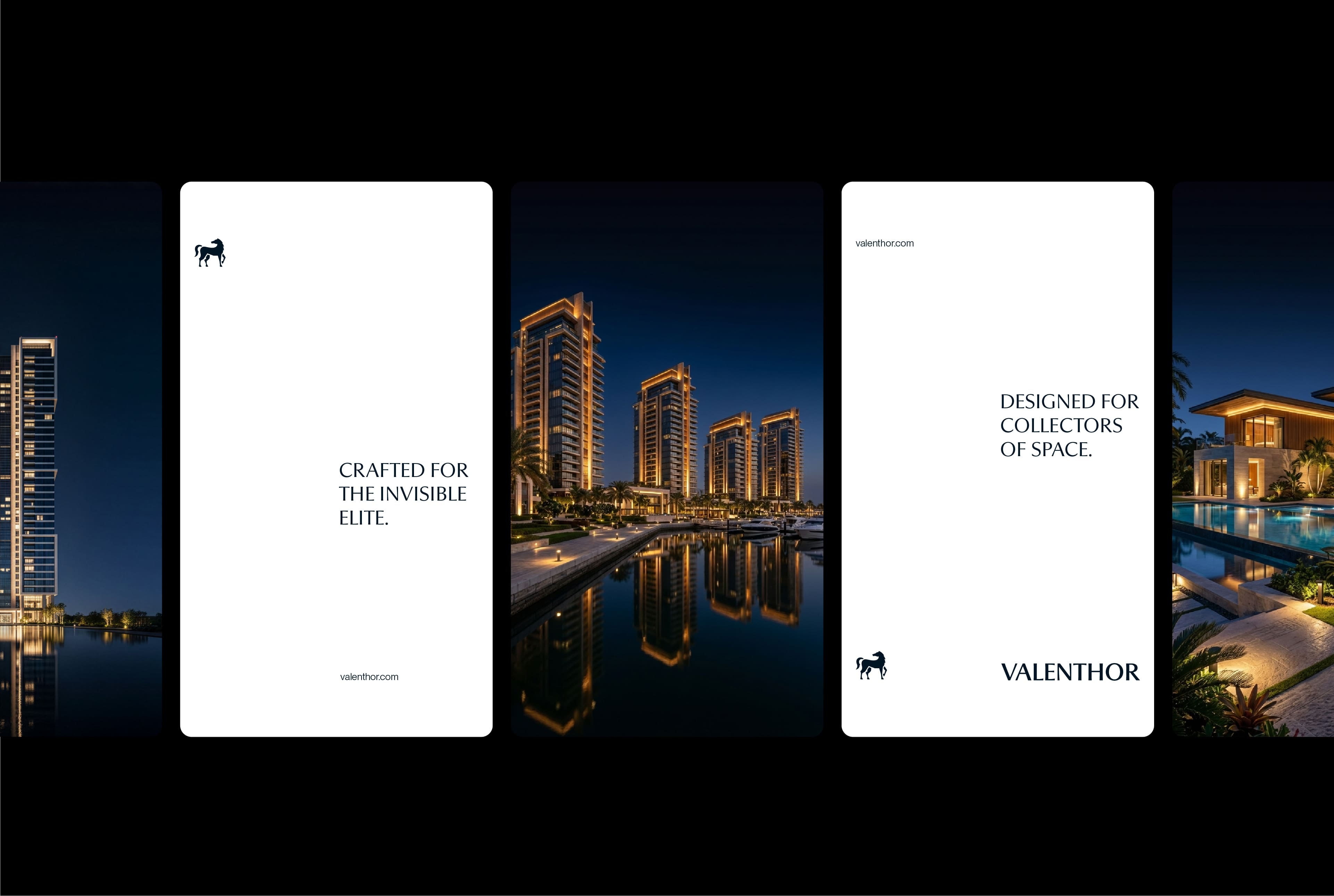The challenge was to move away from traditional luxury real estate branding that often relies on visual excess, cultural ornamentation, and sales-driven communication. Velanthor needed to feel controlled, architectural, and globally refined, a brand that communicates power through restraint rather than decoration. The goal was to create an identity that feels quiet yet dominant, modern yet timeless, and premium without appearing promotional.