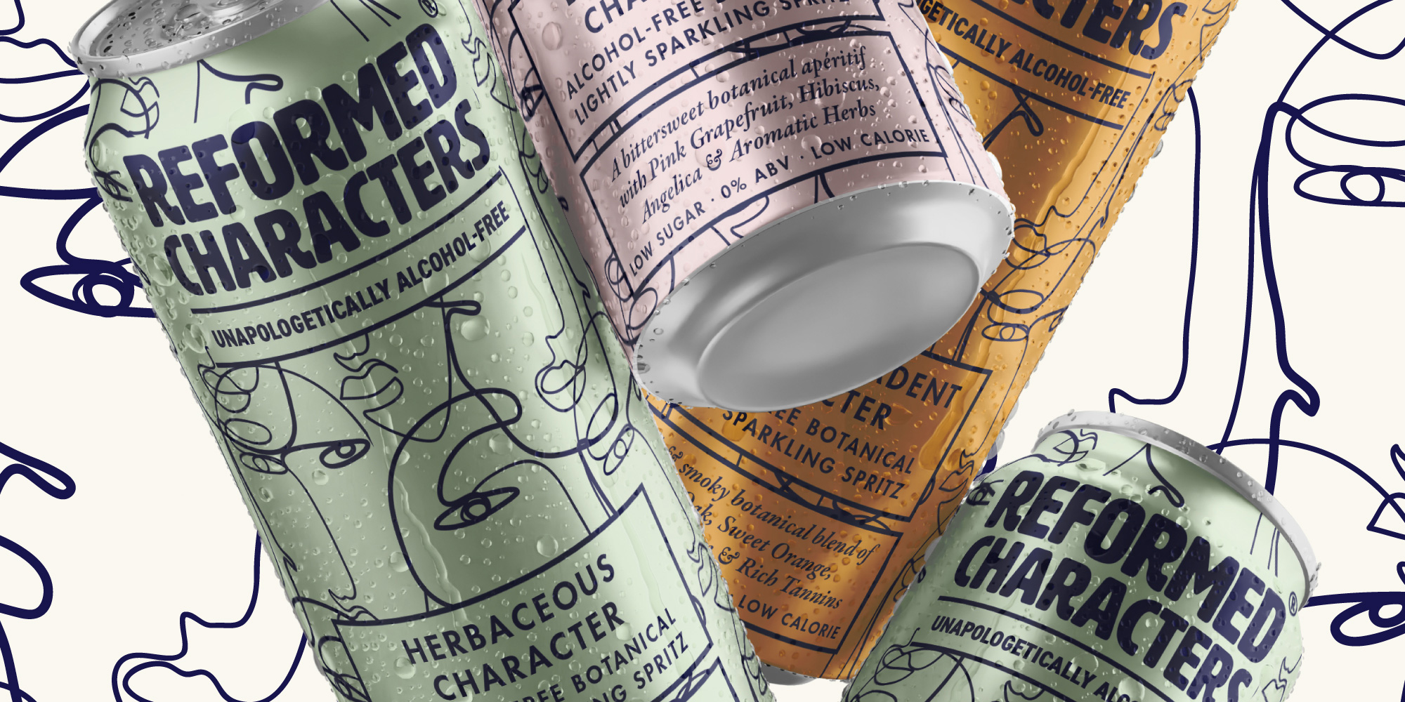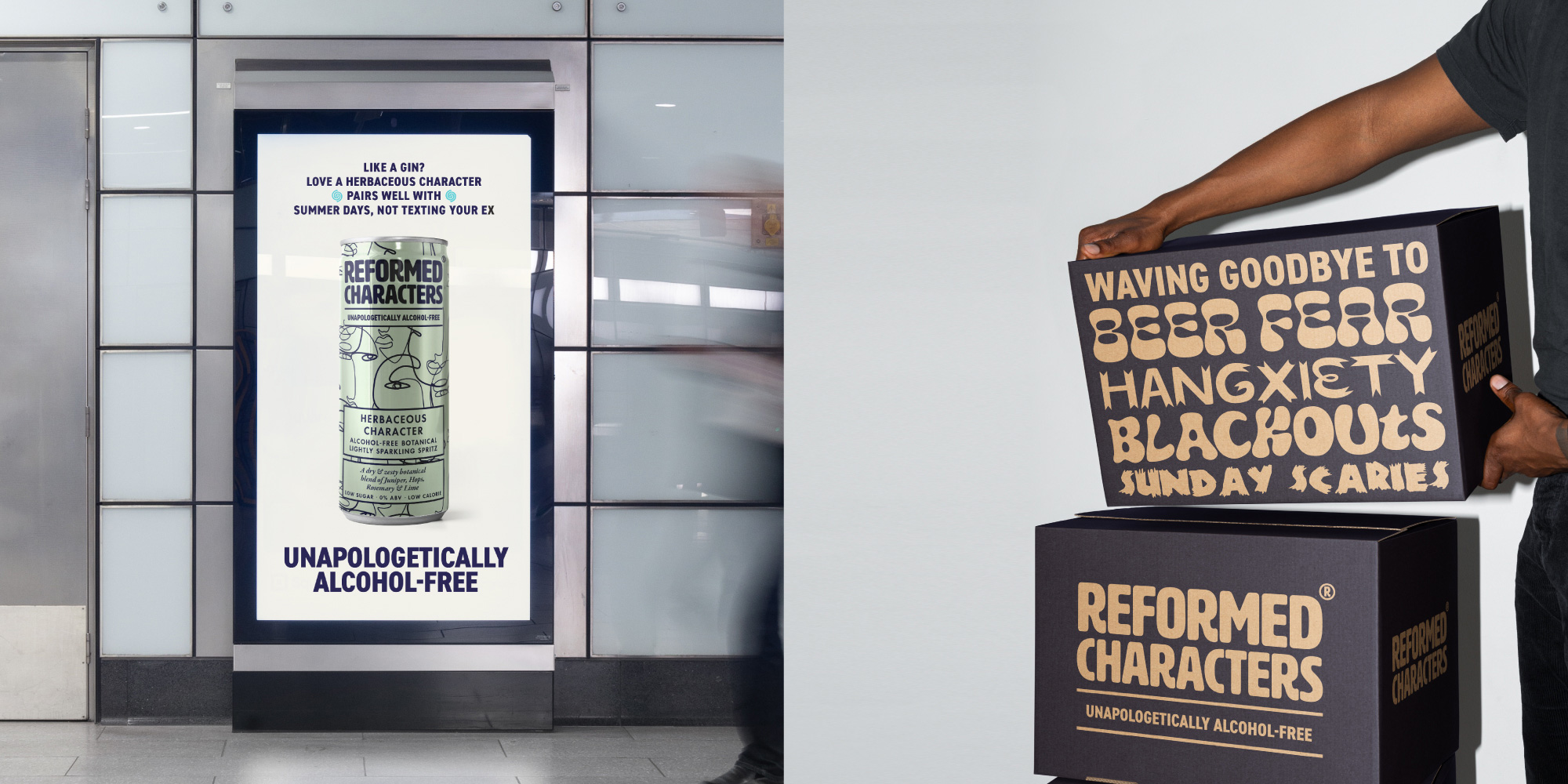 Insight showed that consumers taking a break from booze weren’t looking for moderation – they wanted to keep their edge. This idea of “healthy hedonism” became our foundation. The name Reformed Characters captured both wit and self-awareness, while verbal branding lines like “Unapologetically Alcohol Free” and “All Character, No Compromise” gave the brand its voice.