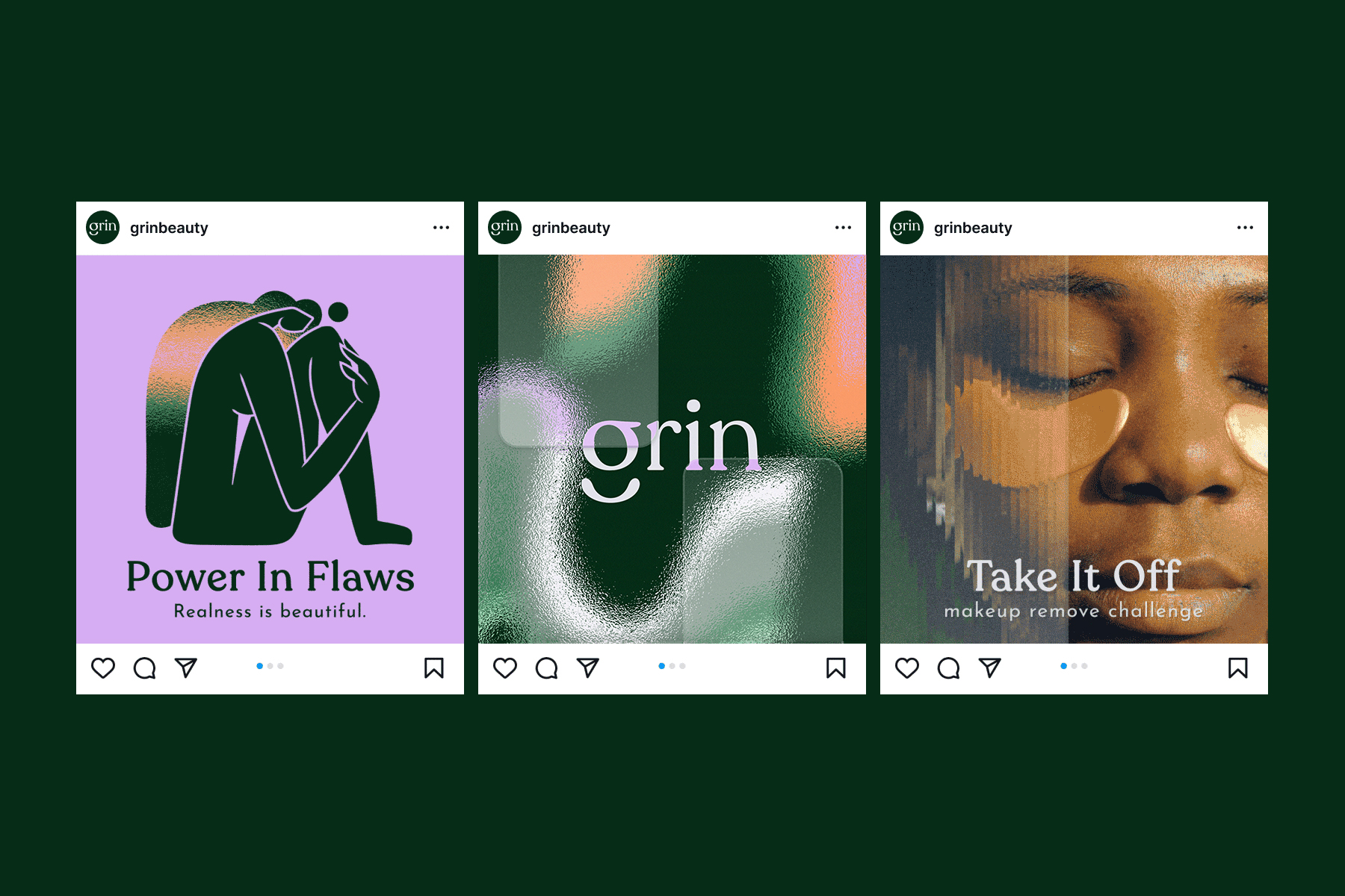 Together, these elements create a cohesive and emotionally resonant brand world that moves the conversation from flaw-concealment to self-worth. Grin Beauty is not just a skincare brand—it is a movement toward embracing real skin, real stories, and real confidence.