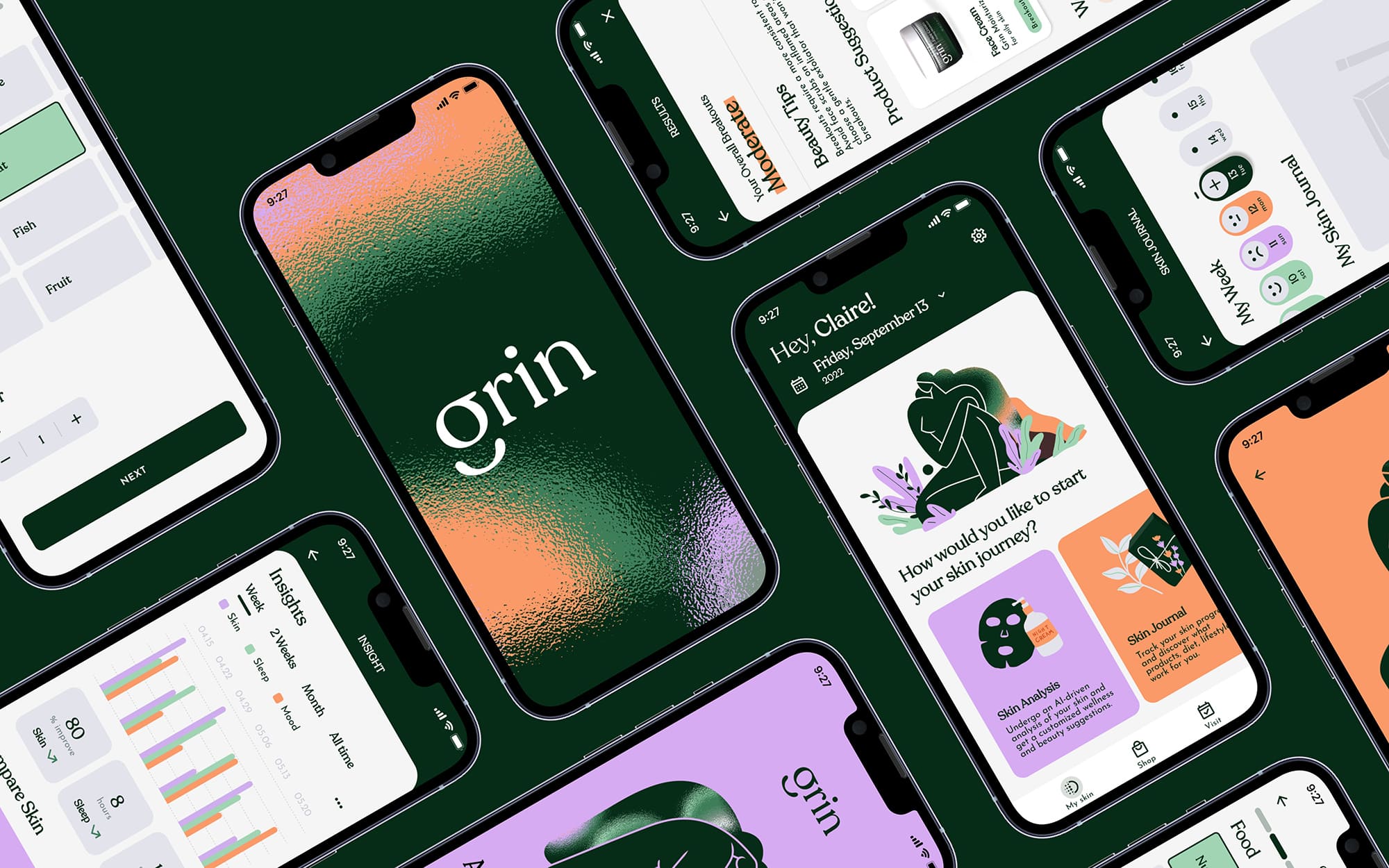 At the core of the brand experience is a skincare mentor app that utilizes facial detection technology to identify real skin conditions such as dryness, acne, dark circles, or enlarged pores. Rather than masking concerns, the platform delivers lifestyle-based guidance encouraging habits like improved hydration, better sleep, and stress reduction. Grin shifts the narrative from instant perfection to long-term wellbeing through daily wellness rituals and self-kindness.