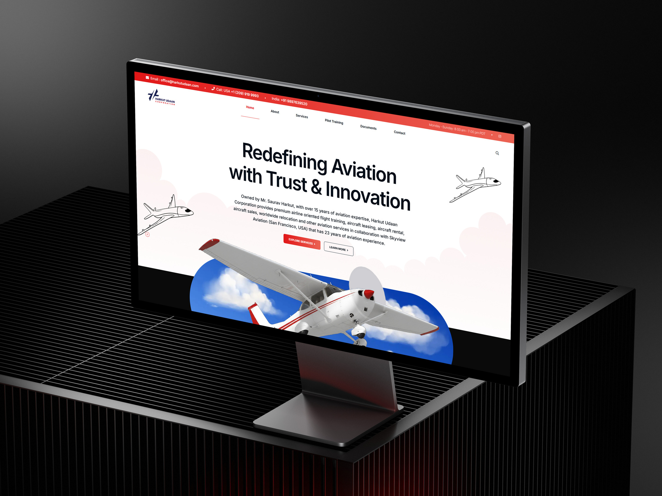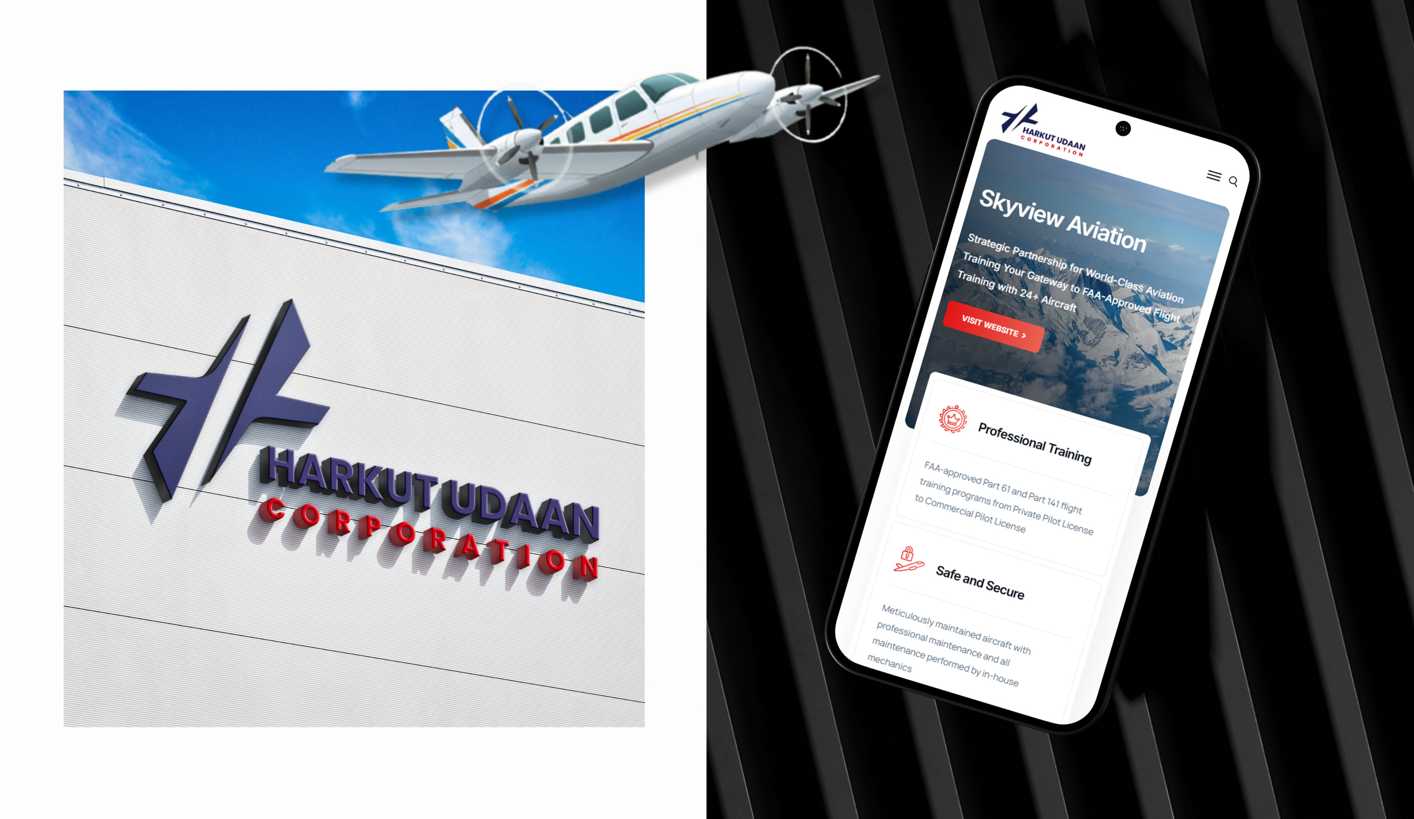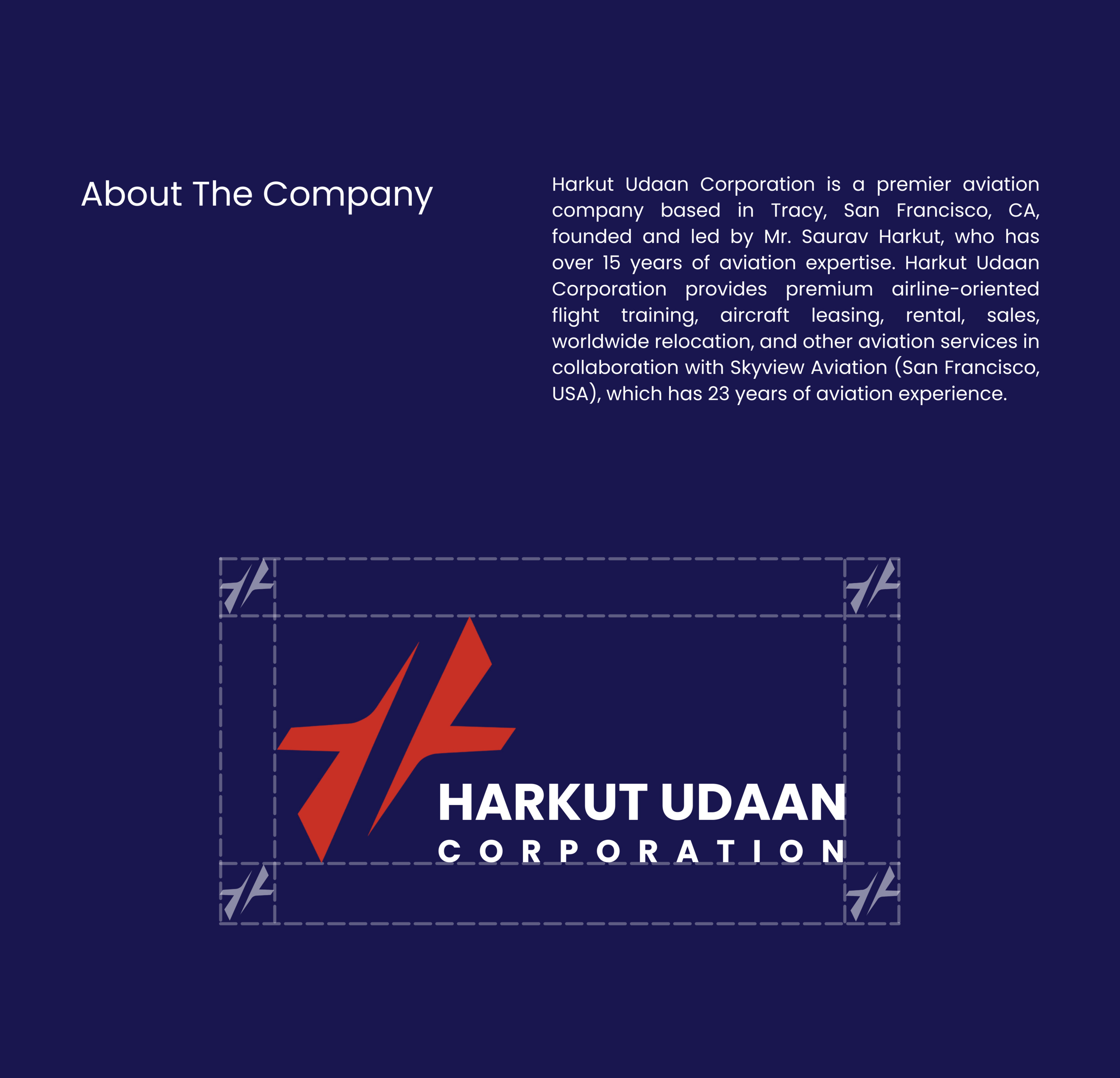 We recently partnered with Harkut Udaan Corporation, a premier aviation company based in Tracy, San Francisco. Boasting over 15 years of specialized expertise and a strategic collaboration with Skyview Aviation—industry veterans with 23+ years of experience—Harkut Udaan represents reliability and excellence. Our mission was to translate this rich legacy into a modernized, forward-thinking visual and digital identity.