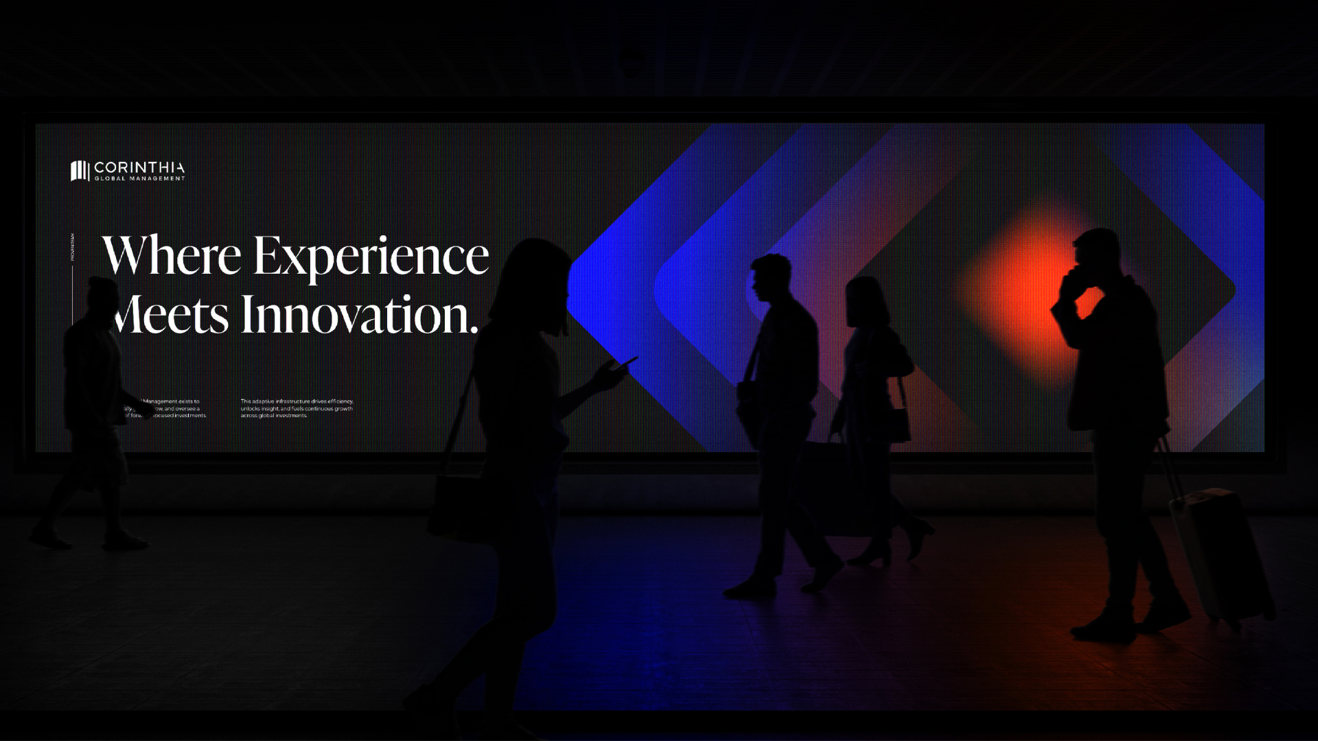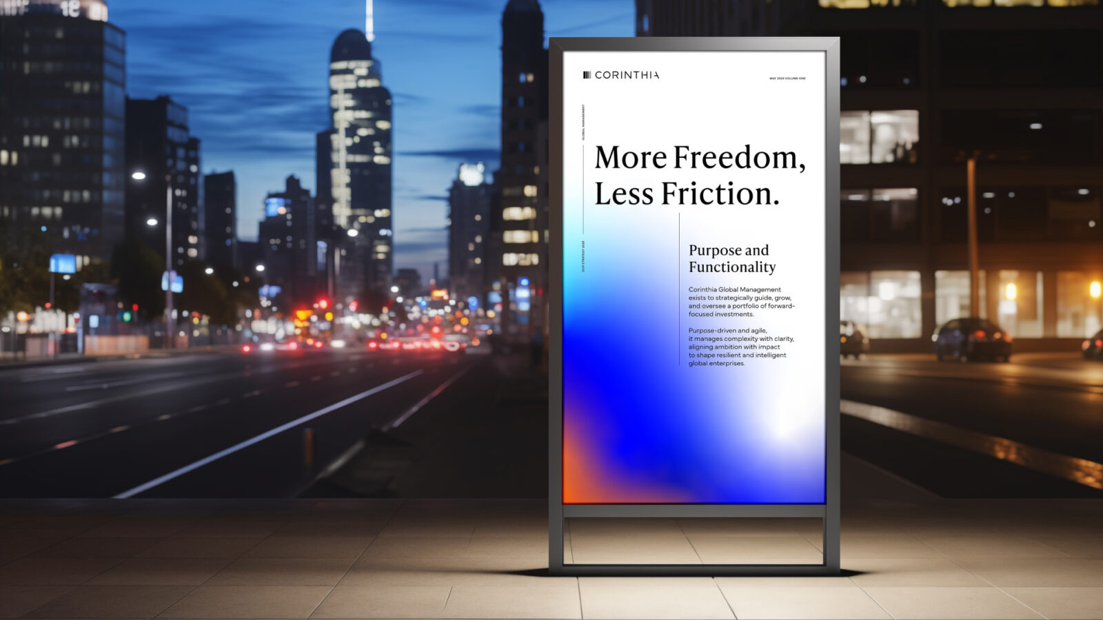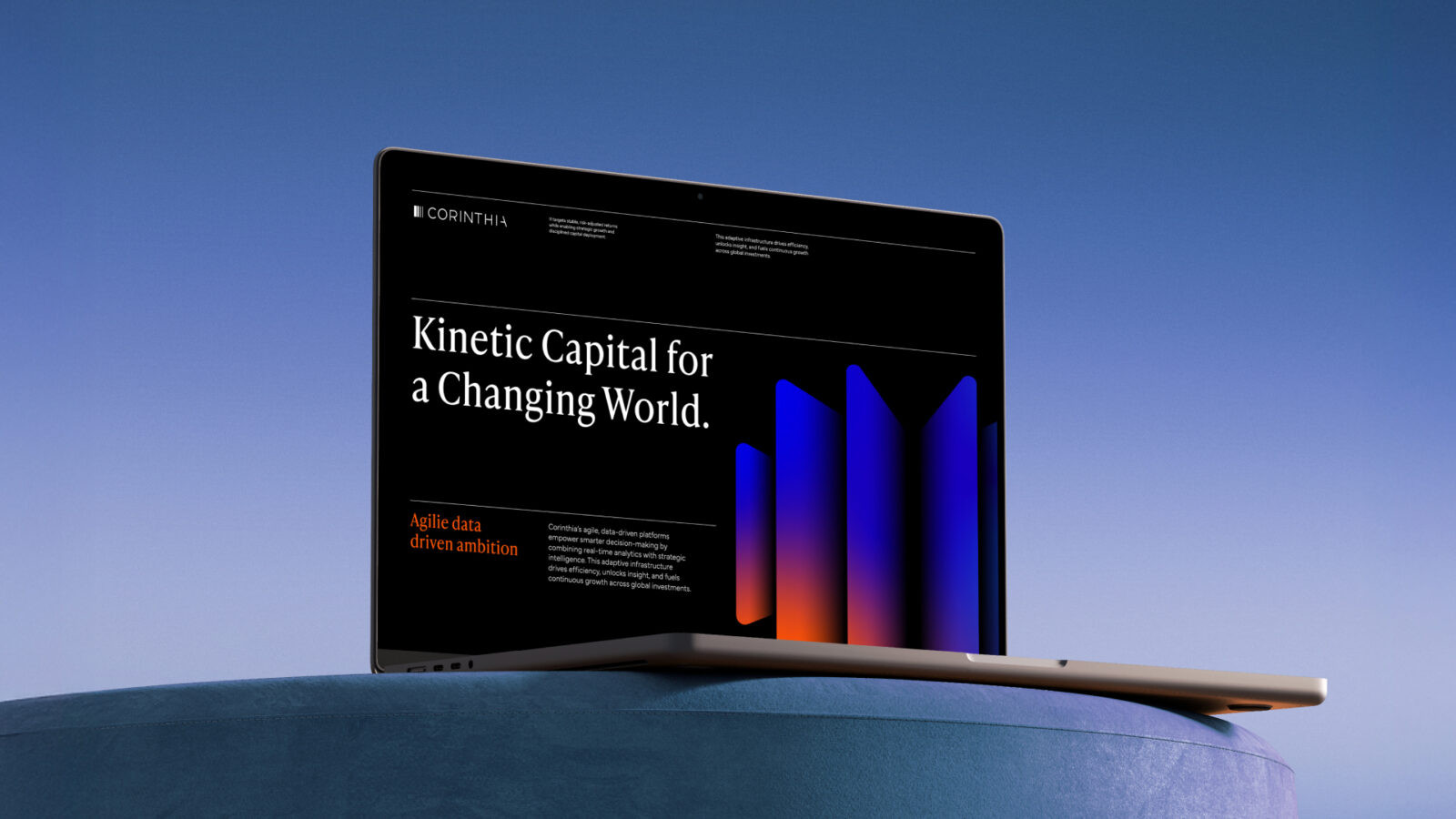 From the strategic framework, the driving idea ‘Kinetic Intelligence’ was born. The idea drove a graphic language that captured energy and momentum. A colour palette rooted in tradition but ramped up for a digital world. A logomark that took the original Corinthian pillar from a two-dimensional shape to one that, through the interplay of light and shade, represented stability in a fluid world. The handcrafted typography creates a unique and modern signature.