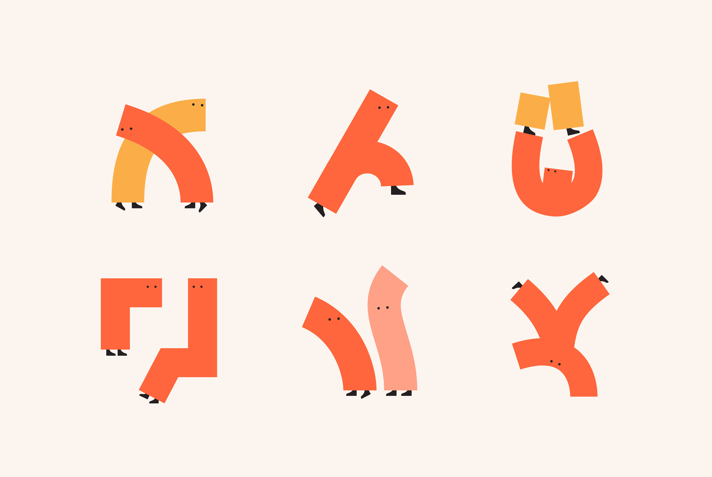 The logo features a bold symbol inspired by the idea of “standing on your toes”, a subtle nod to visibility, growth, and confidence. This metaphor resonates deeply with Gry’s services, which help people find their voice, become better communicators, and emerge as authentic leaders. Expanding from this idea, I developed a bespoke suite of over 20 playful illustrations. Each character is born from the logo shape, personified into scenes of interaction, growth, conflict or collaboration. They add warmth and humanity to the brand, making abstract leadership concepts more accessible and memorable.