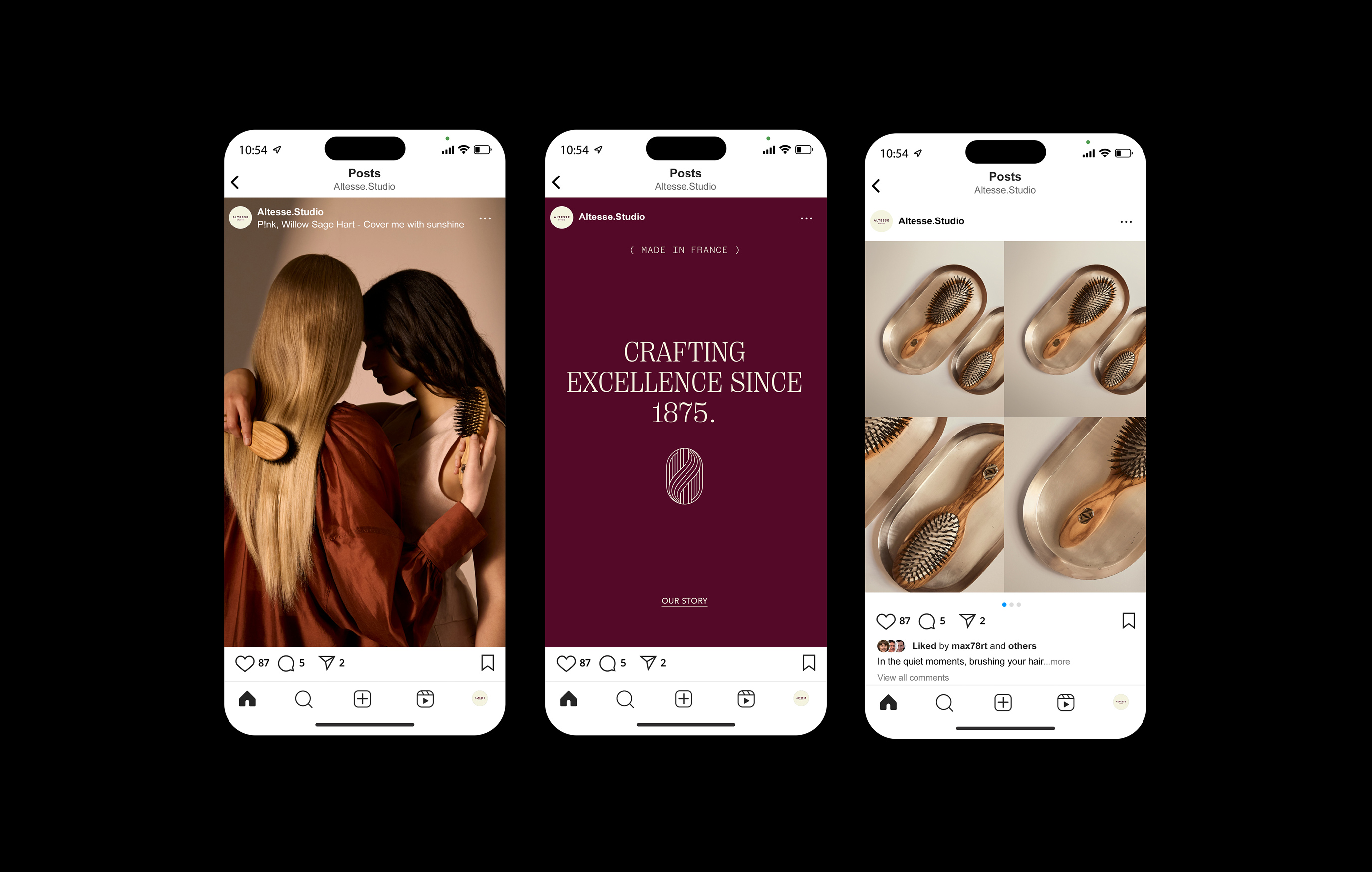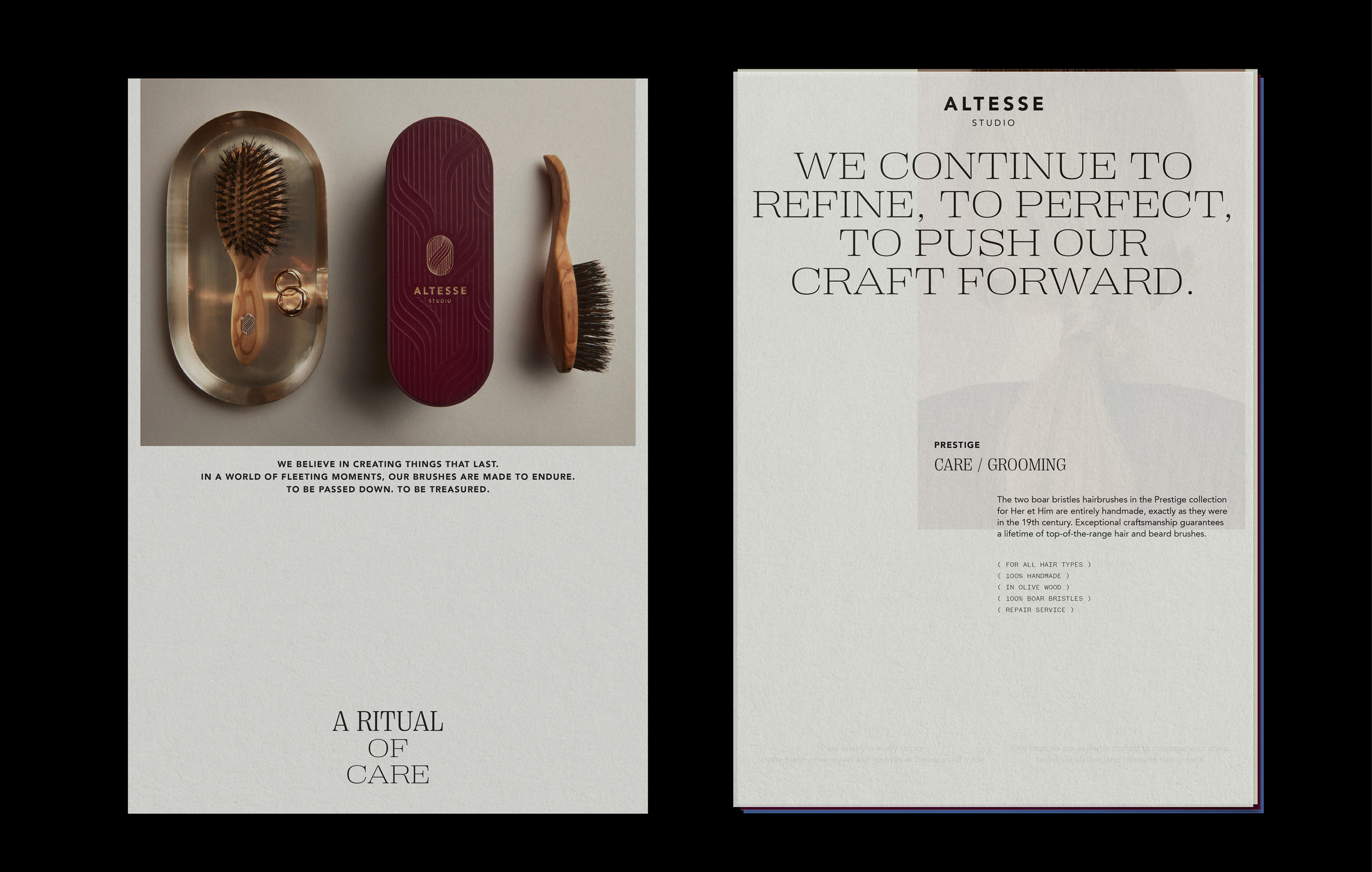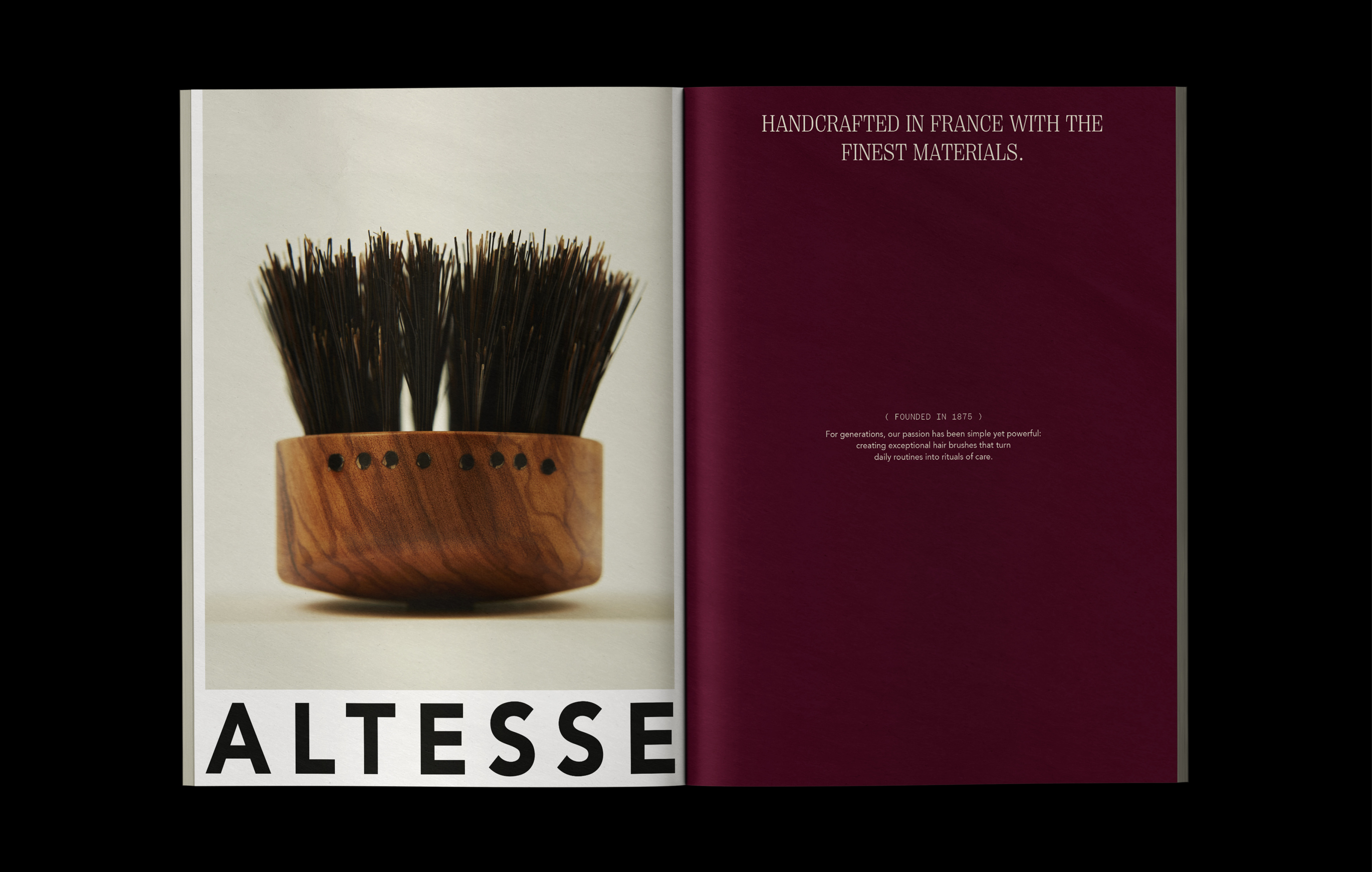 In 2025, Voodoo Voodoo partnered with Altesse Studio, a Living Heritage Company founded in 1875 and known for French artisanal brushmaking. Following the launch of Altesse Studio in 2022 and its two lead collections — Prestige, a handmade luxury line, and Beauté, a premium performance range — Voodoo Voodoo was brought in to create a cohesive foundation that could unify the collections and balance heritage with a modern perspective.