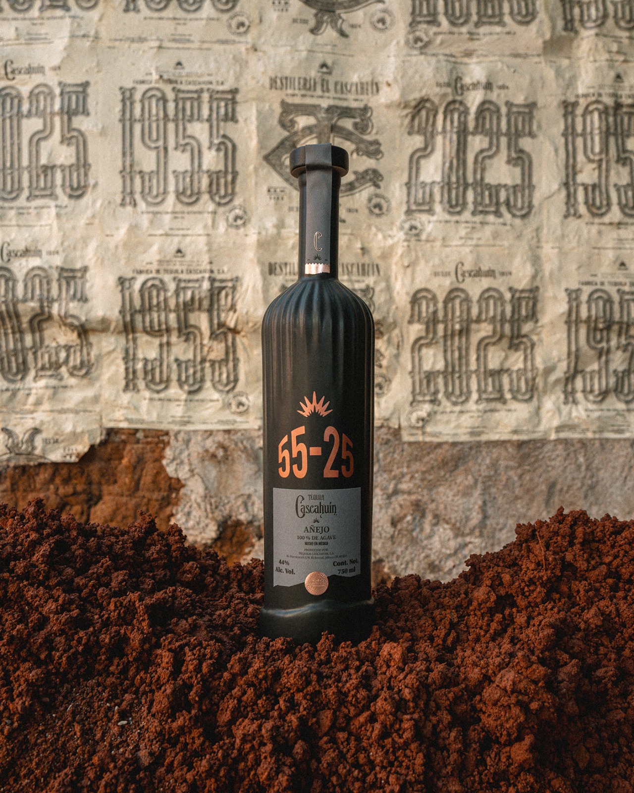 55-25 is a special edition created to commemorate the 70th anniversary of the Tequila Cascahuín distillery. More than a bottle, it is a statement piece—an object conceived to honor the land, the people who shape it, and the passage of time that defines authentic tequila. Every design decision reflects respect for origin, process, and legacy.