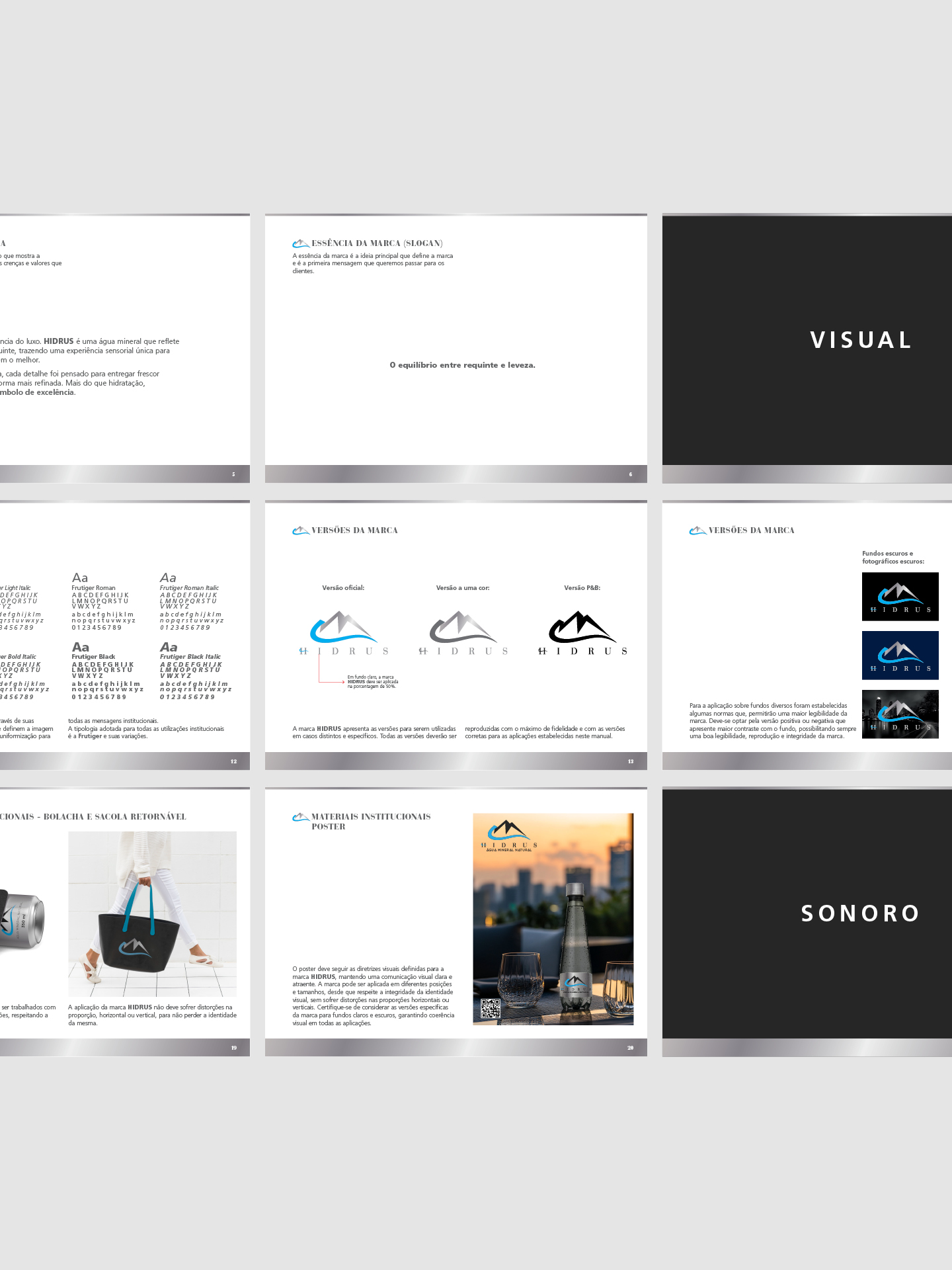 The result is a solid and flexible identity, ready to be applied across packaging, institutional materials, and brand experiences, strengthening HIDRUS positioning within the premium mineral water segment.