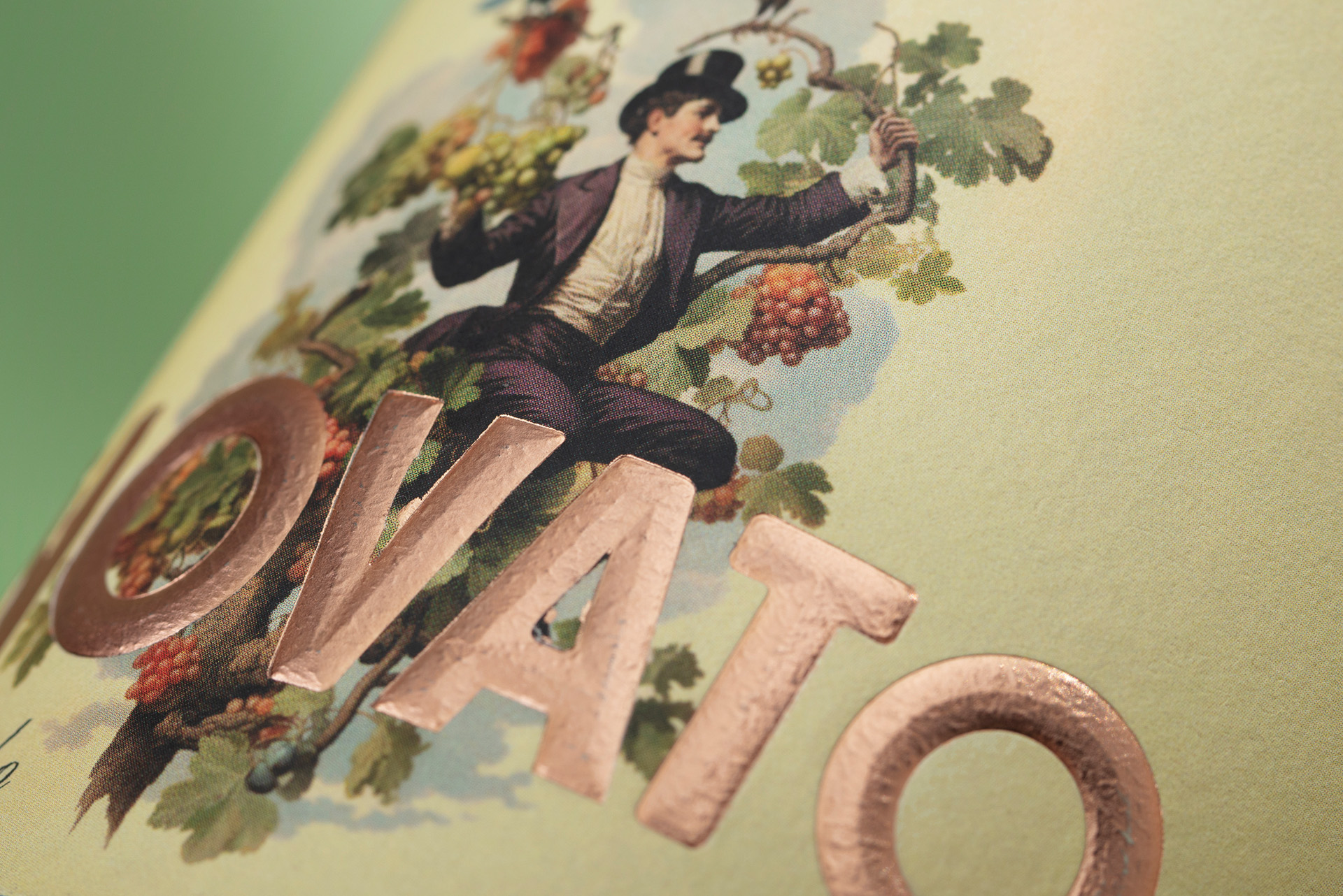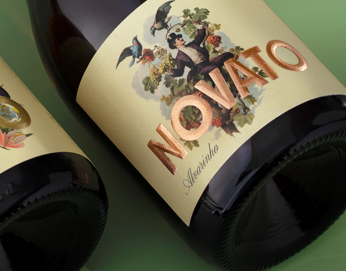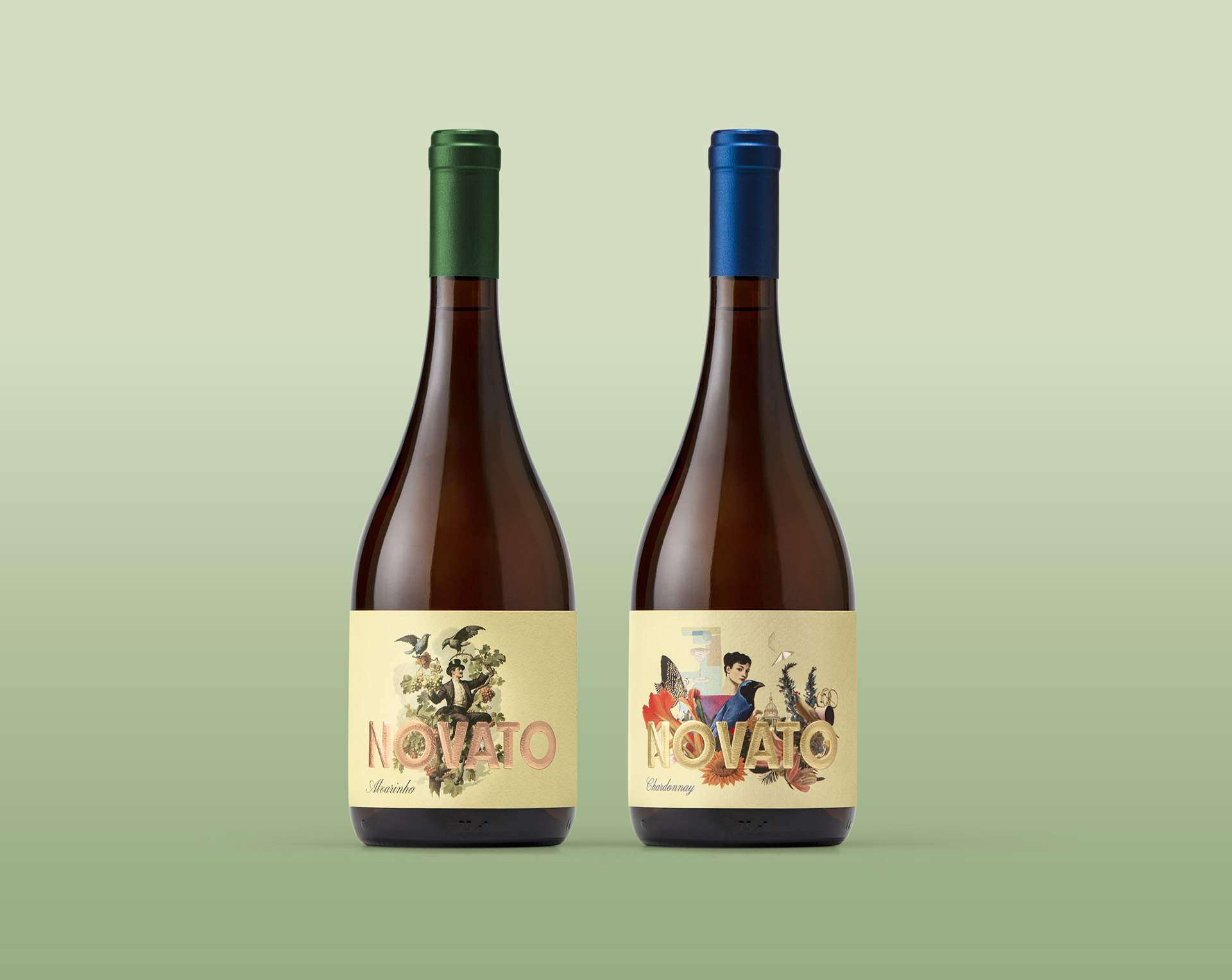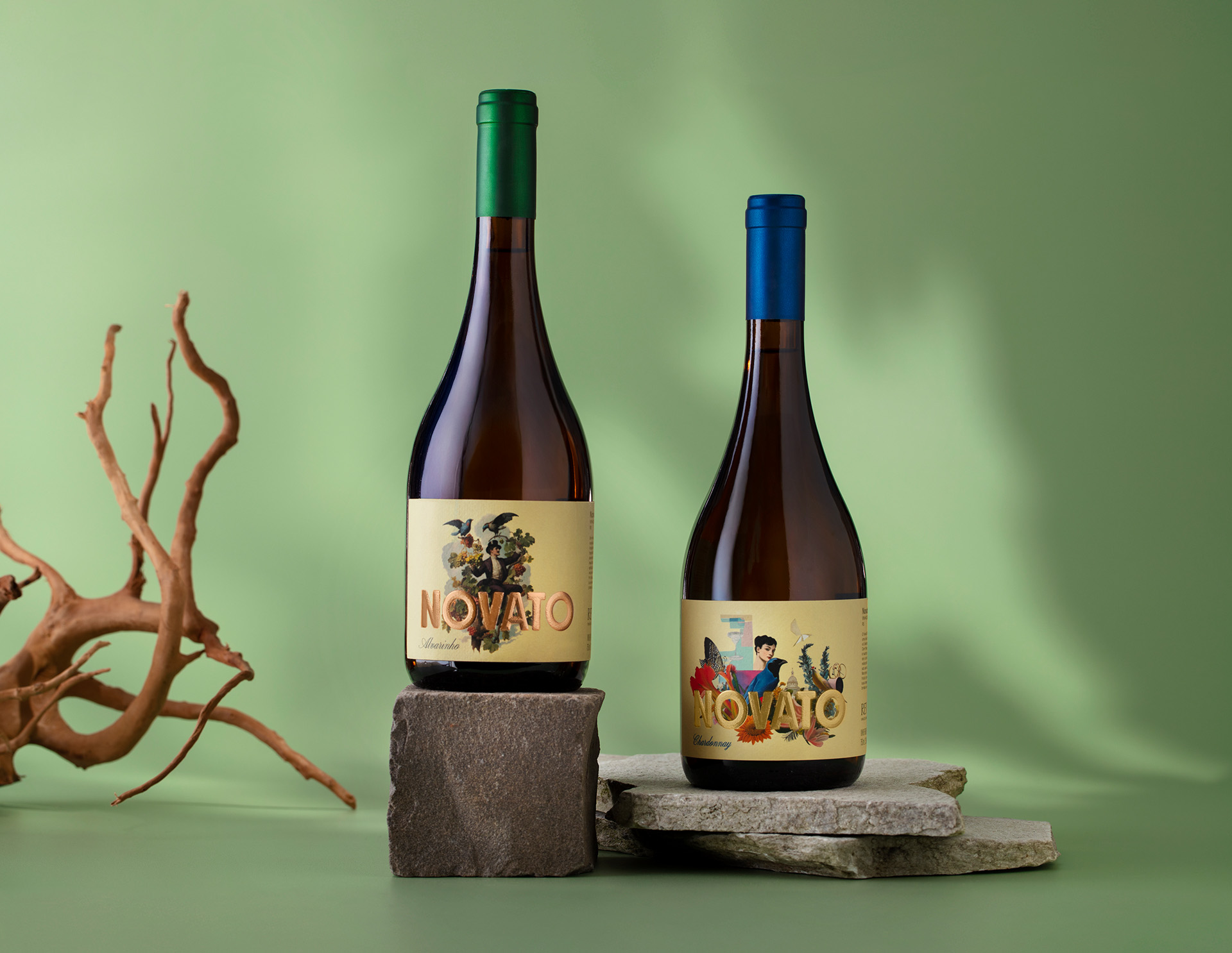 The visual identity and label were created to translate this mindset into imagery. The illustration evokes a sense of wonder that feels almost magical, portraying a character rooted in classic wine culture and Old World references, yet reinterpreted through a contemporary and irreverent lens. Tradition is present, but gently displaced, creating a visual dialogue where heritage and modernity coexist without hierarchy. This tension reflects the essence of Novato, where respect for the past does not limit reinterpretation.