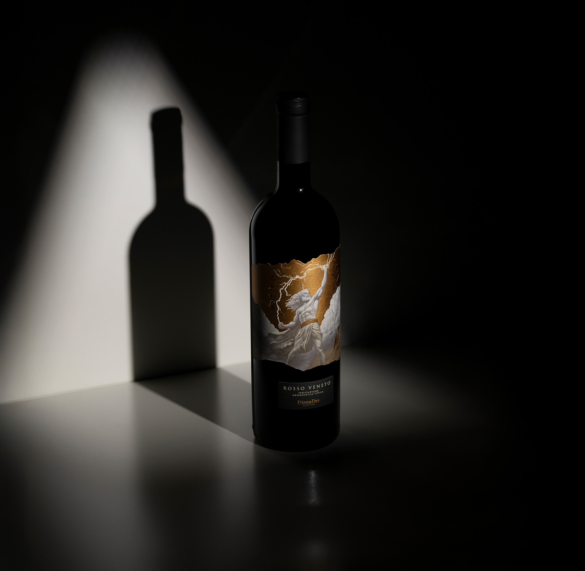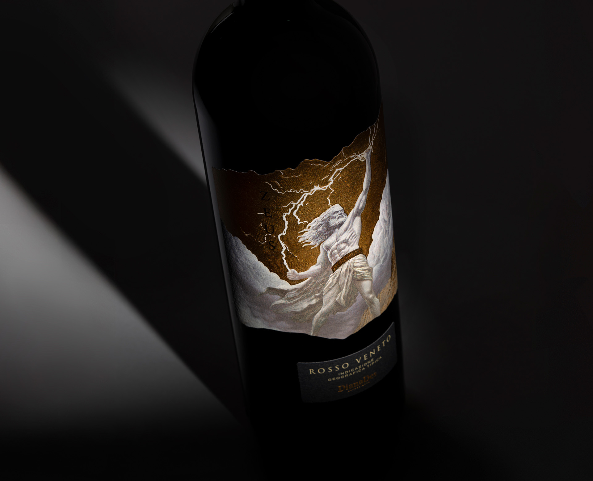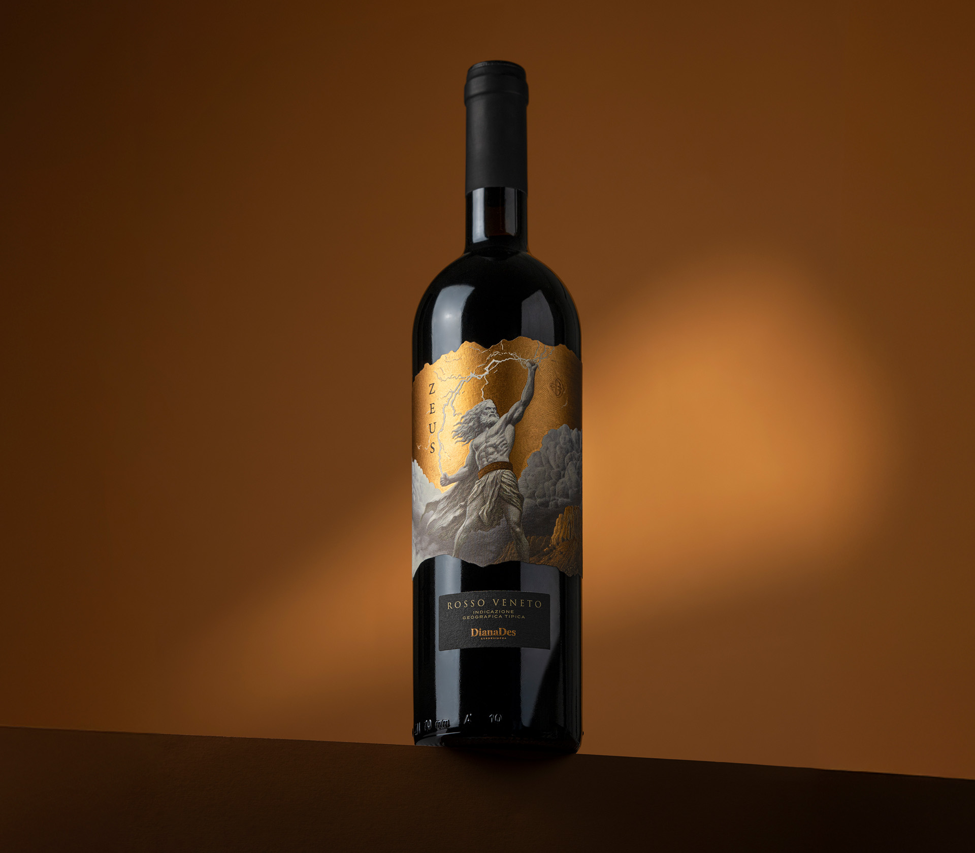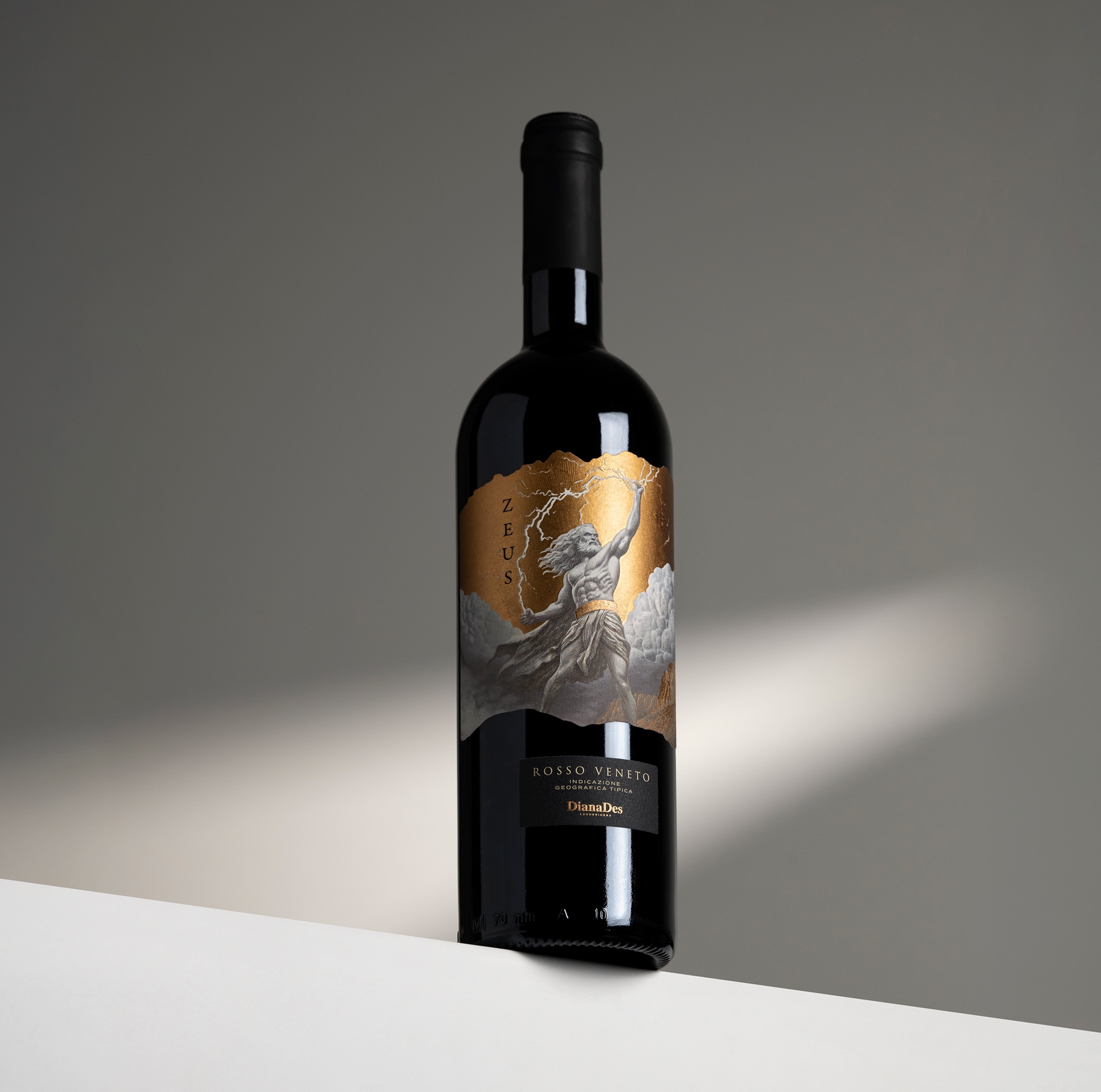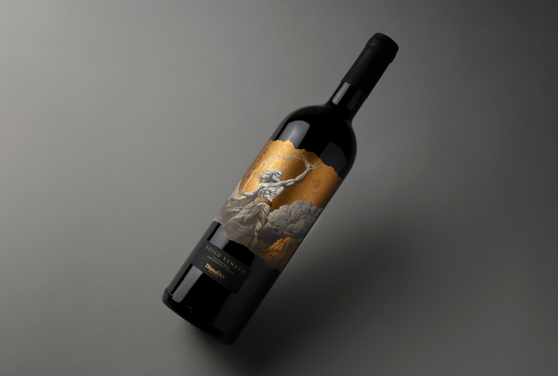 Zeus Rosso Veneto by Diana Des is a bold red wine from the Veneto region of Italy, inspired by the supreme god of Mount Olympus. The concept channels intensity, dominance and untamed energy into a striking physical presence, designed to command attention and create immediate impact on the shelf.