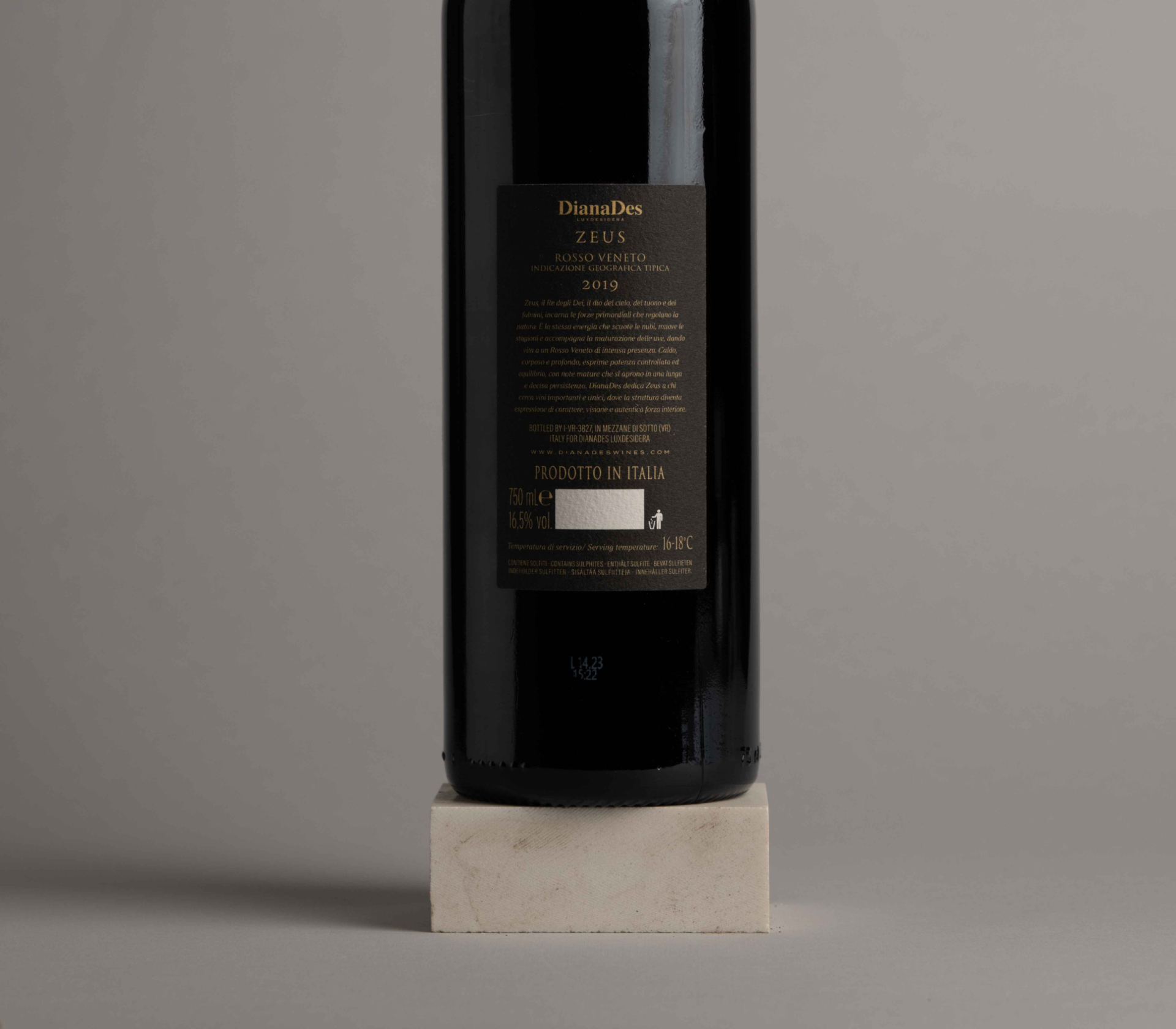 Aligned with Diana Des’ pursuit of craftsmanship, authenticity and exclusivity, Zeus is conceived as a statement object. It does not simply communicate a product, but establishes a presence, transforming the bottle into a memorable and collectible artifact that engages both visually and physically, reinforcing its positioning as a premium and distinctive wine.