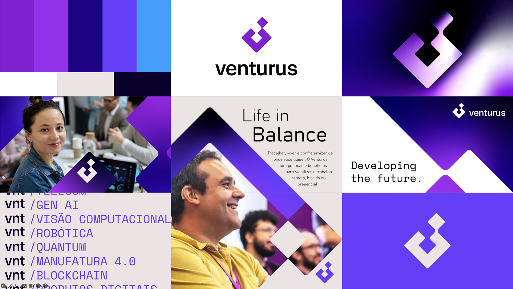 Thus, led by Vinicius Santos (Creative Visual Lead) and Hanna Teixeira (Visual Designer), a deep and complex project was born: the Venturus 2025 Rebranding.