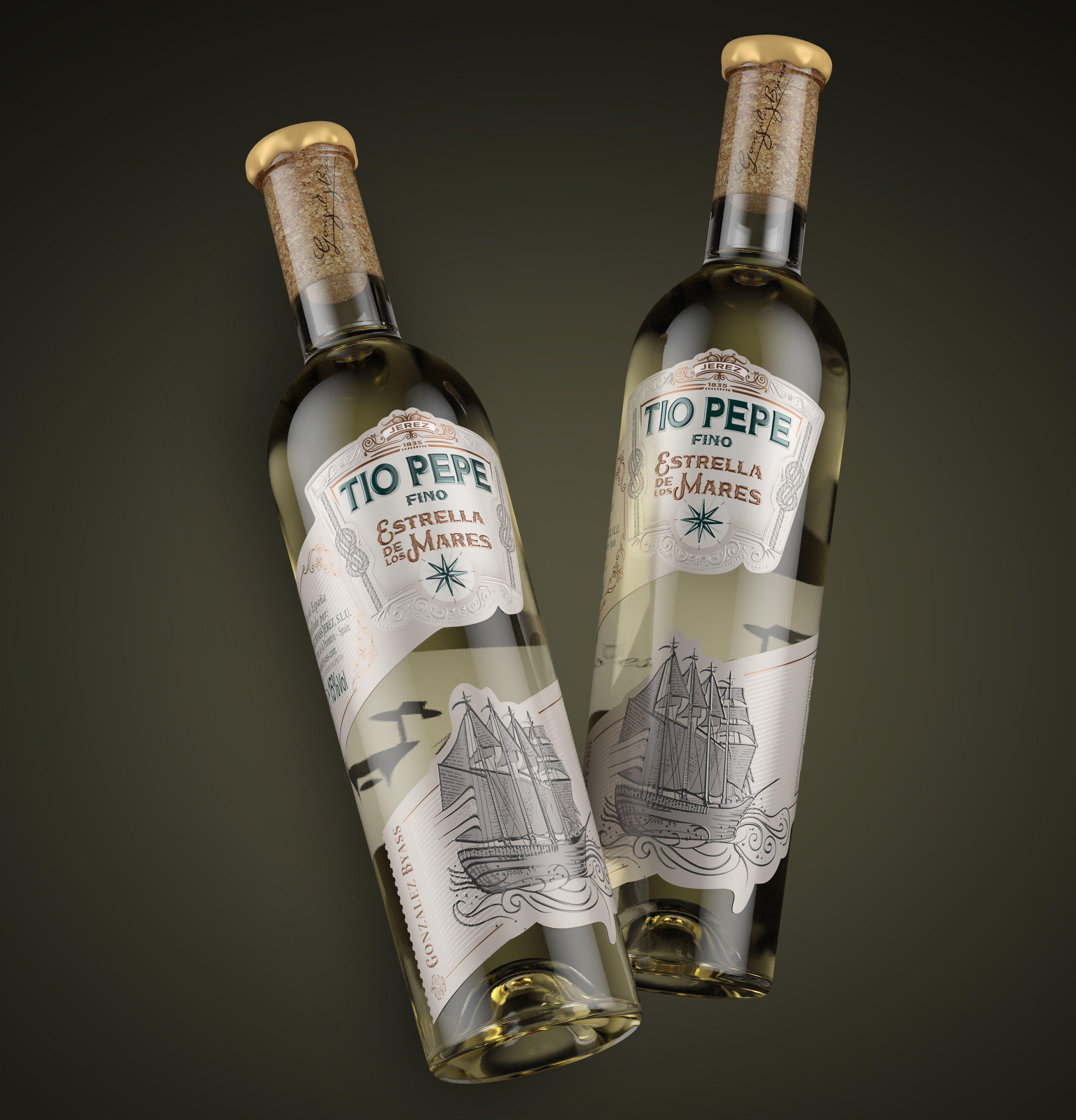 The visual identity of Tío Pepe Estrella de los Mares is conceived as a graphic system rooted in heritage, not as a nostalgic revival. The project translates historical references into a contemporary packaging language while preserving the authority and recognisability of the Tío Pepe universe.
