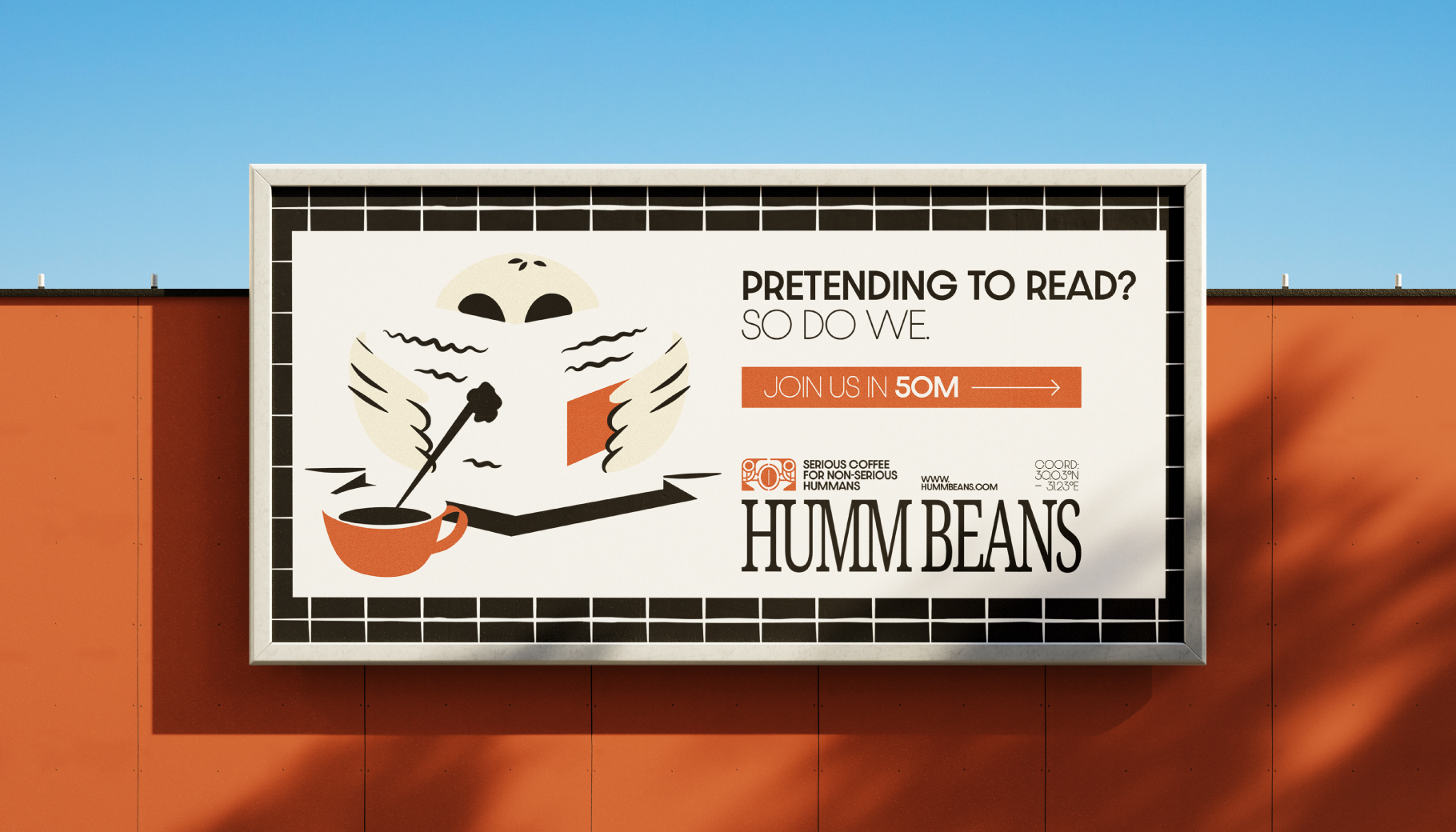 HUMM BEANS is a coffee brand created for creatives and freelancers who spend long hours thinking, working, overthinking, and trying to meet deadlines they may or may not be avoiding. At its core, the brand exists to offer two essential things: serious coffee and a convenient, well-considered space that helps people actually sit down and get their work done.