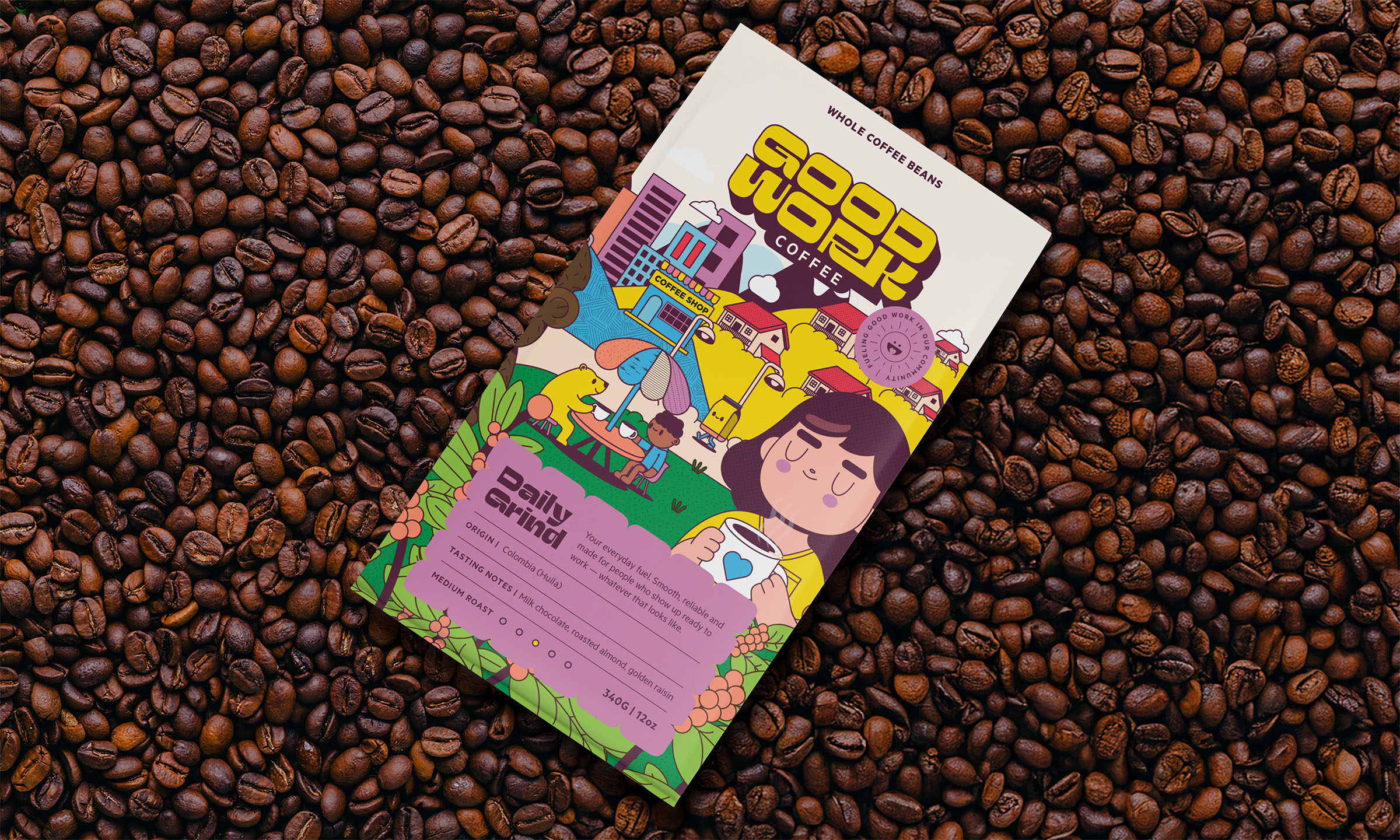 Good Work Coffee invites consumers to make a difference with their everyday coffee purchases, including retail coffee beans. Every bag purchased helps fund initiatives that support the development and well-being of community workers. Each bag depicts a thriving community where locals engage with each other and honor the unique story behind every coffee’s country of origin—as ethical coffee consumption should be.