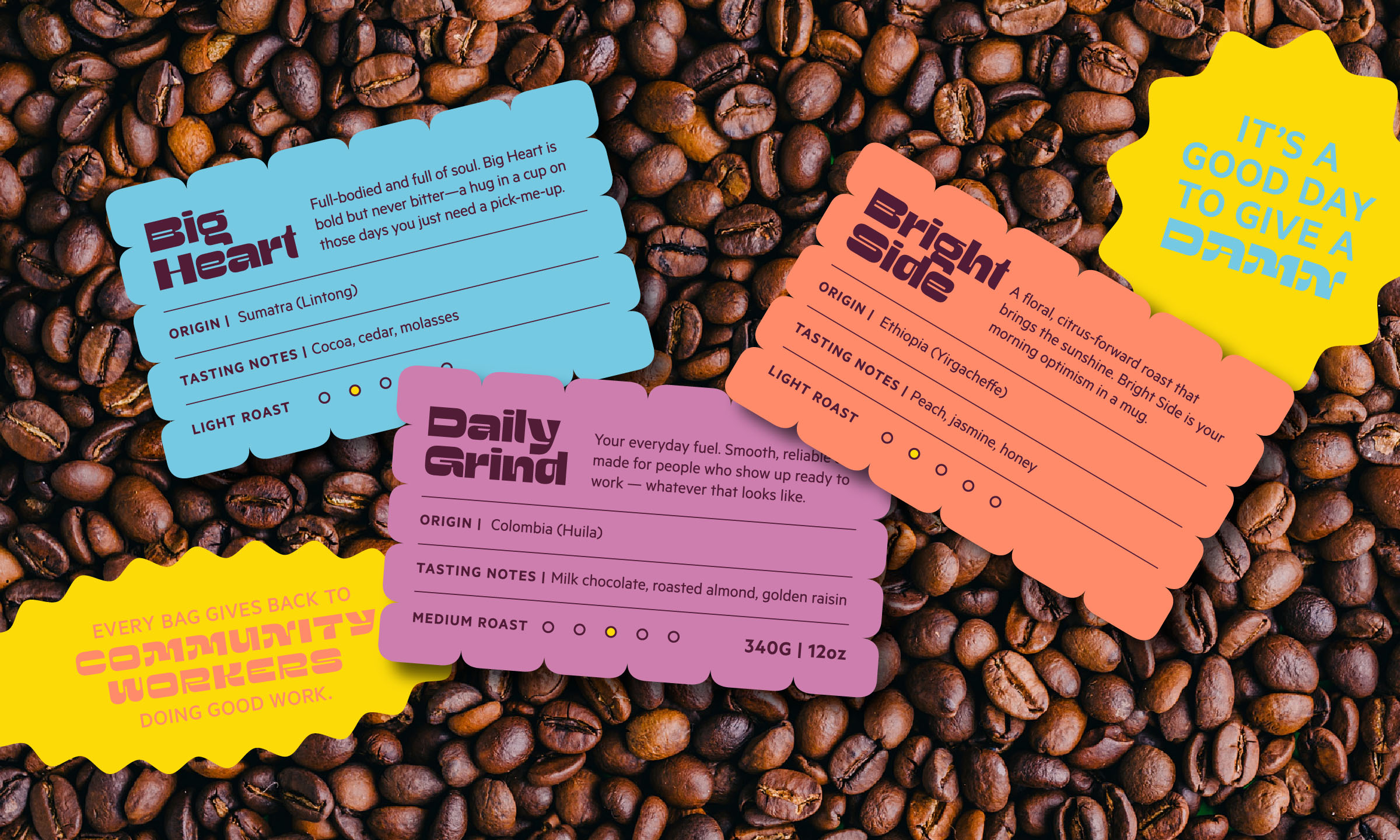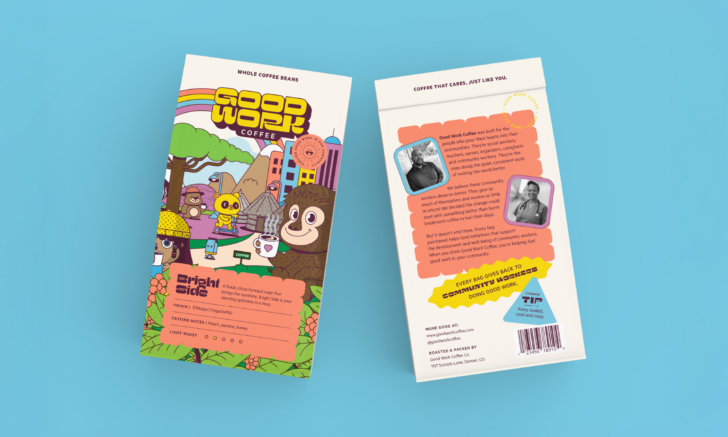 Good Work Coffee believes community workers deserve better starting with something better than burnt breakroom coffee to fuel their days. A brand concept built on advocacy for people who give so much of themselves and receive so little in return, Imaginaria Creative made GWC’s brand identity reflect the positive, feel-good vibes community workers need to foster belonging and fuel their important, challenging work.