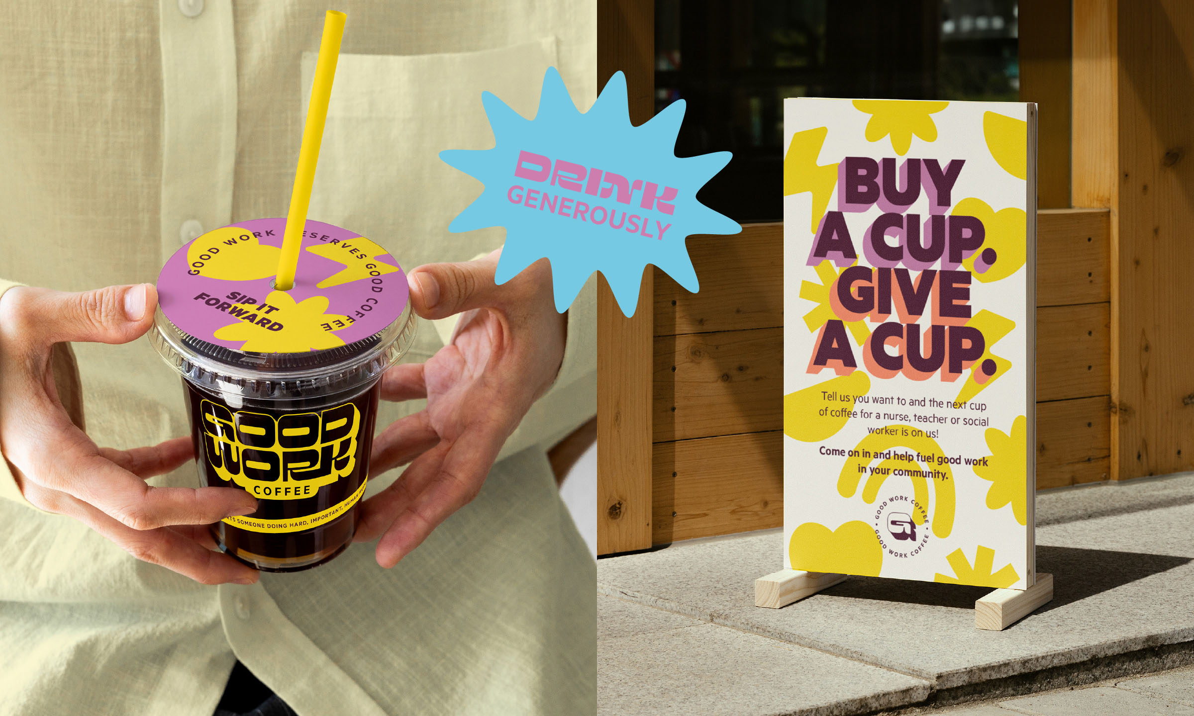 We inserted ways for the community to get involved in GWC’s mission across every brand touchpoint. From the “Buy a cup. Give a cup.” sidewalk sign to the do-gooder of the month award, community members who recognize the good work done by their community workers can show their gratitude and pay it forward any time they drop in for their daily dose of caffeine.