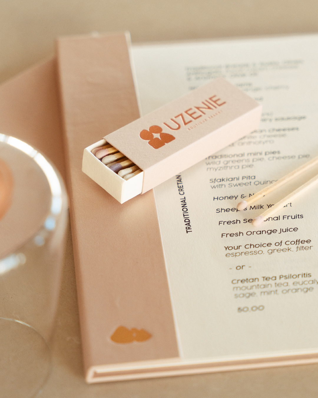 We started with an intention. In the heart of Crete, a boutique resort was envisioned to embrace nature, stillness, and the art of presence. When the time came to name it, we chose Uzenie, derived from Eugénie, the founders’ daughter, and resonating with the Greek word eugeneia, meaning grace, nobility, and kindness. A name that carries both legacy and elegance. To shape the brand, we searched for what truly defines it. The answer was not architectural but elemental. Nature in Crete is not a backdrop; it is the protagonist, and its raw, sculptural presence became the foundation of the identity. Each natural element was distilled into geometry, forming a system where four forces converge into a single symbol. Earth and Water represent fertility and grounding; Fire and Air symbolize ignition and breath. These dualities reflect more than nature. They express presence: one grounded, one fluid; one igniting, one breathing. Together, they echo the quiet harmony of a couple, a subtle nod to Uzenie’s adult-only character. As the resort unfolds, its identity expands with it. Each space draws from the same elemental DNA yet expresses its own tone through a dedicated name and symbol. Water and Earth form Lithos, the spa; calm, sculpted, balanced. Earth becomes Atlas, the gym; strength, stability, foundation. Earth and Fire shape Keras, the main restaurant; creation, nourishment, transformation. Air and Water define Panoptis, the à la carte restaurant; vision, clarity, elevation. Custom typography, natural textures, and minimal organic geometry complete a system that feels both ancient and contemporary, grounded in the Cretan landscape and designed to be lived, not just seen. Uzenie is not simply a destination; it is a crafted experience shaped by nature and refined by design.