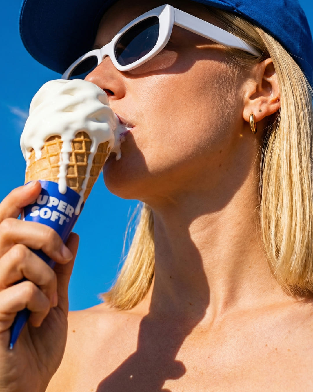 Super Soft was created from a bold question: how can a guilty pleasure become a daily ritual? Positioned as Brazil’s first protein soft serve, the brand introduces a new dessert category that combines superfoods, zero sugar, high protein content, and a creamy texture designed to fit naturally into a healthy lifestyle. Instead of being an occasional indulgence, Super Soft was built to become part of everyday routines — a dessert that supports performance, balance, and well-being. In a crowded market of “fit” ice creams, gelatos, and açaís, the strategy focused on reframing soft serve — traditionally seen as a sugary villain — into a hero. By embracing the hero archetype, the brand transforms dessert into a symbol of energy, strength, and empowerment. The narrative shifts the conversation from guilt to power, positioning the product not as a compromise, but as an evolution. Dessert is no longer something to justify; it becomes a smart, confident choice. From naming and brand storytelling to visual identity and tone of voice, every element reinforces this positioning. The name “Super Soft” reflects both the iconic creamy texture and its enhanced, functional qualities. The lightning bolt logo replaces the traditional cone, signaling dessert-powered energy and breaking category expectations. A bold blue color palette contrasts sharply with the pastel tones common in frozen desserts, helping the brand stand out while communicating freshness and modernity.Dynamic illustrations depict everyday moments when people need an energy boost — before workouts, between meetings, during study sessions, or as a better-for-you dessert option. Lactose-free, gluten-free, and sugar-free, Super Soft is designed to be fun, functional, and inclusive. More than a product, it represents a mindset: indulgence and performance coexisting in one powerful, lifestyle-driven experience. From naming and narrative to visual identity and tone of voice, every element reinforces this positioning. The lightning bolt logo replaces the traditional cone, signaling dessert-powered energy, while a bold blue color palette breaks away from the pastel tones typical of the frozen dessert category. Dynamic illustrations highlight everyday moments when people need an energy boost — before workouts, between meetings, or as a smarter after-dinner choice. Lactose-free, gluten-free, and sugar-free, Super Soft is designed to be fun, functional, and inclusive, turning dessert into a symbol of balance and modern living.