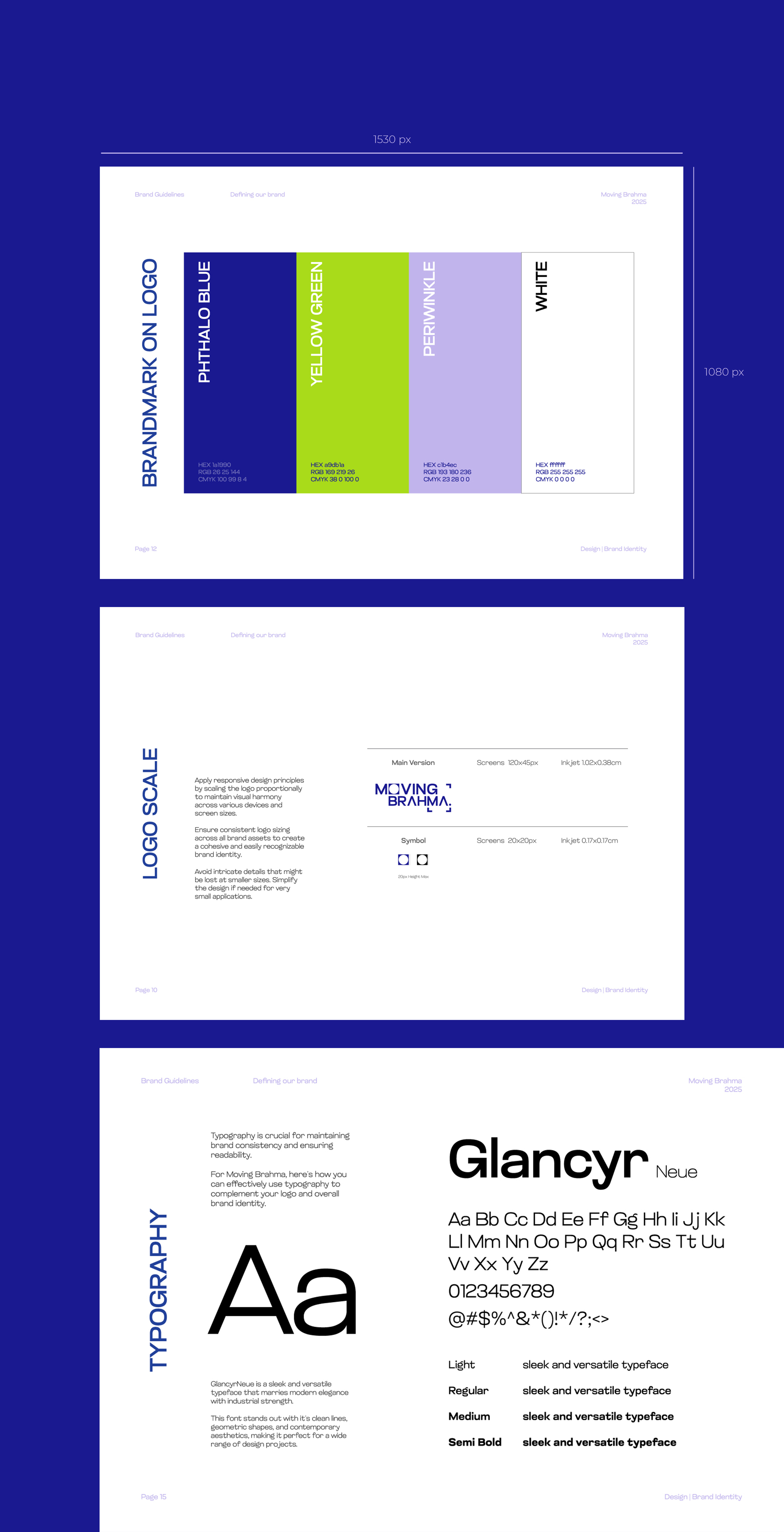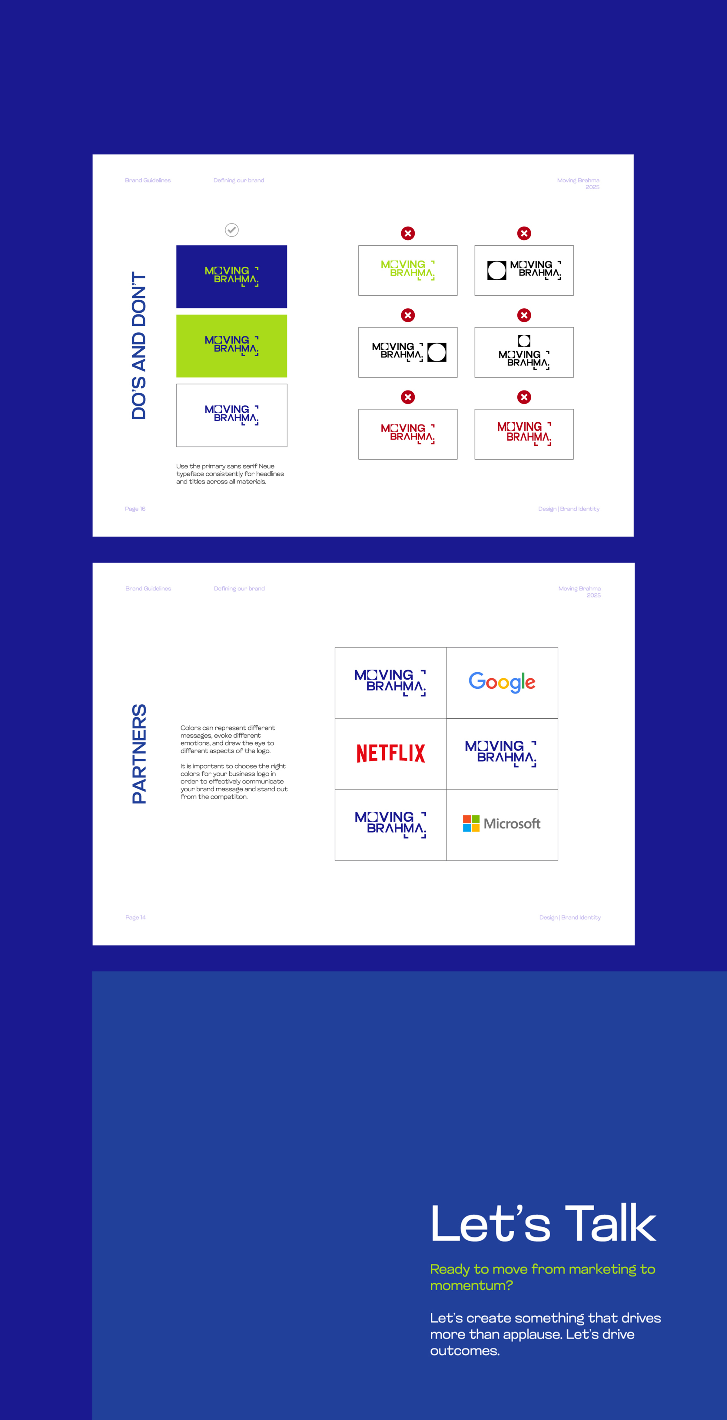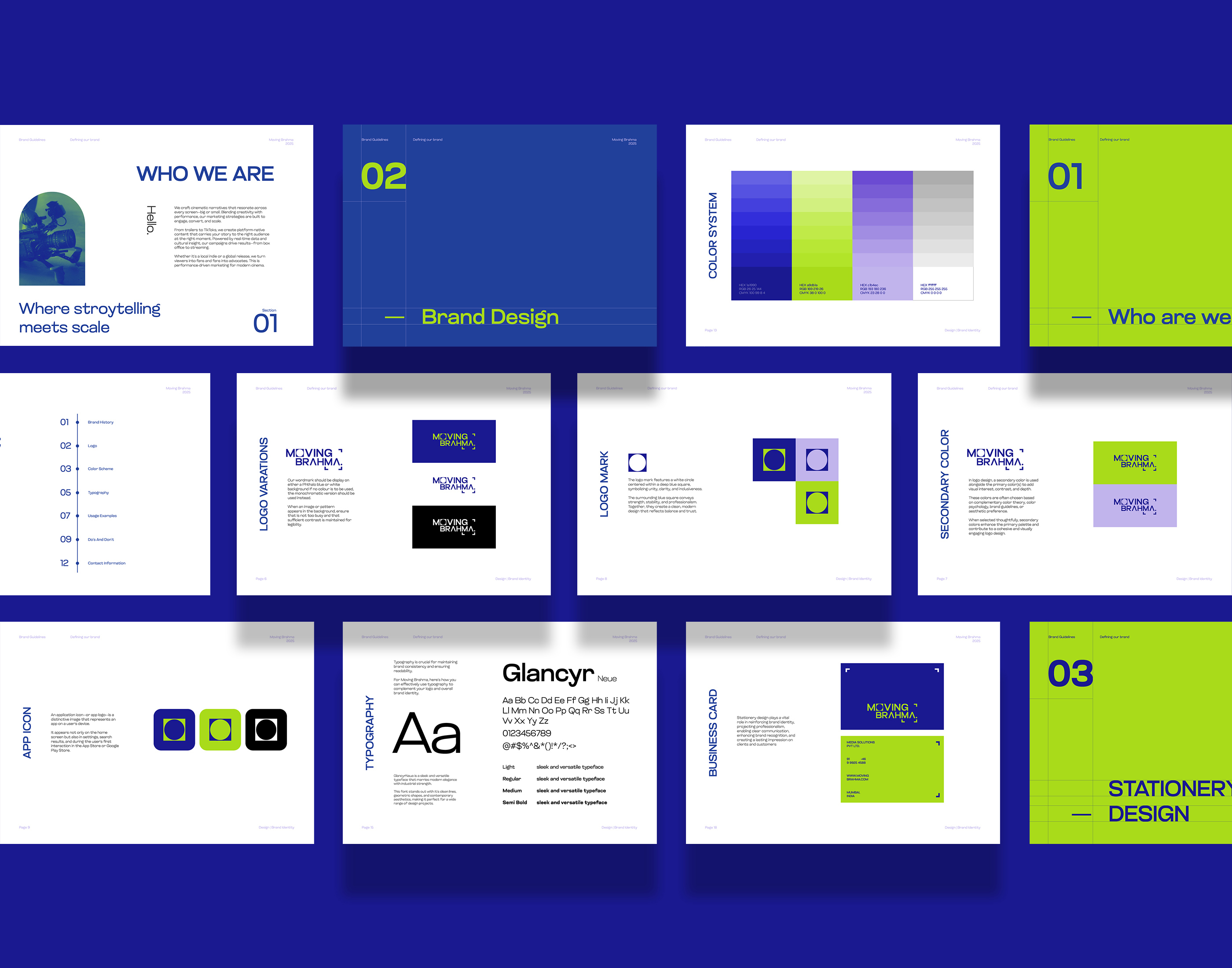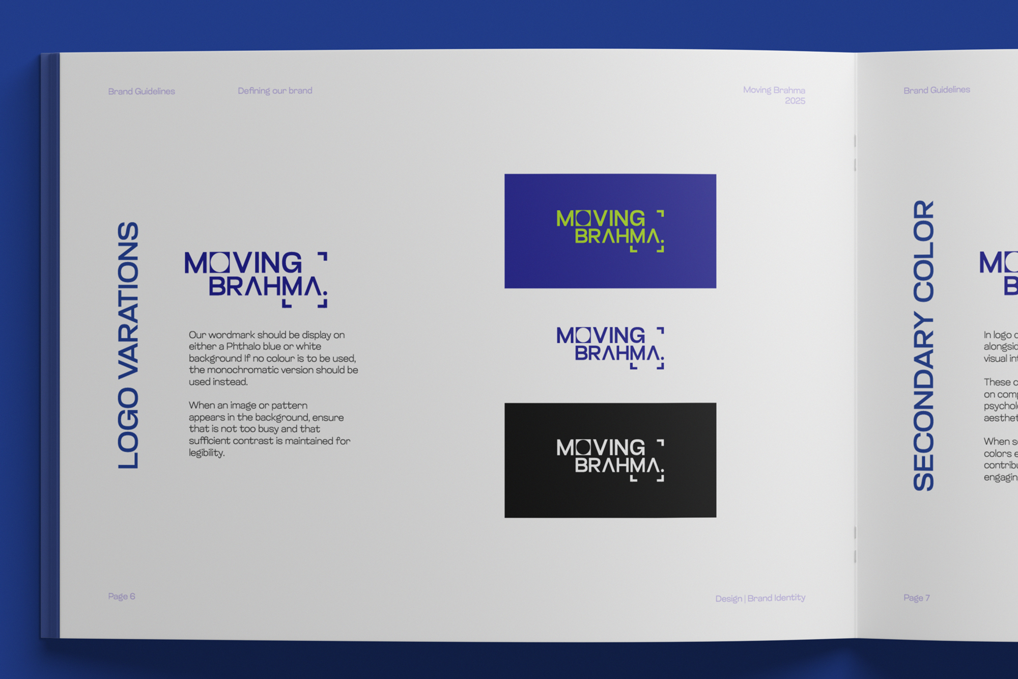 Flexibility is at the core of the Moving Brahma philosophy. The brand is not meant to be static, but to adapt and grow across platforms, formats, and future needs. By combining a strong typographic voice with a refined color system and disciplined layout structure, the identity remains both adaptable and recognizable.